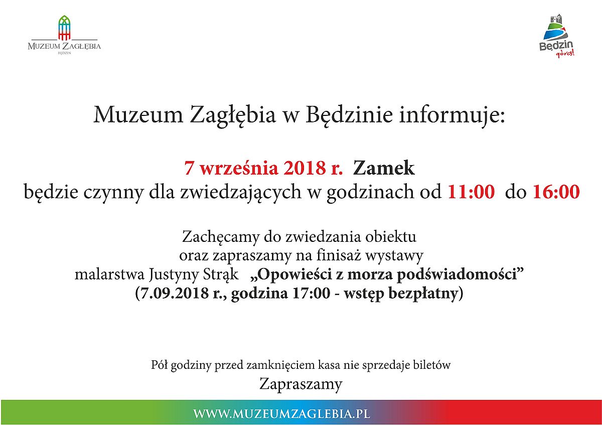 7 września 2018 r. w będzińskim zamku odbył się finisaż wystawy malarstwa Justyny Strąk "Opowieści z morza podświadomości".