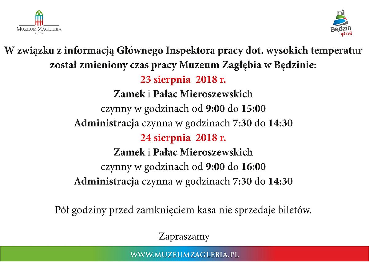 Informacja dot. Podziemi będzińskich w dniu 1 września 2018 r.