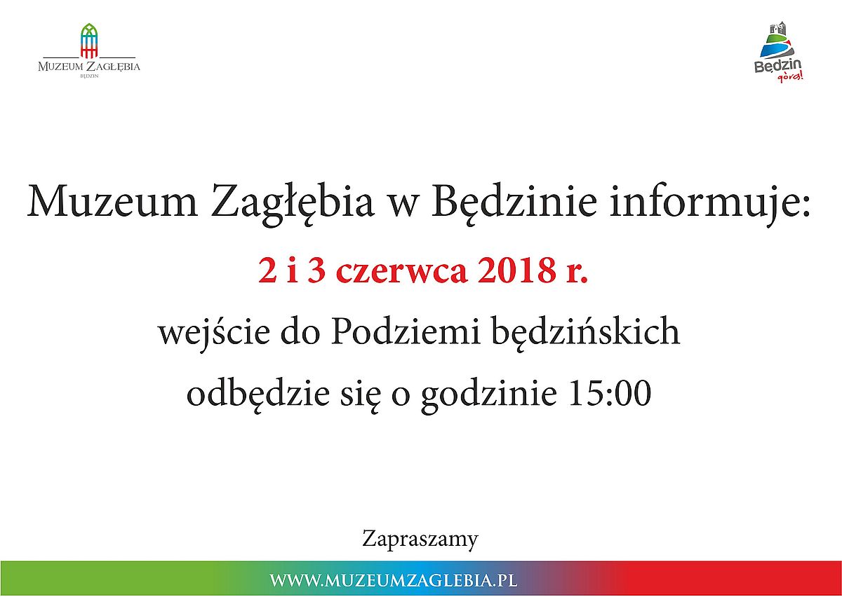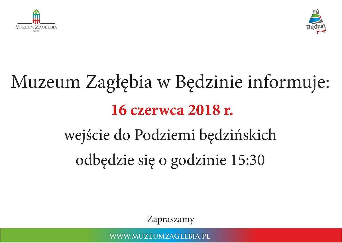 Informacja dot. Podziemi będzińskich w dniu 16 czerwca 2018 r.