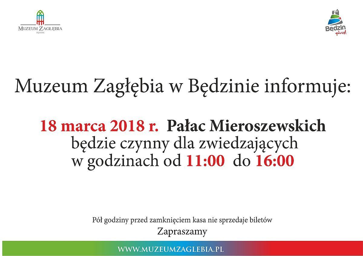 Zapraszamy do udziału w akcji „Polska zobacz więcej – weekend za pół ceny”, która odbędzie się w dniach od 10 do 11 marca 2018 r. w Zamku i Pałacu Mieroszewskich w godzinach od 9:00 do 17:00.