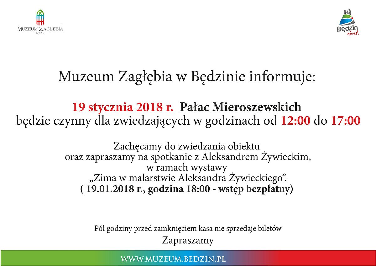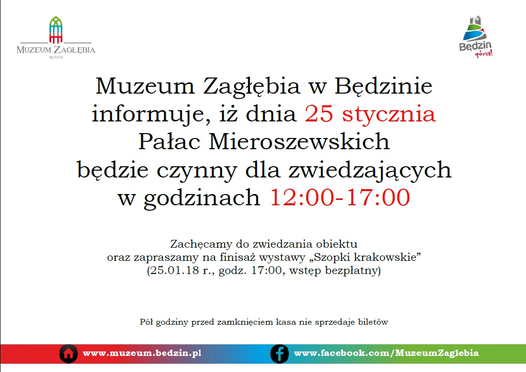 Zmiana godzin otwarcia Pałacu Mieroszewskich w dniu 25.01.2018 r.