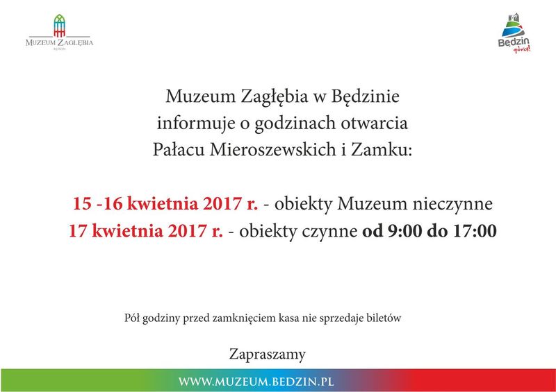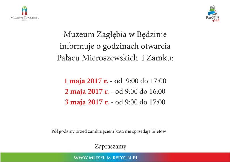 Informacja o godzinach otwarcia Pałacu Mieroszewskich i Zamku