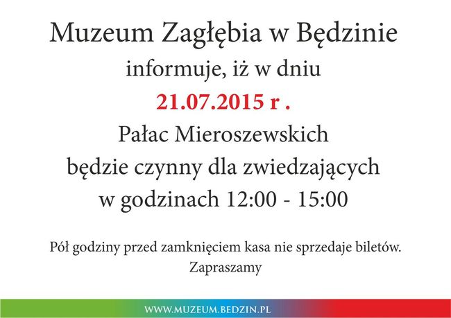 Pałac Mieroszewskich będzie gościć od 10.07.2015 do 31.08.2015 r. prace artystów, którzy wzięli udział w Festiwalu ART PASSION FESTIVAL. Wydarzenie zostało zorganizowane w maju 2015 r. przez Stowarzyszenie Twórców Kultury Zagłębia Dąbrowskiego. Jest to już II edycja Festiwalu w międzynarodowej obsadzie, której realizacja została zaplanowana w oparciu o wieloletnie doświadczenie stowarzyszenia we współpracy z instytucjami kultury na terenie Zagłębia.