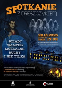 Mimo kapryśnej pogody, Pałac Mieroszewskich wypełnił się miłośnikami historii z dreszczykiem! Razem z etnolog Kornelią Machurą i historykiem dr. Sławkiem Kałużą przenieśliśmy się w świat dawnych obrzędów, duchów, wampirów i będzińskich legend.