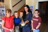 W pewnych kręgach, szczególnie wśród przedszkolaków i uczniów zagłębiowskich szkół podstawowych Muzeum Zagłębia znane jest jako producent znakomitego masła. Masło ubijamy w maselnicy tłuczkowej ze śmietany 30% kupowanej w pobliskim sklepie - niestety nie posiadamy krowy. Ubijanie masła jest znakomitą okazją do opowieści o życiu dawnych mieszkańców Zagłębia - o życiu w wiejskiej chacie, bez elektryczności i bieżącej wody, do opowieści o barwnych strojach, o starych żelazkach na duszę, maglownicach, skrzyniach wiannych, praskach do sera, itd., itp.. Dzisiaj nie było inaczej. Uczestnicy warsztatów ubili wyśmienite masło i wiele się nauczyli.