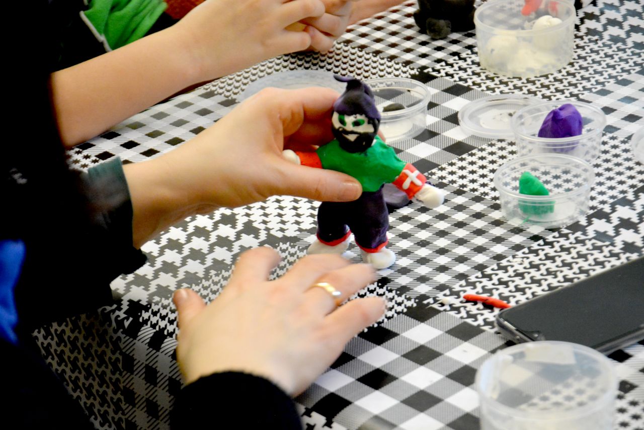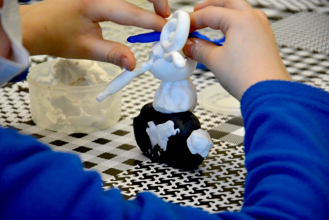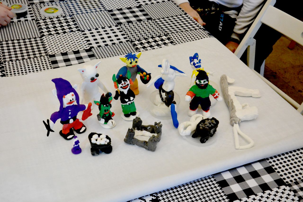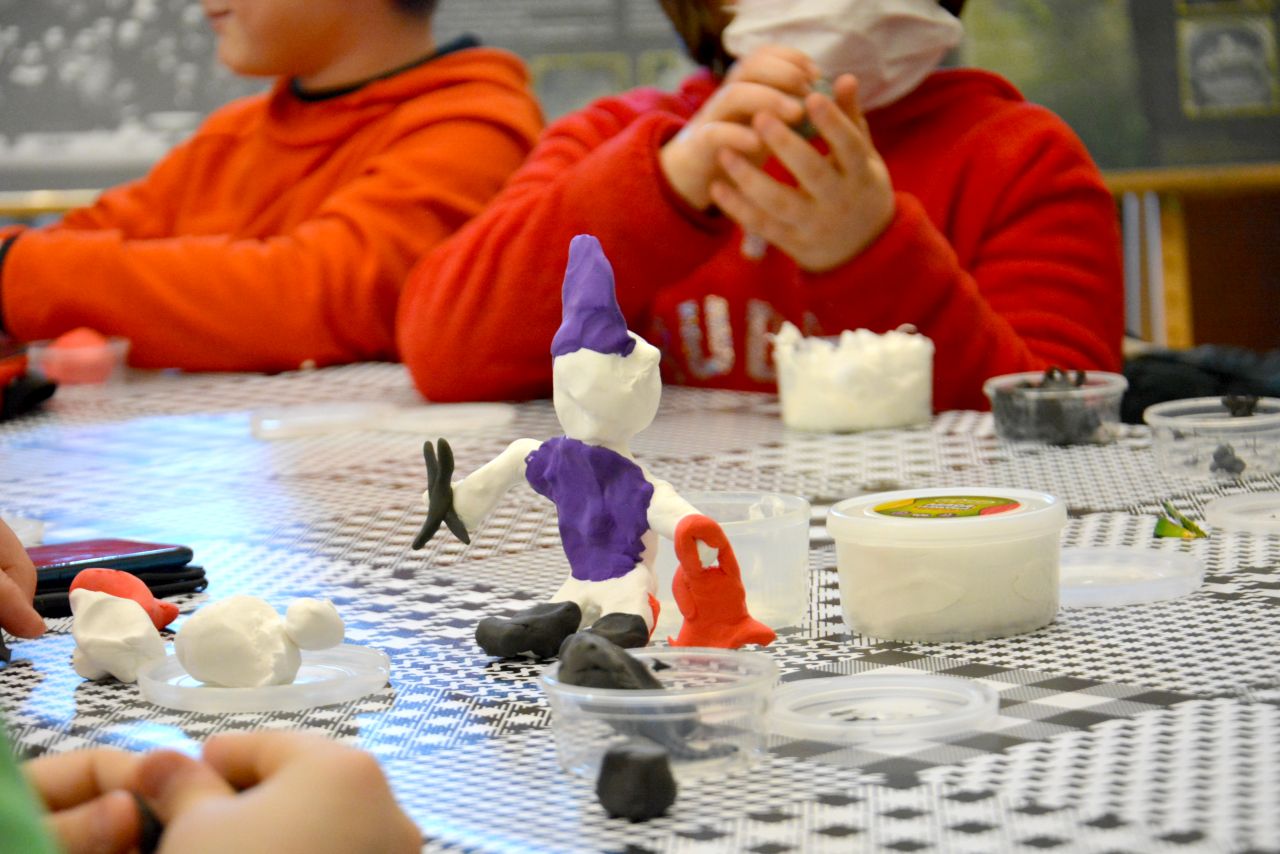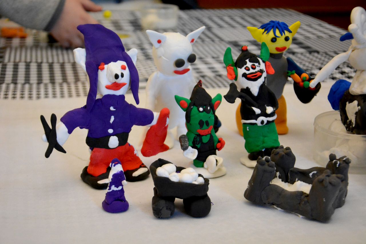 W czasie zwiedzania Podziemi będzińskich nie mogło zabraknąć opowieści o gnomie, legendarnym mieszkańcu podziemnych korytarzy. Na warsztatach plastycznych, które odbyły się w Pałacu Mieroszewskich, uczestnicy zajęć wykonali z masy plastycznej postacie gnoma oraz przedmioty, które w czasie zwiedzania przykuły ich uwagę.