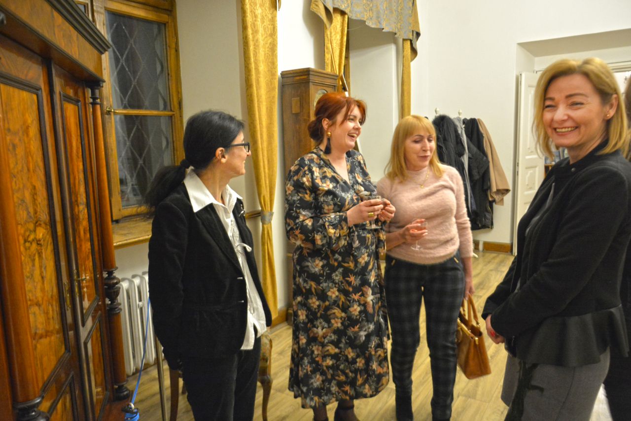 Radosny nastrój udzielił się wszystkim przybyłym gościom. Pani Justyna opowiedziała zgromadzonym o swoich inspiracjach, twórczych poszukiwaniach oraz o tym, jak narodziła się jej pasja. Uroczystość uświetnił występ młodych muzyków. Po wspólnym zwiedzaniu wystawy, któremu towarzyszyły silne emocje, uczestnicy spotkania długo dyskutowali w kuluarach racząc się słodkim co nieco.