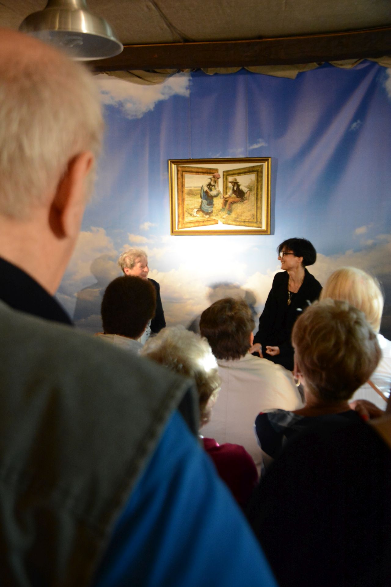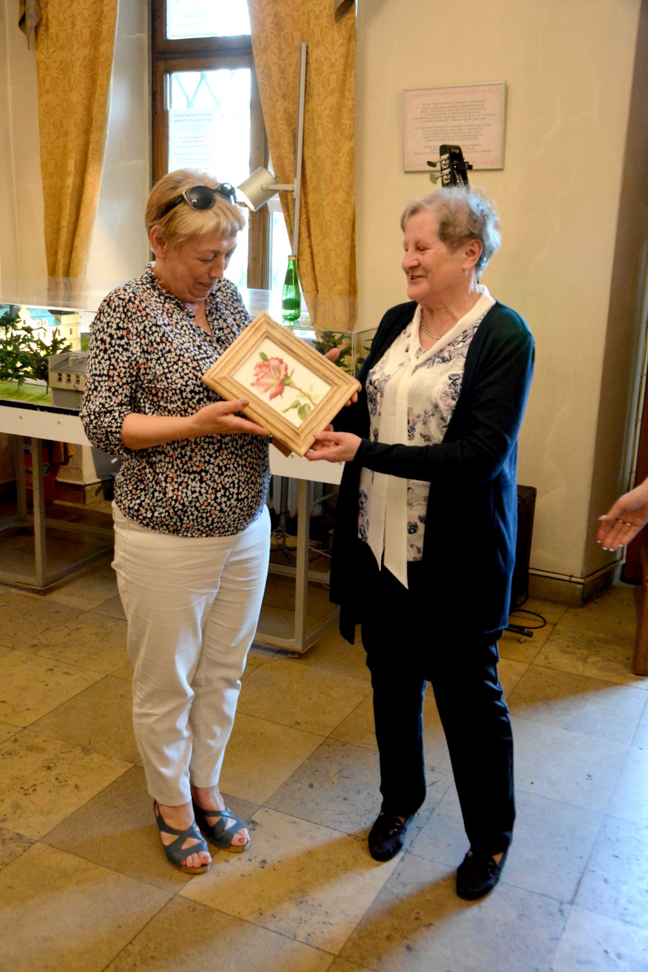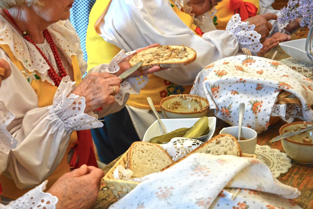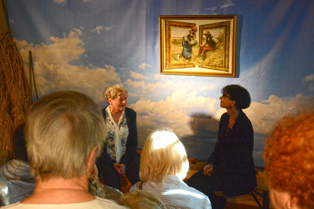 Uczestnicy spotkania w czasie wywiadu z Autorką mieli możliwość dowiedzieć się, w jaki sposób tworzy i jak wymagającym rzemiosłem jest haft artystyczny. Wydarzenie uświetnił występ zespołu Od do z Preczowa, grający na ludową nutę, entuzjastycznie przyjęty przez publiczność. W czasie spotkania odbyła się loteria i jedna z prac Artystki znalazła nowego właściciela. Uczestnicy mieli także możliwość spróbować wiejskich specjałów.