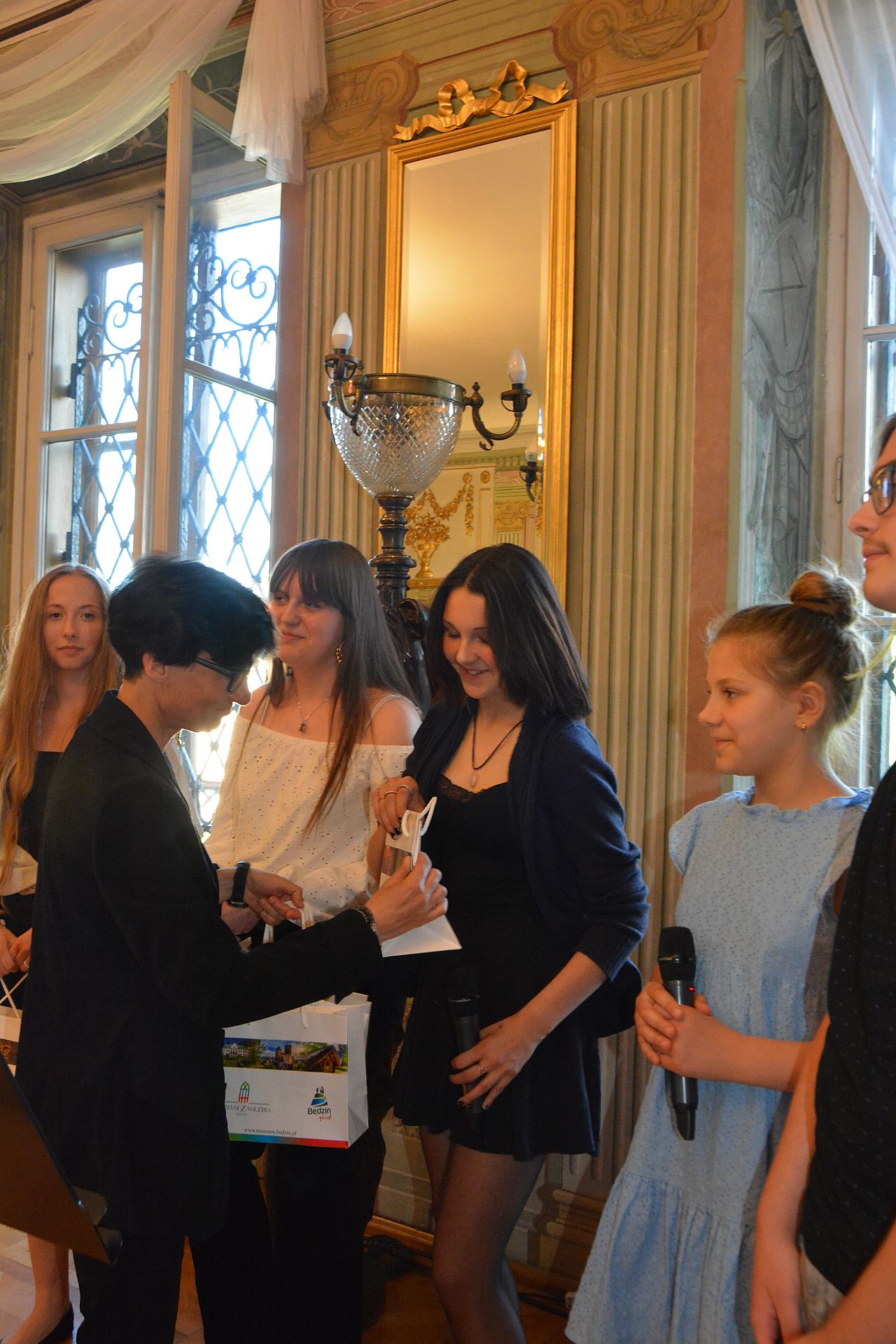 Spotkanie uświetnił występ młodzieży ze Szkoły Podstawowej nr 10 w Będzinie, którzy zachwycili słuchaczy umiejętnościami wokalnymi. Nie mogło zabraknąć także loterii, w czasie której wśród publiczności wylosowano pracę przekazaną na ten cel przez Autorkę. Mamy nadzieję, że prace Anny Ciszewskiej zainspirowały przybyłych, aby u progu lata wyruszyć na spacer bezdrożami.