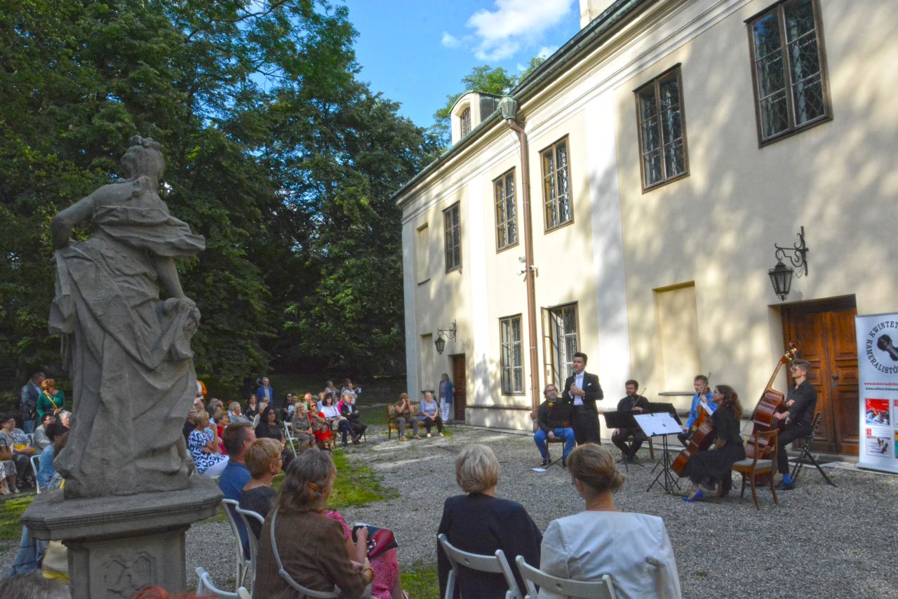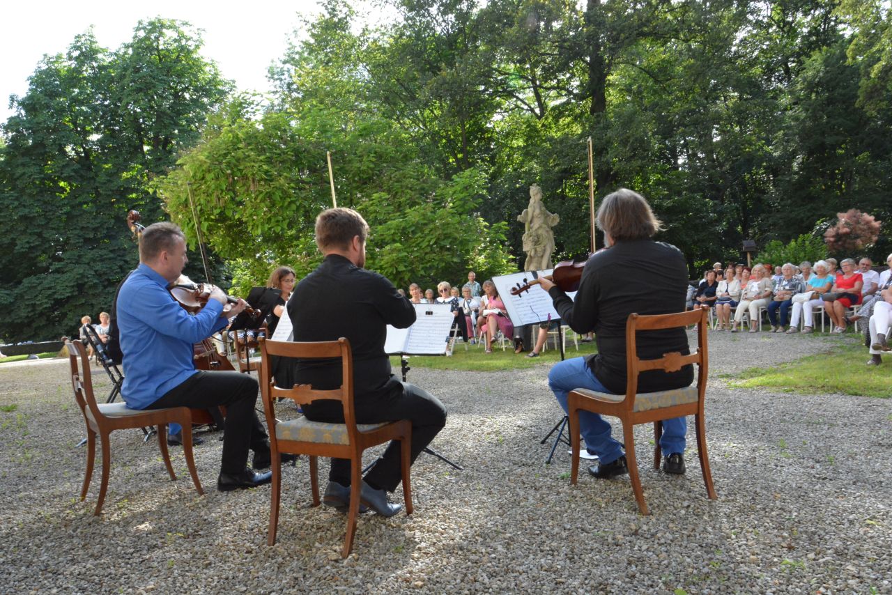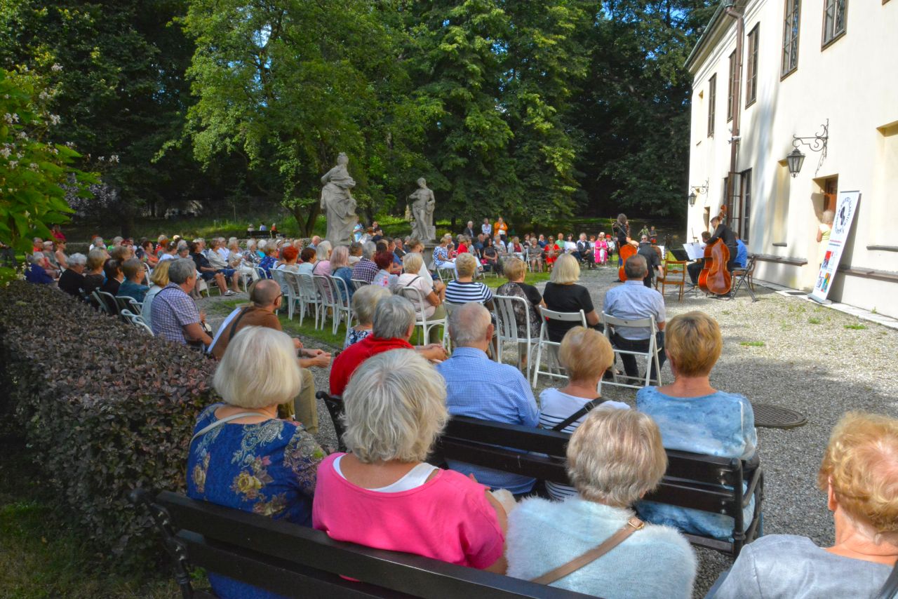 Niedzielne popołudnie i piękna pogoda zgromadziły licznych słuchaczy, którzy przybyli do Pałacu Mieroszewskich na kolejny już koncert z cyklu „Muzyka na wagę”.