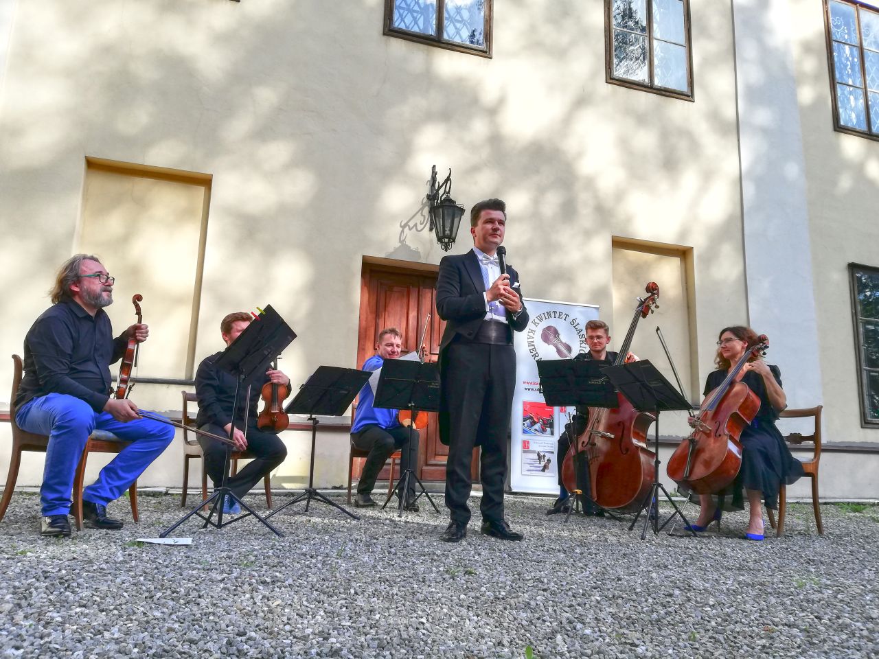 Muzyczna uczta rozpoczęła się od znanych wszystkim utworów muzyki klasycznej w wykonaniu Kwintetu Śląskich Kameralistów. Zgromadzona publiczność wysłuchała następnie arii i pieśni neapolitańskich wykonanych przez tenora Łukasza Gaja, takich jak „Funiculì, funiculà” czy „O sole mio”. Dziękujemy pięknie Artystom i wspaniałej publiczności za wspólnie przebytą muzyczną podróż przez epoki i style.