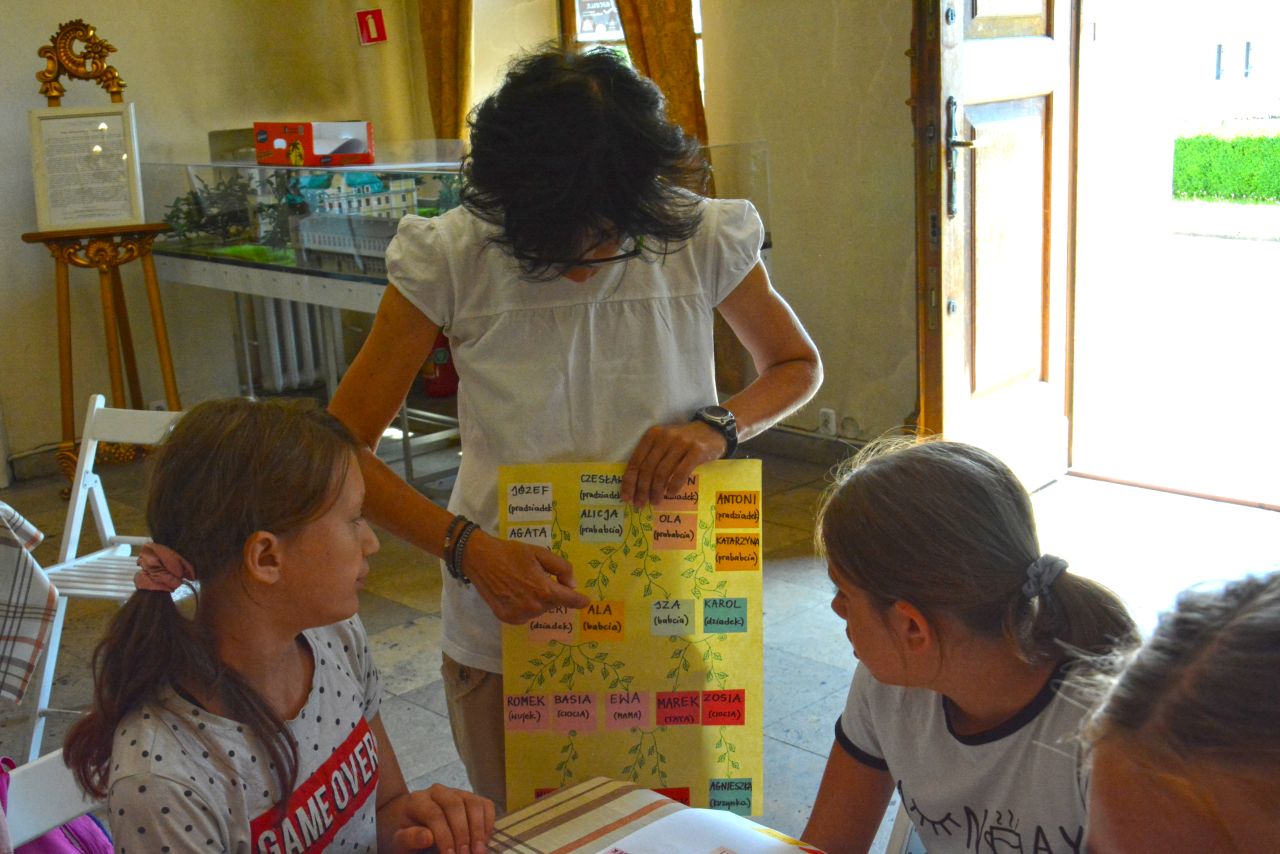 Podsumowaniem spotkania był quiz z upominkami dla uczestników i nagrodami dla tych, którzy zapamiętali najwięcej. Z kolei w środowy poranek uczestnicy półkolonii spacerowali w pałacowym parku poznając fakty historyczne oraz legendy związane z rodziną Mieroszewskich. Zajęciom towarzyszyły warsztaty plastyczne, w czasie których każdy wykonał i ozdobił swoje drzewo genealogiczne oraz zaprojektował wizerunek ducha. Następnie wszyscy udali się na Wzgórze Zamkowe, gdzie podczas spaceru poznawali ciekawostki związane z historią miasta.