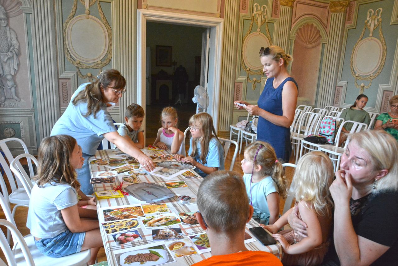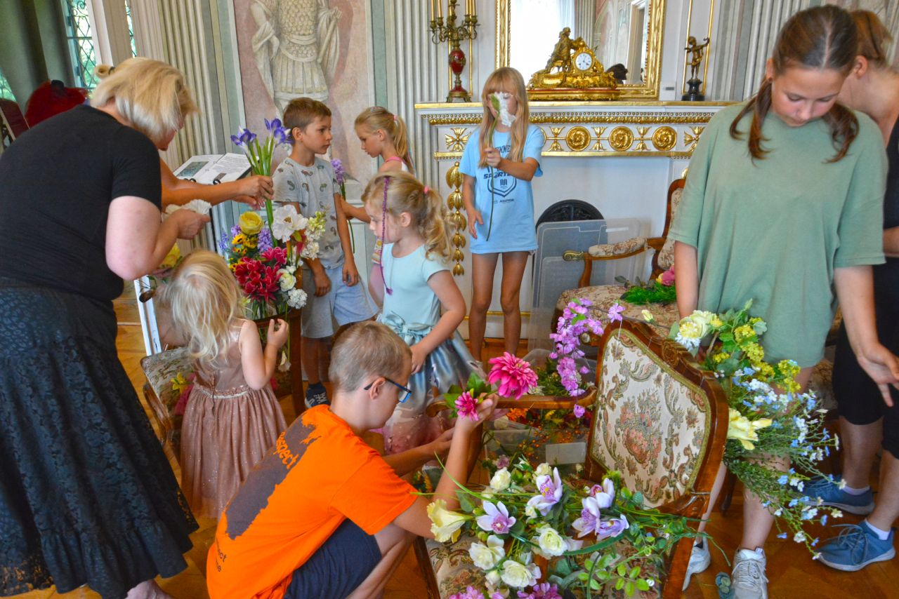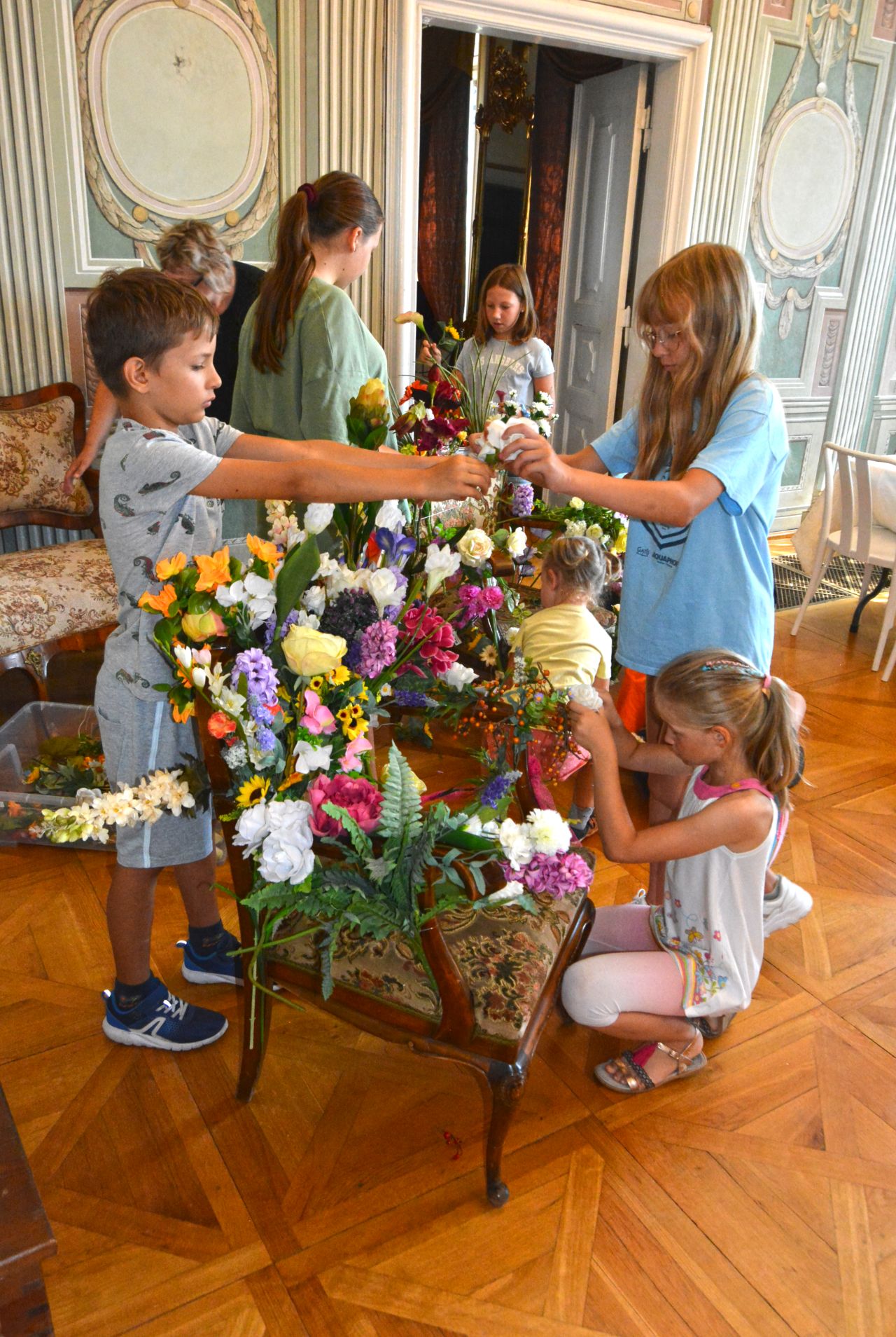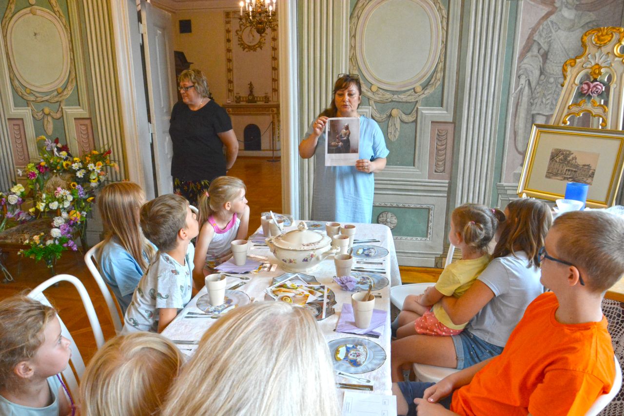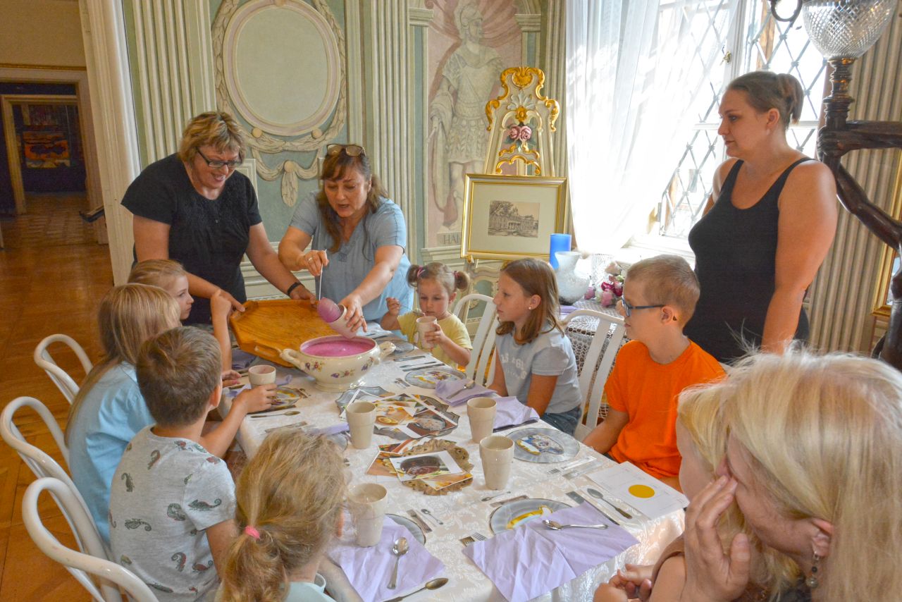 Żadne imieniny nie mogą się odbyć bez ustrojenia fotela dla solenizanta i zastawienia stołu potrawami, co uczestnicy zajęć zrobili perfekcyjnie. Na koniec zabawy ożywiliśmy obraz pt. „Mleczarka” holenderskiego malarza (XVII w.) Jana Vermeera oraz posąg Sokratesa.