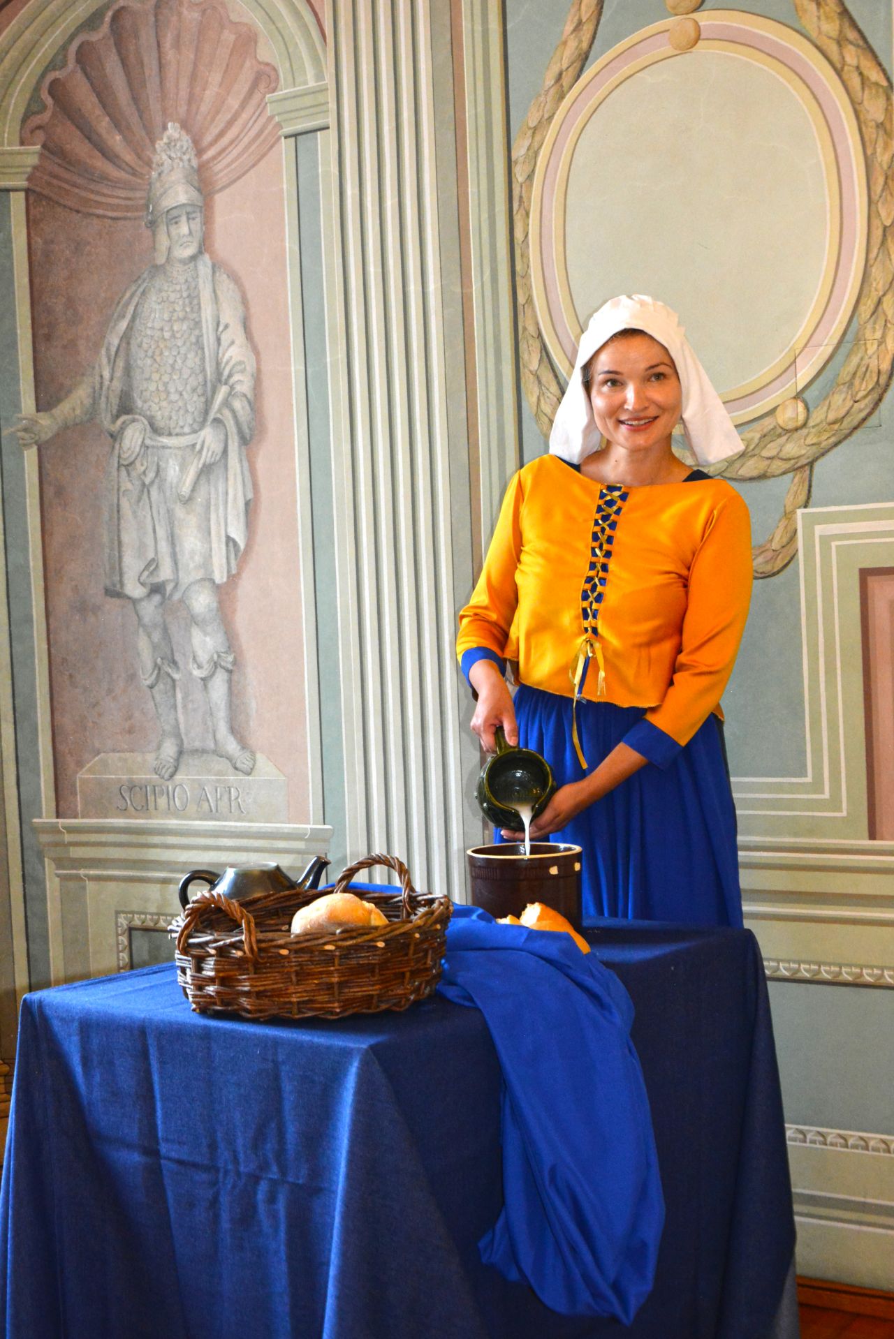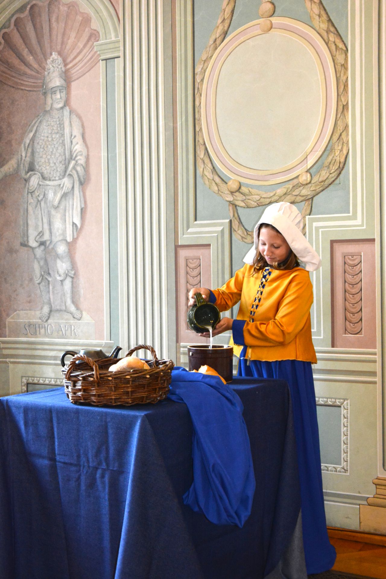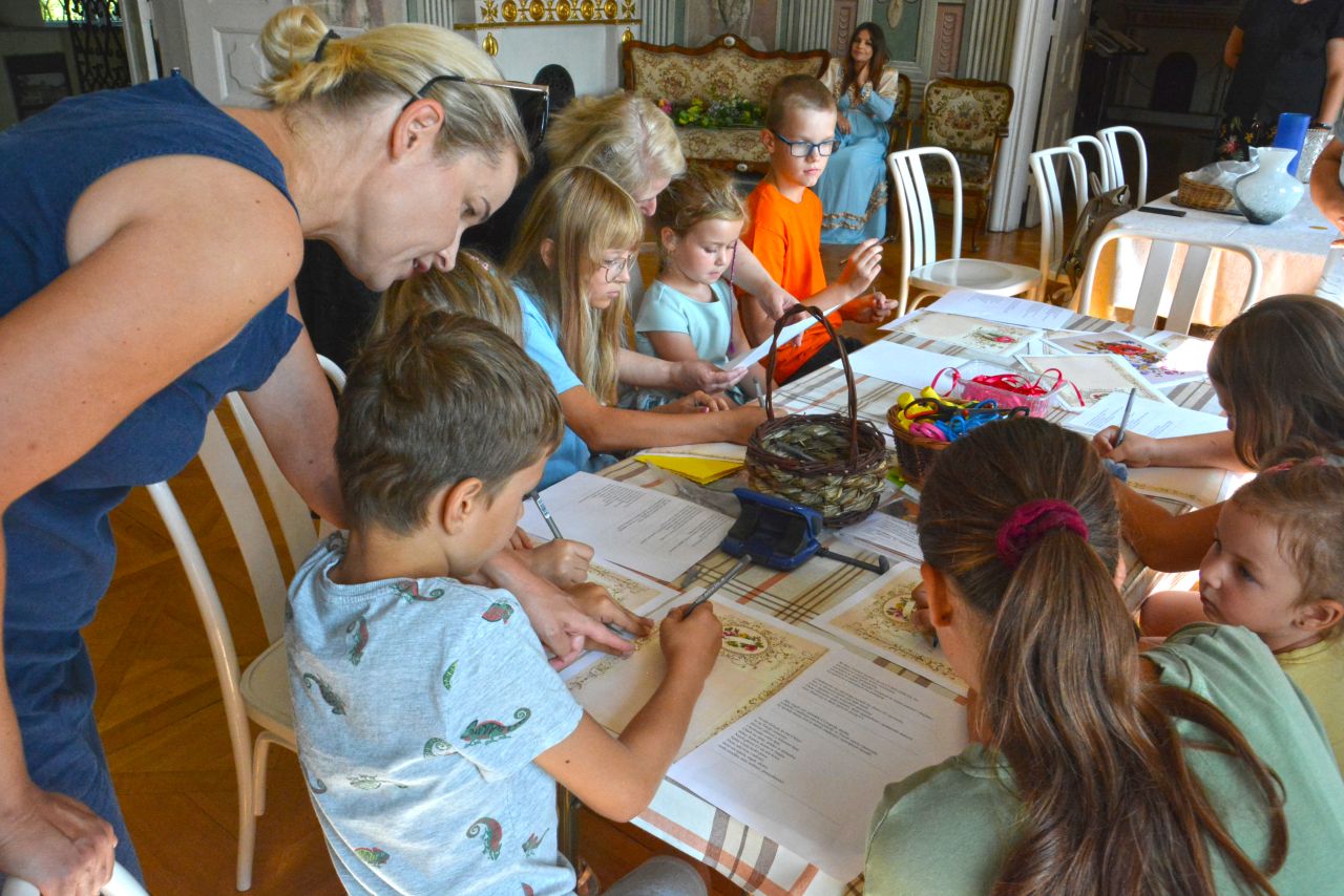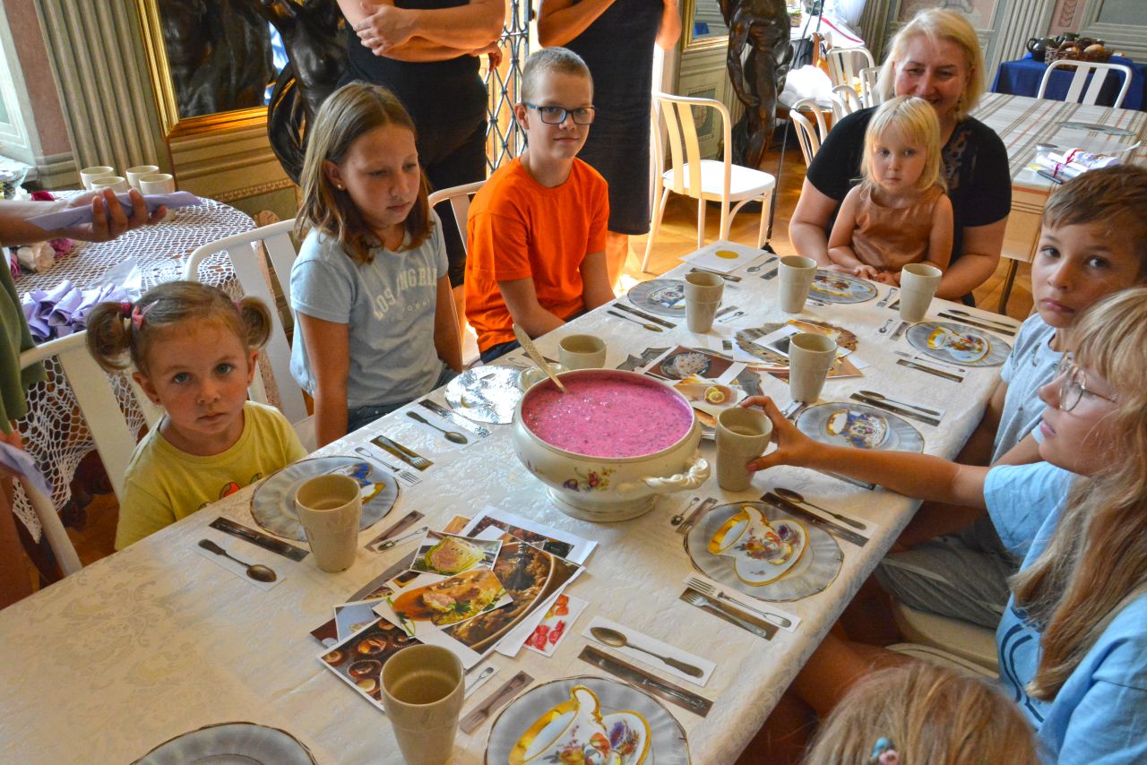 Żadne imieniny nie mogą się odbyć bez ustrojenia fotela dla solenizanta i zastawienia stołu potrawami, co uczestnicy zajęć zrobili perfekcyjnie. Na koniec zabawy ożywiliśmy obraz pt. „Mleczarka” holenderskiego malarza (XVII w.) Jana Vermeera oraz posąg Sokratesa.