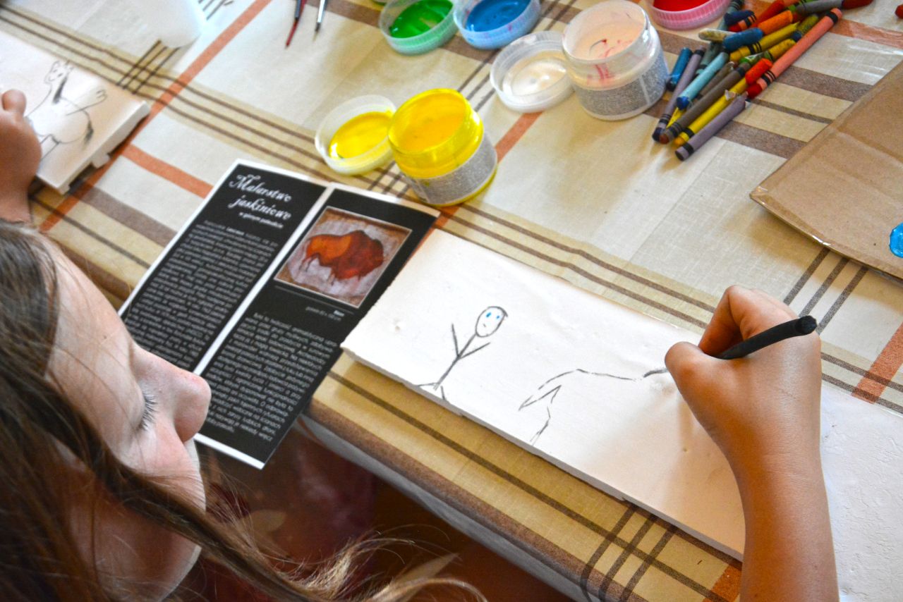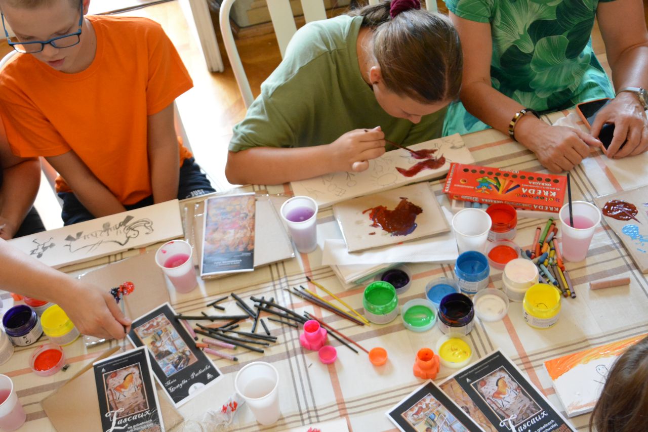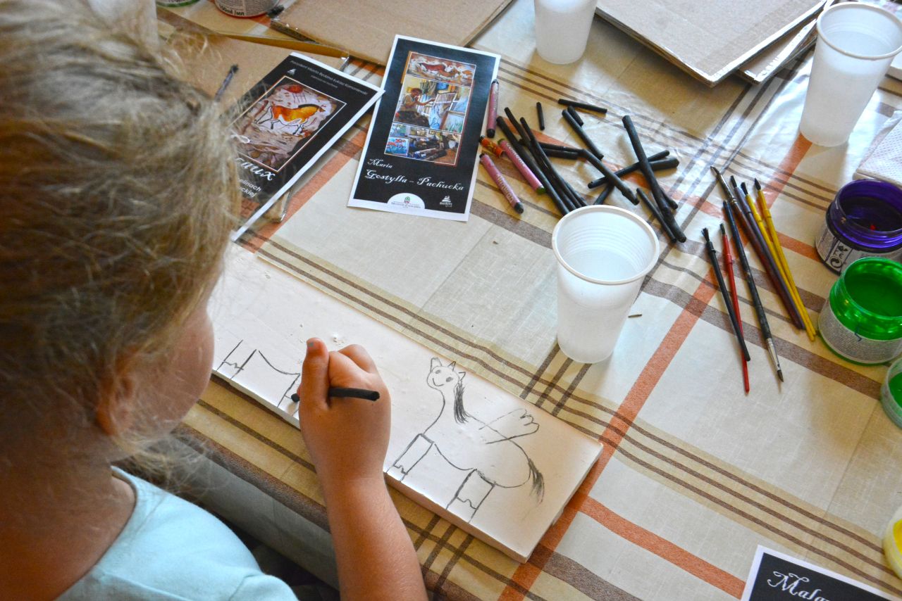 Uczestnicy obejrzeli wystawę gobelinów z przedstawieniami prehistorycznych malowideł z francuskich jaskiń, po czym sami podjęli próbę odtworzenia obejrzanych wizerunków zwierząt farbami na kamieniu. Po wysuszeniu zabrali powstałe w ten sposób dzieła do domu na pamiątkę wizyty w muzeum.