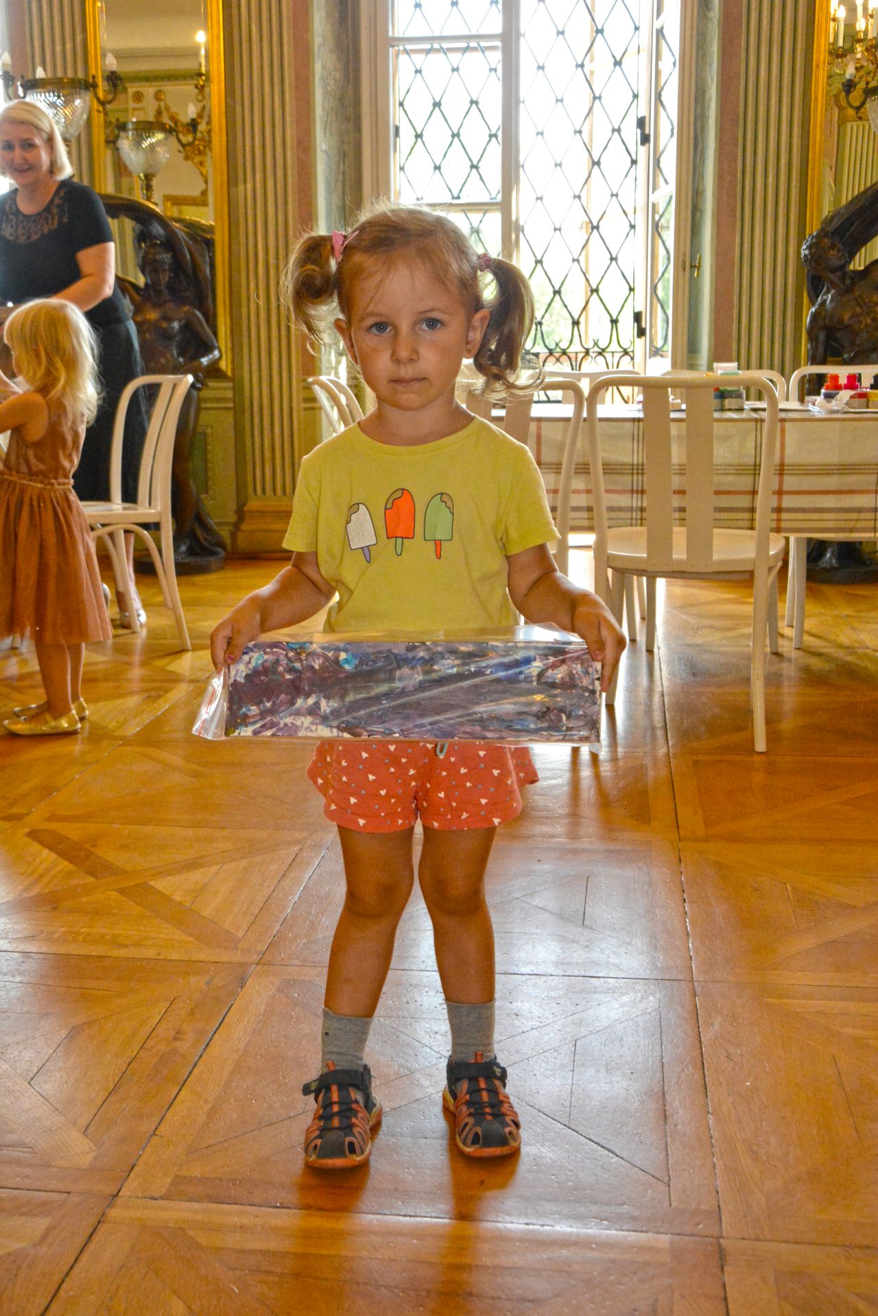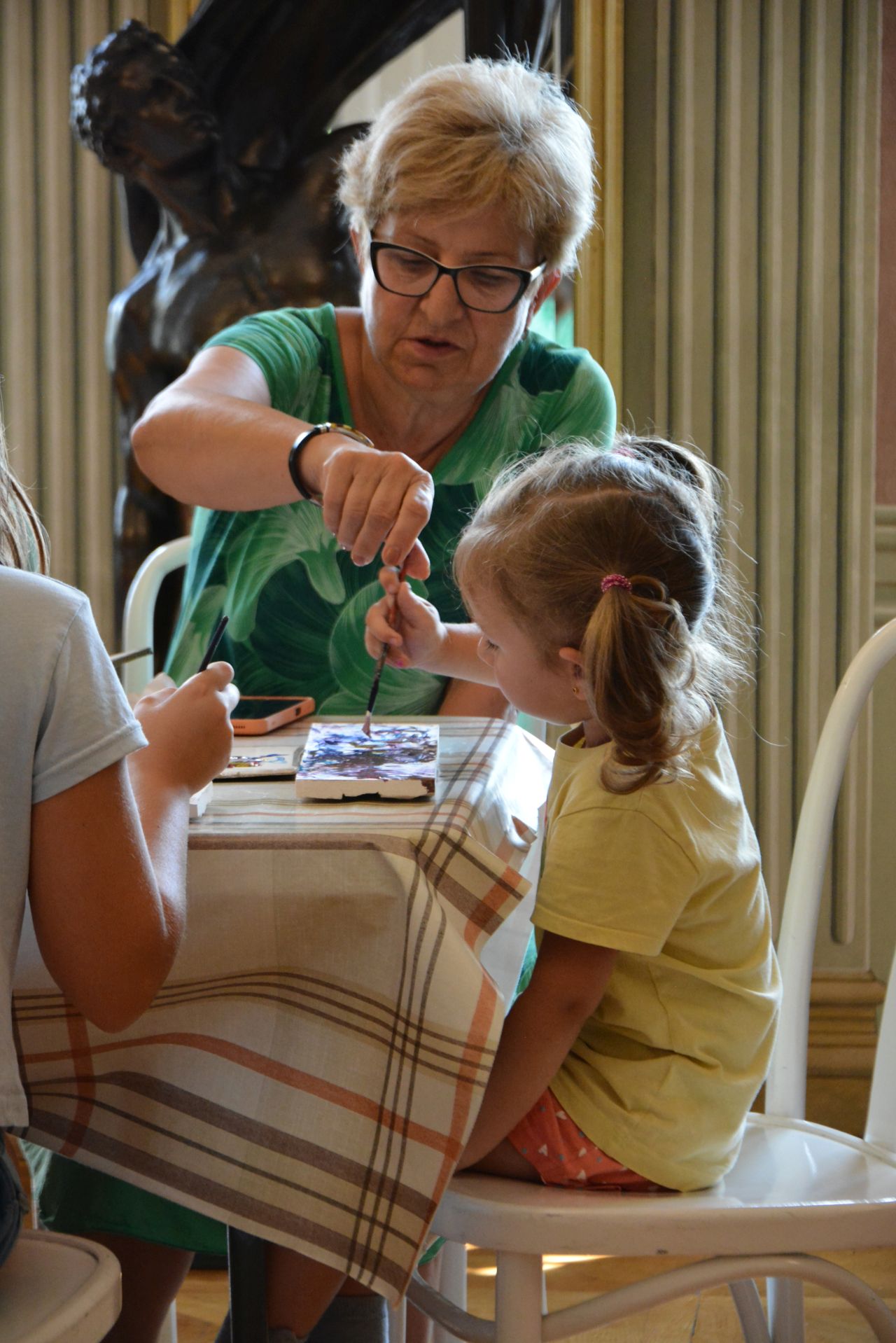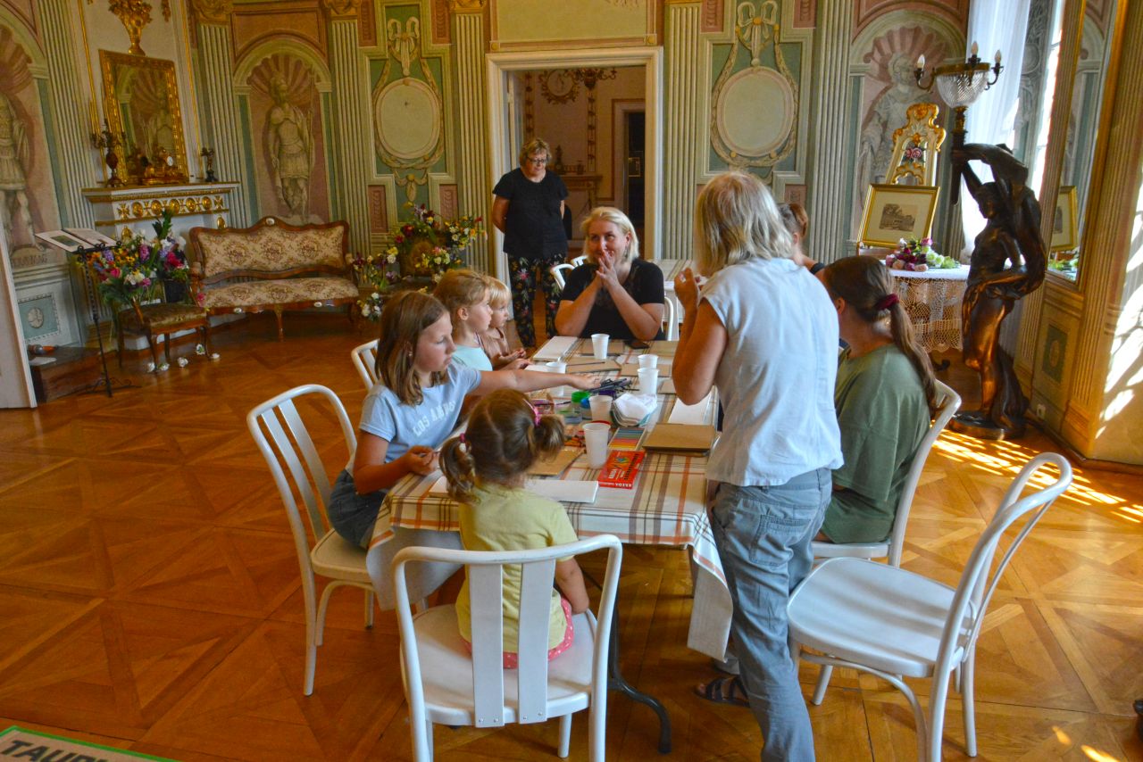 Uczestnicy obejrzeli wystawę gobelinów z przedstawieniami prehistorycznych malowideł z francuskich jaskiń, po czym sami podjęli próbę odtworzenia obejrzanych wizerunków zwierząt farbami na kamieniu. Po wysuszeniu zabrali powstałe w ten sposób dzieła do domu na pamiątkę wizyty w muzeum.