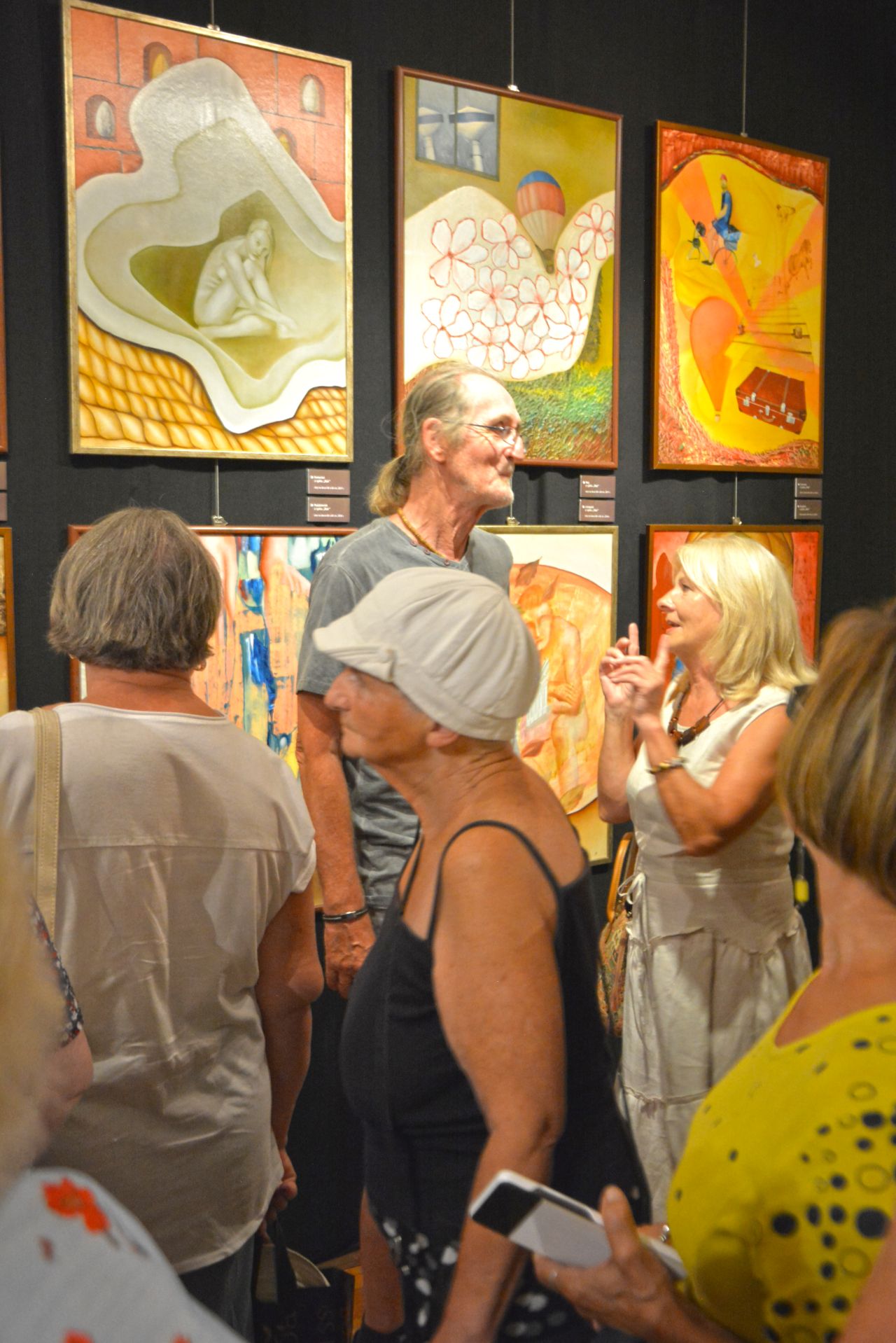 Przybyli goście, oprócz prac Artysty, mieli możliwość poznać etymologię jego imienia i nazwiska oraz osobisty alfabet Milana Fiali złożony z zainteresowań, inspiracji, fascynacji i życiowych pasji. W czasie spotkania kurator wystawy Małgorzata Hałasik przybliżyła publiczności twórczość Artysty. Prezentowany na będzińskiej wystawie fragment cyklu "Mój Grechuta" pokazał, że czeskiemu malarzowi nie jest obca nasza kultura i świetnie się w niej odnajduje. Wisienką na torcie był koncert w wykonaniu Irminy Barczewskiej-Garus i Zbigniewa Garusa wraz z córką Edytką, którzy wykonali najbardziej znane utwory z repertuaru Marka Grechuty. Po koncercie Artysta chętnie oprowadzał po wystawie i rozmawiał z gośćmi.