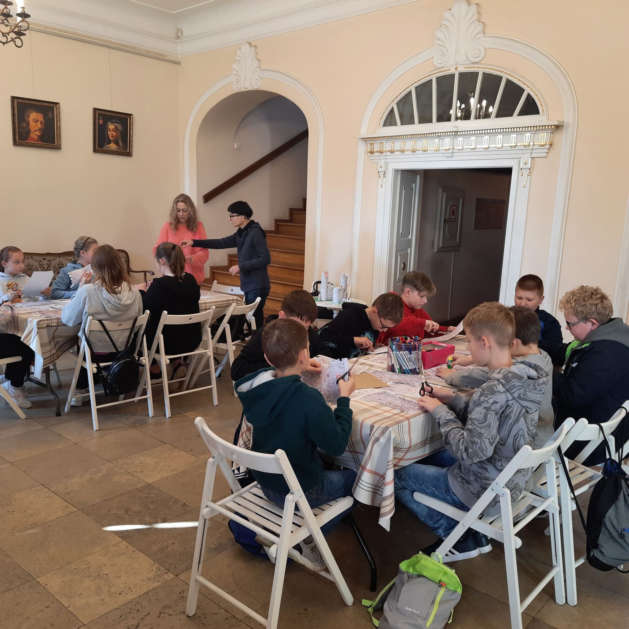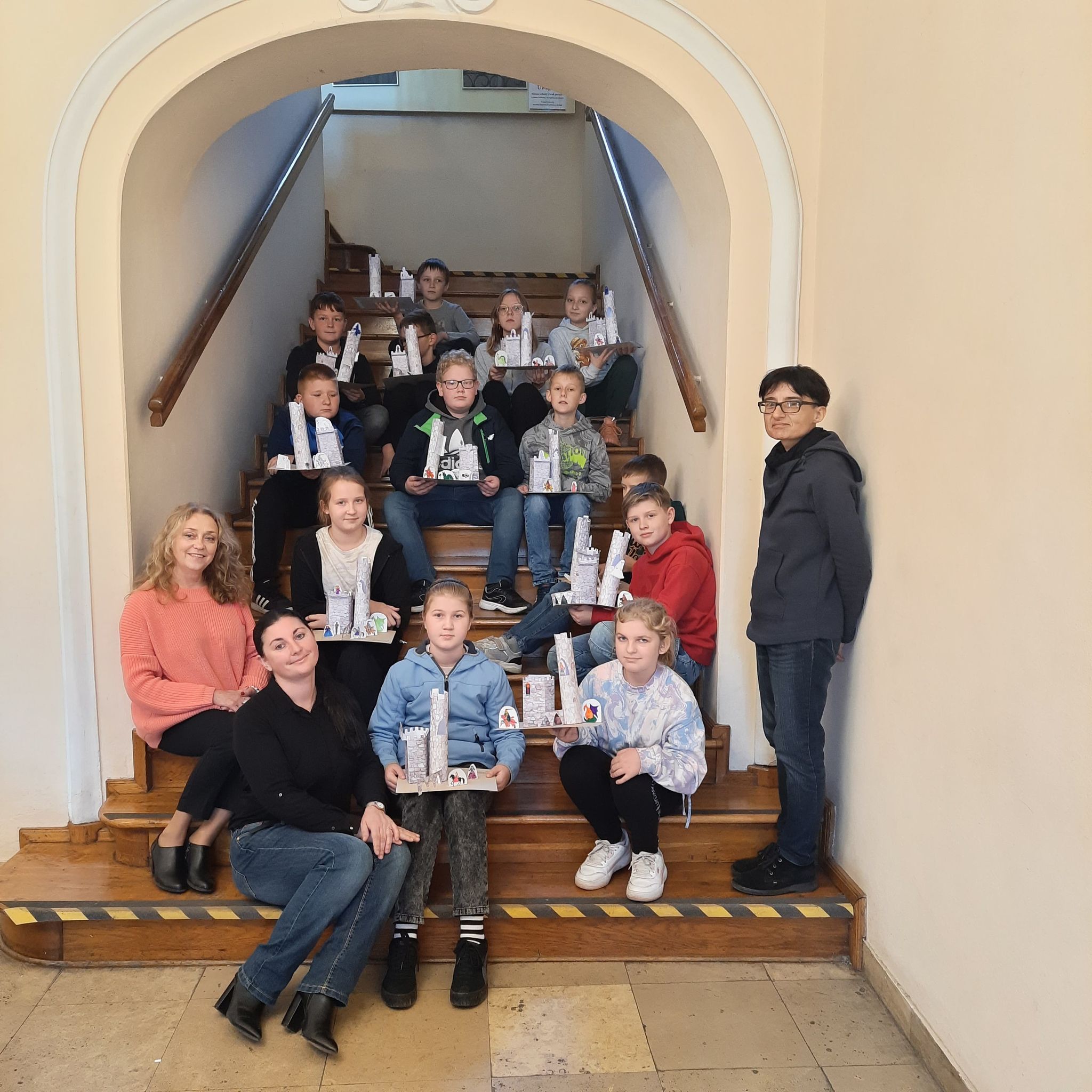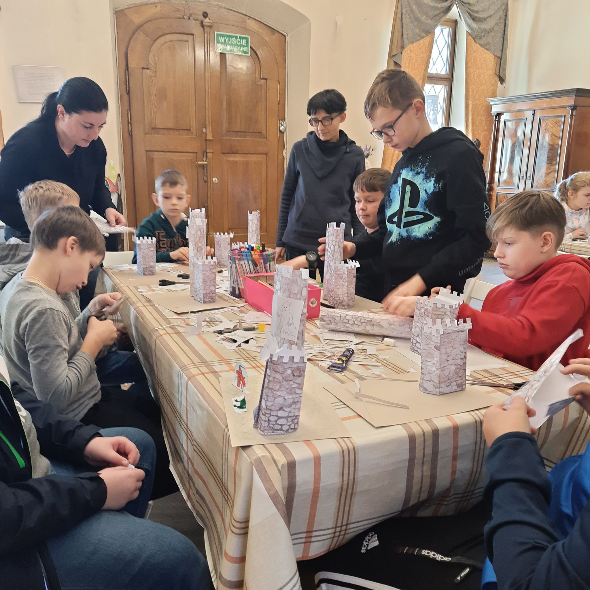 Następnie udali się na spacer do Pałacu Mieroszewskich gdzie na warsztatach plastycznych wykonali modele zamków, które ozdabiali tak jak podpowiedziała im wyobraźnia.
