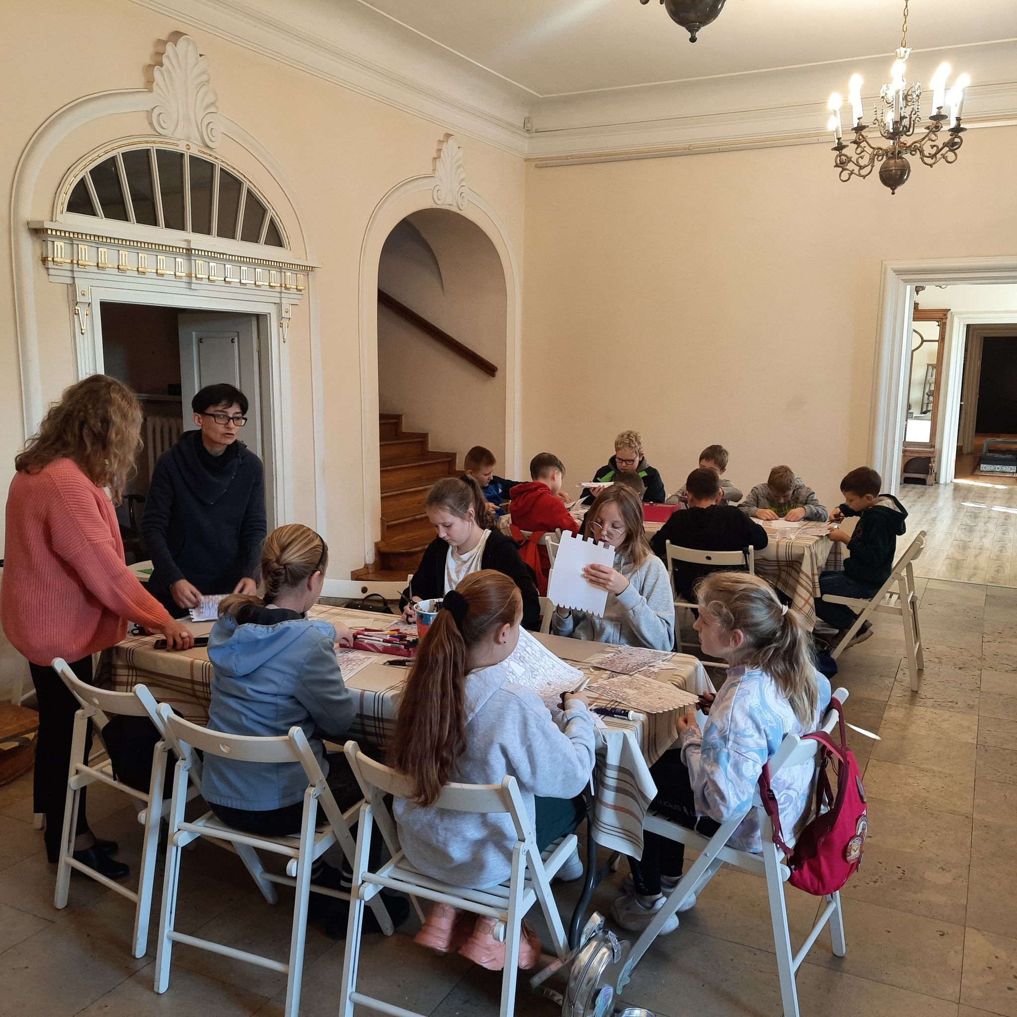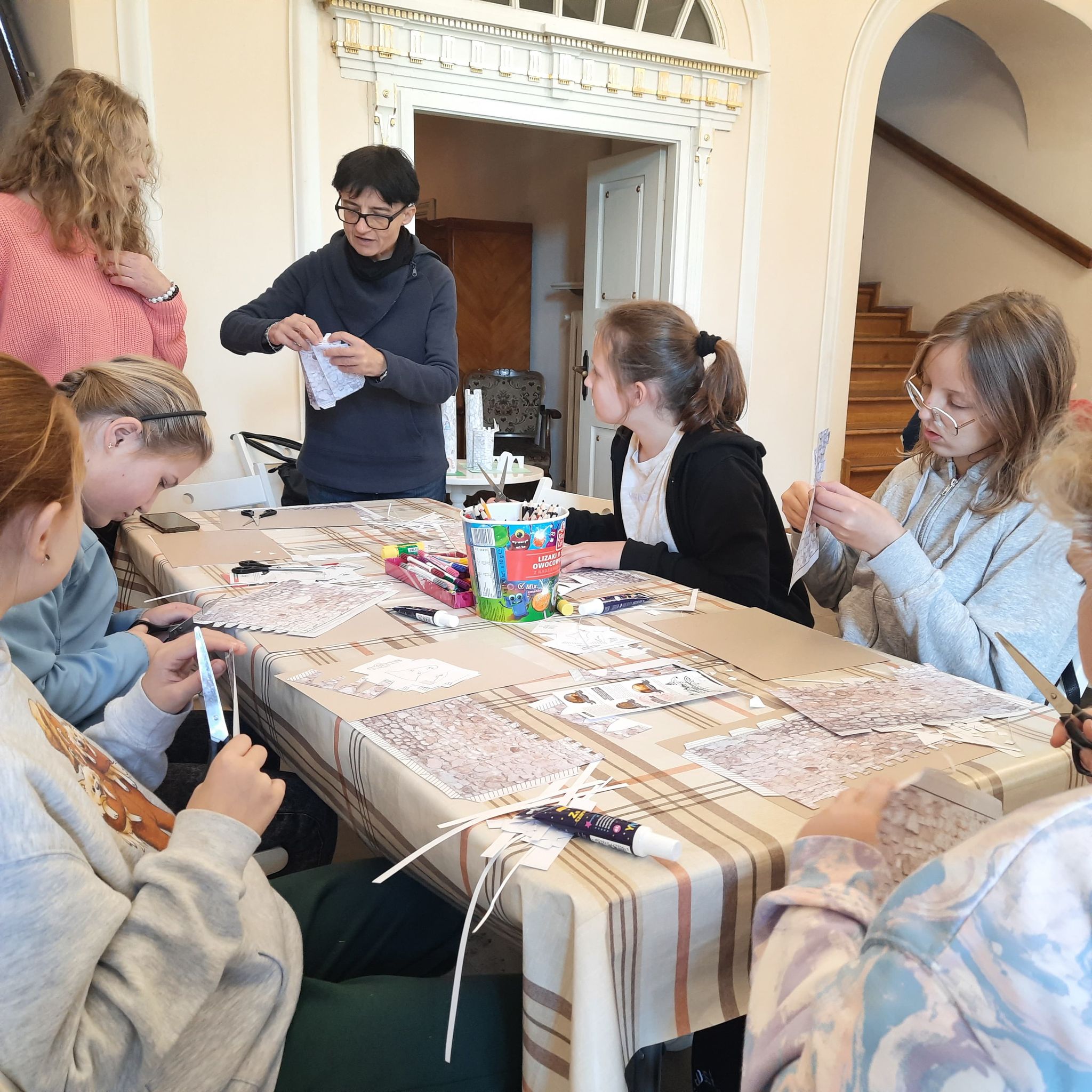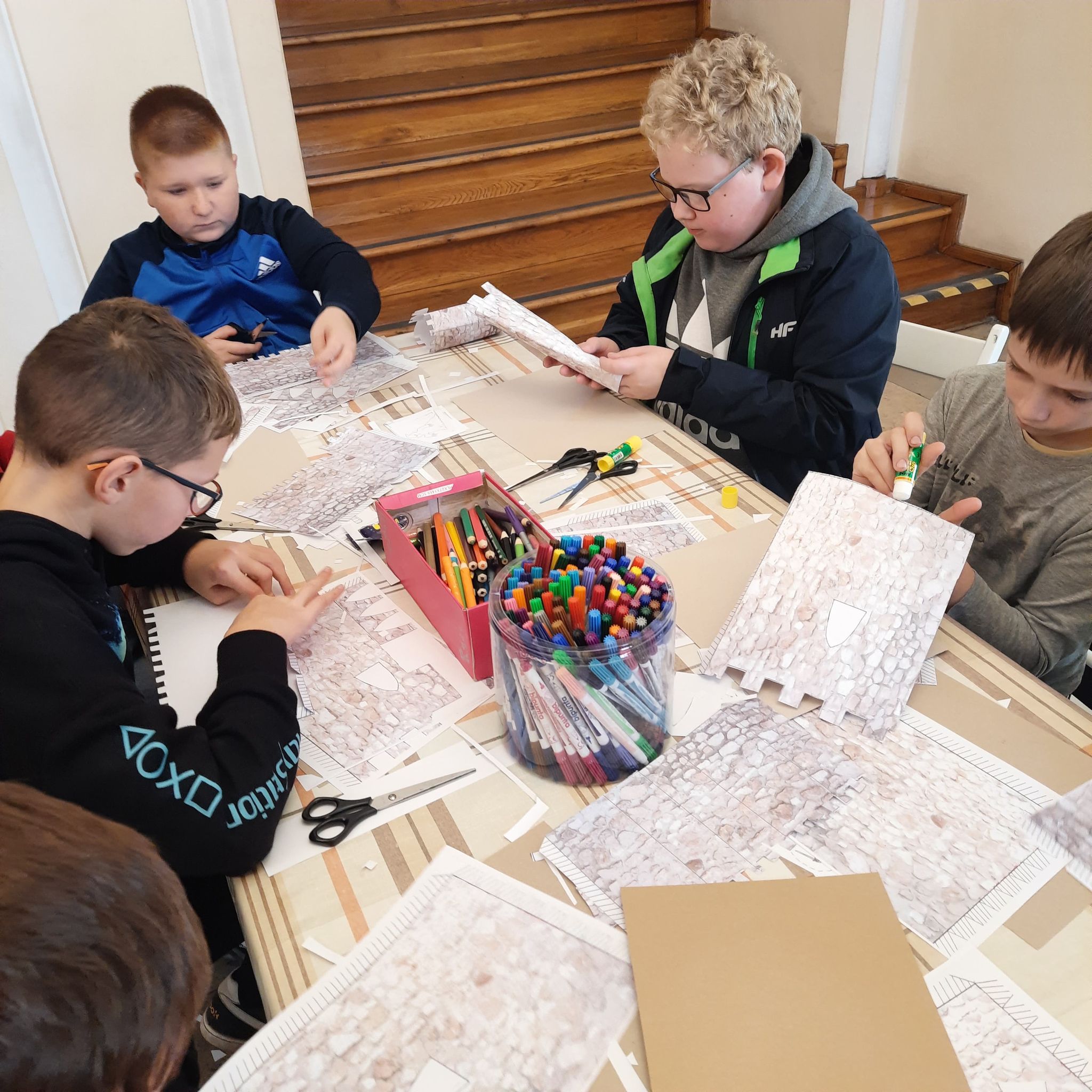 Następnie udali się na spacer do Pałacu Mieroszewskich gdzie na warsztatach plastycznych wykonali modele zamków, które ozdabiali tak jak podpowiedziała im wyobraźnia.