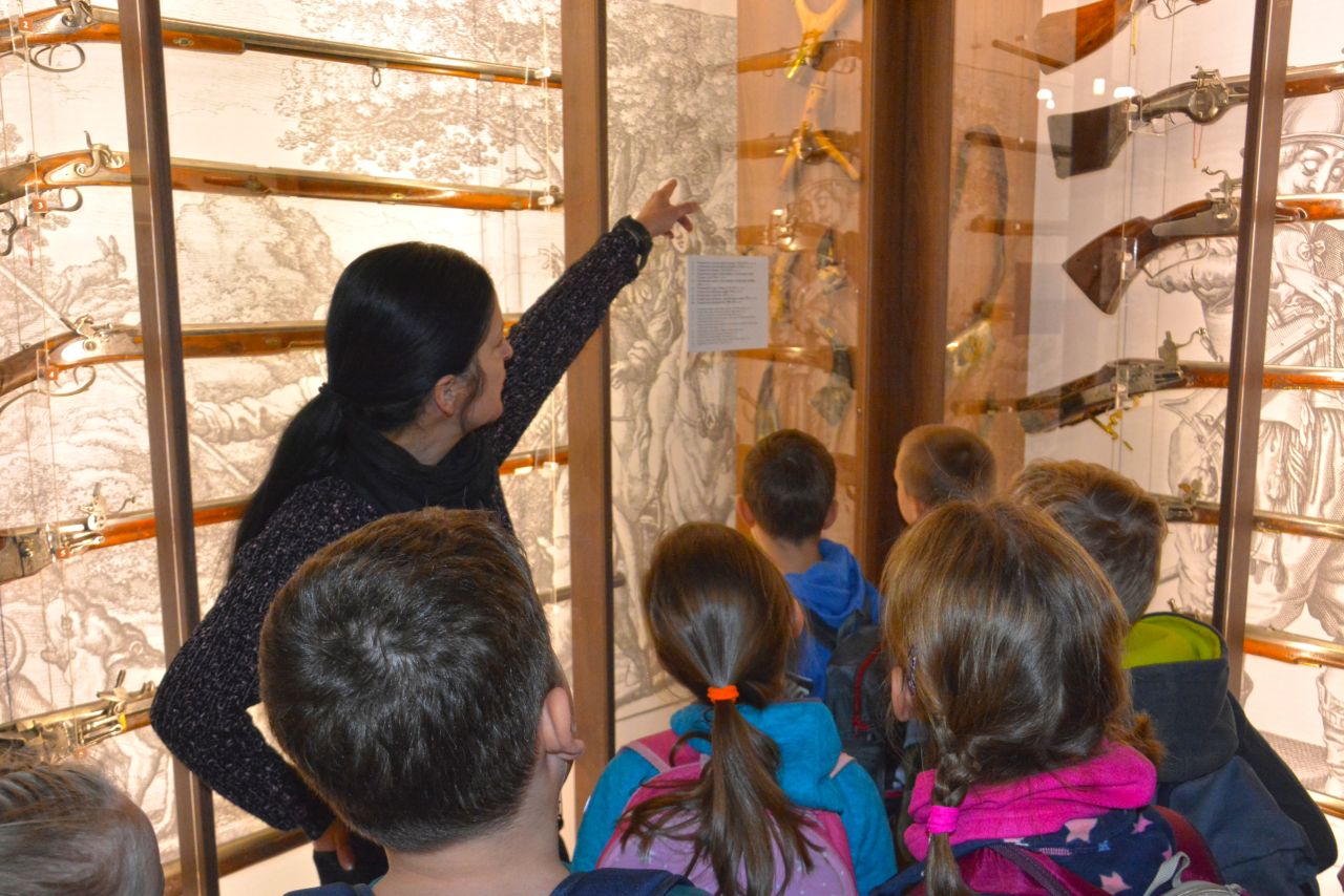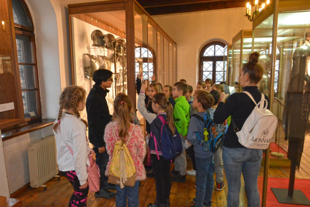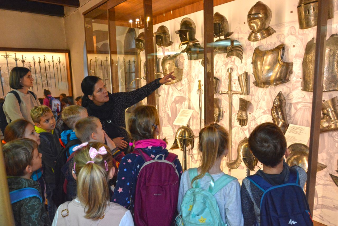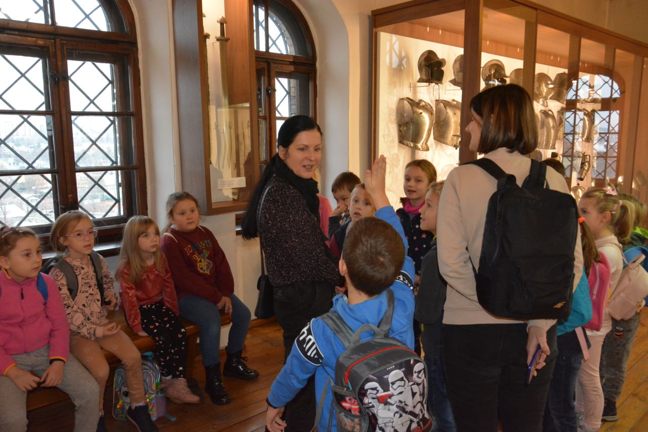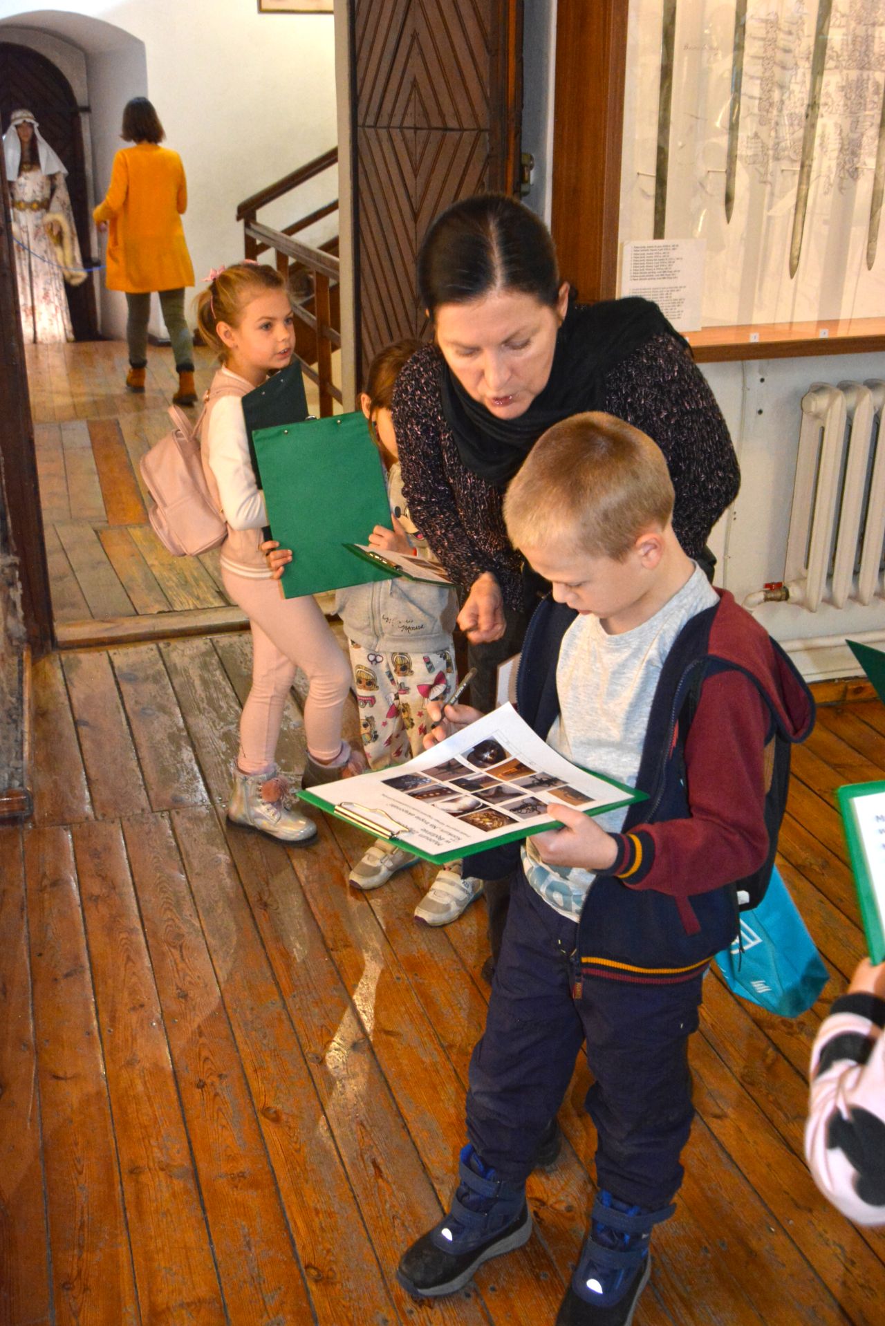 Po zwiedzeniu ekspozycji zamkowej i poznaniu tajników dawnej broni, czekało na nich dość trudne zadanie. Trzeba było odnaleźć na wystawie eksponaty ze zdjęć umieszczonych w ankiecie. Niektóre zdjęcia przedstawiały tylko jakiś detal, fragment eksponatu czy zdobienie. Zajęcia miały uczyć spostrzegawczości i zainteresować dzieci tą trudną jeszcze dla nich tematyką. Uczestnicy zabawy wykazali się jednak ogromnym zaangażowaniem. Wspólnie odnaleźli wszystkie - miecze, rapiery, jatagany, prochownice, ładownice, szyszaki i moriony. Co więcej, sądząc po entuzjazmie z jakim poznawali zbiory zamkowe można przypuszczać, ze wśród nich mógł się znajdować niejeden, wybitny , przyszły polski bronioznawca :-)