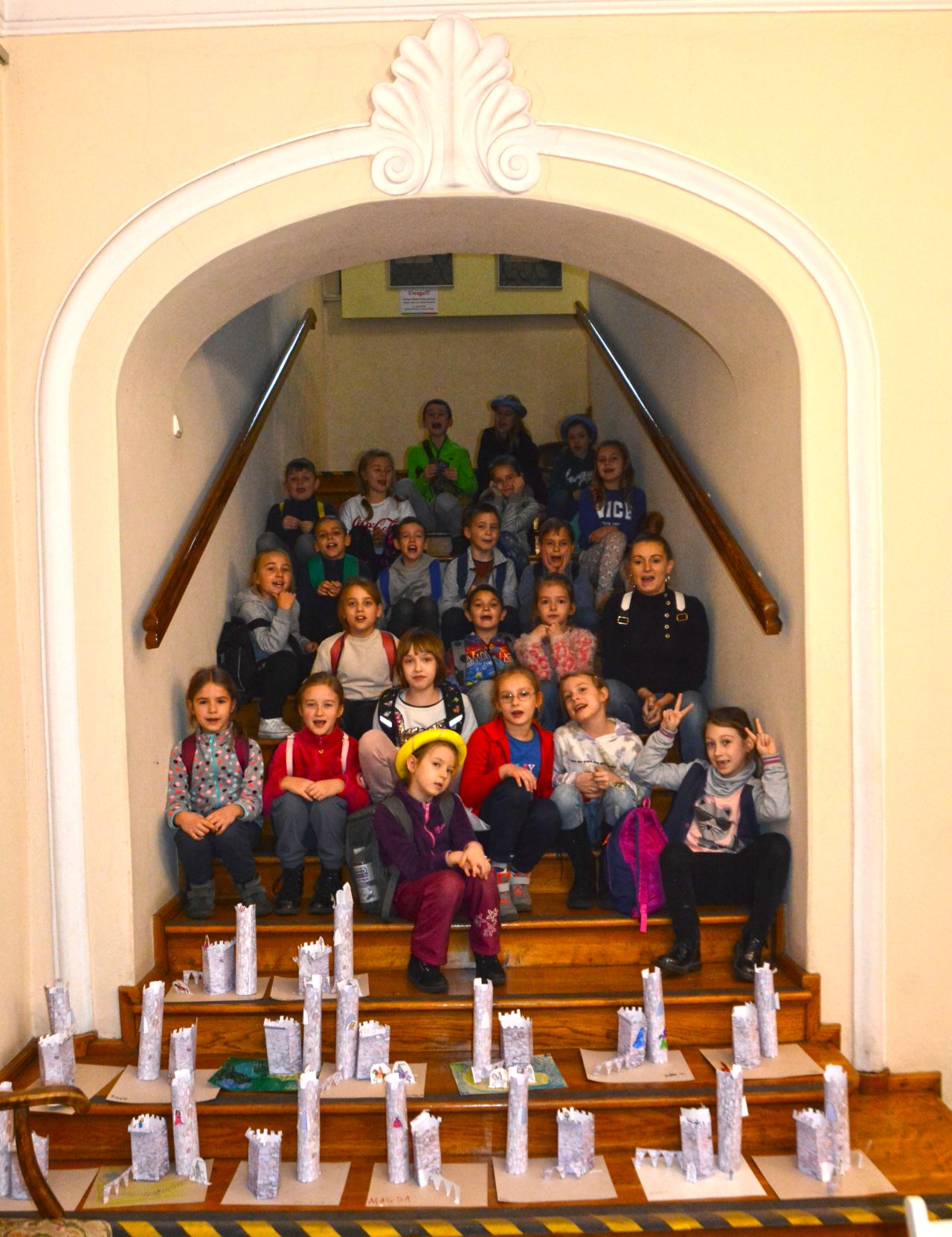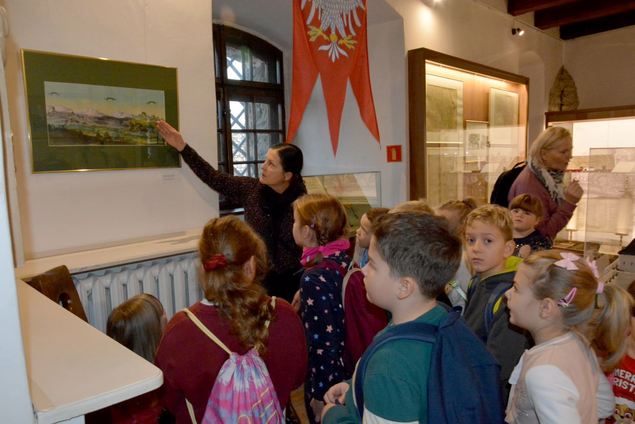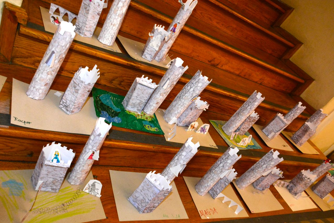 Z kolei uczniowie klasy drugiej uczestniczyli w zajęciach „Zamek – średniowieczna warownia”. Po zapoznaniu się z architekturą zamku oraz wyposażeniem rycerzy udali się do Pałacu Mieroszewskich, gdzie na warsztatach plastycznych wykonywali makiety zamku, które później ozdabiali według własnego pomysłu. Twórcze działania dostarczyły gościom muzeum wiele radości i były okazją do zdobywania wiedzy i rozwijania zdolności plastycznych.