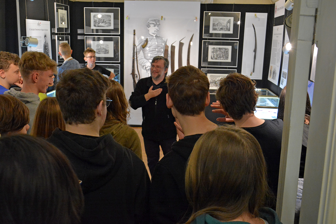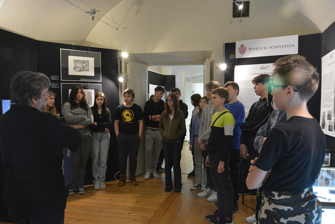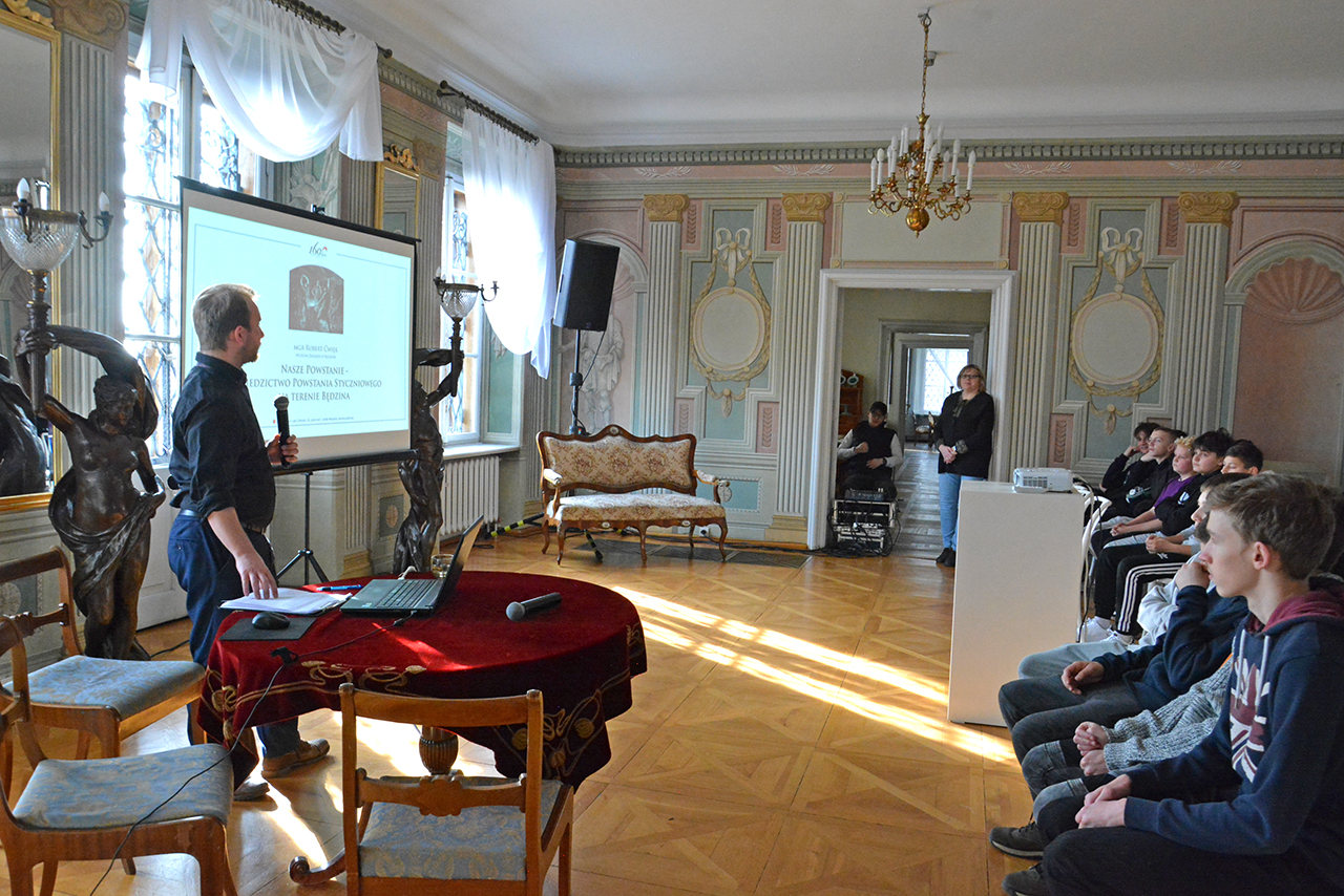 Dziękujemy młodzieży za liczne przybycie w środę i czwartek do Pałacu Mieroszewskich, gdzie kurator wystawy przybliżył historię wybuchu powstania styczniowego w Zagłębiu Dąbrowskim. Młodzież z zainteresowaniem wysłuchała opowieści o przyczynach i skutkach powstania oraz prelekcji na temat Nasze powstanie – dziedzictwo Powstania Styczniowego na terenie Będzina.