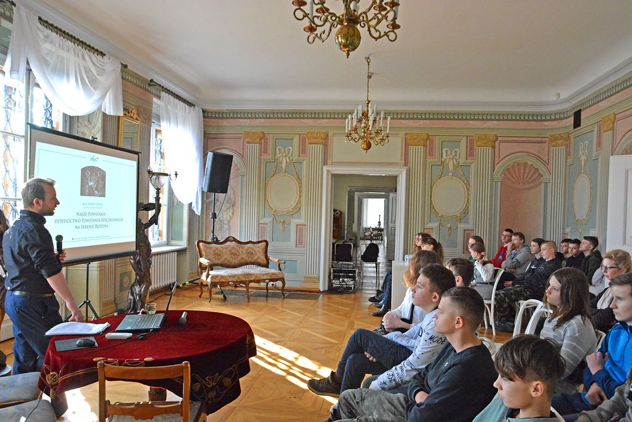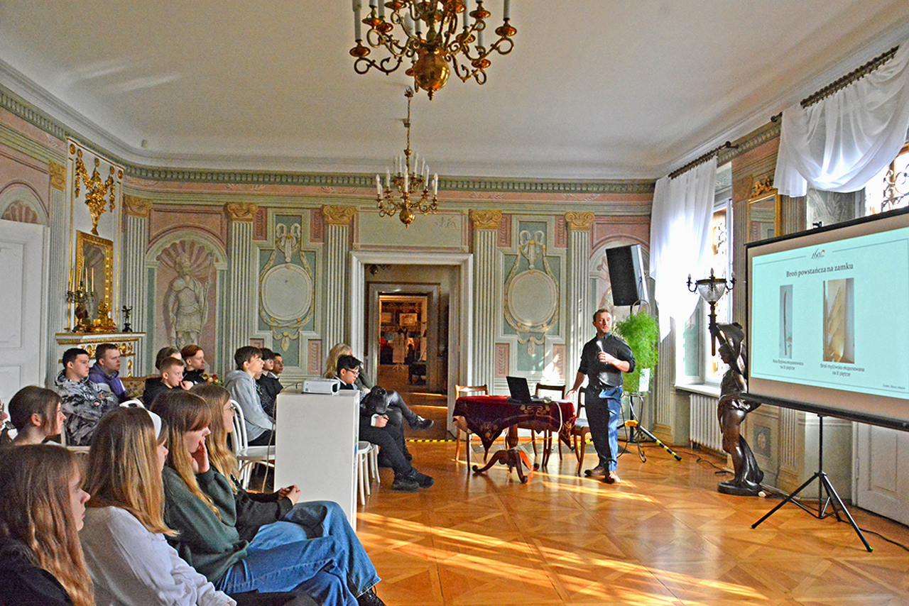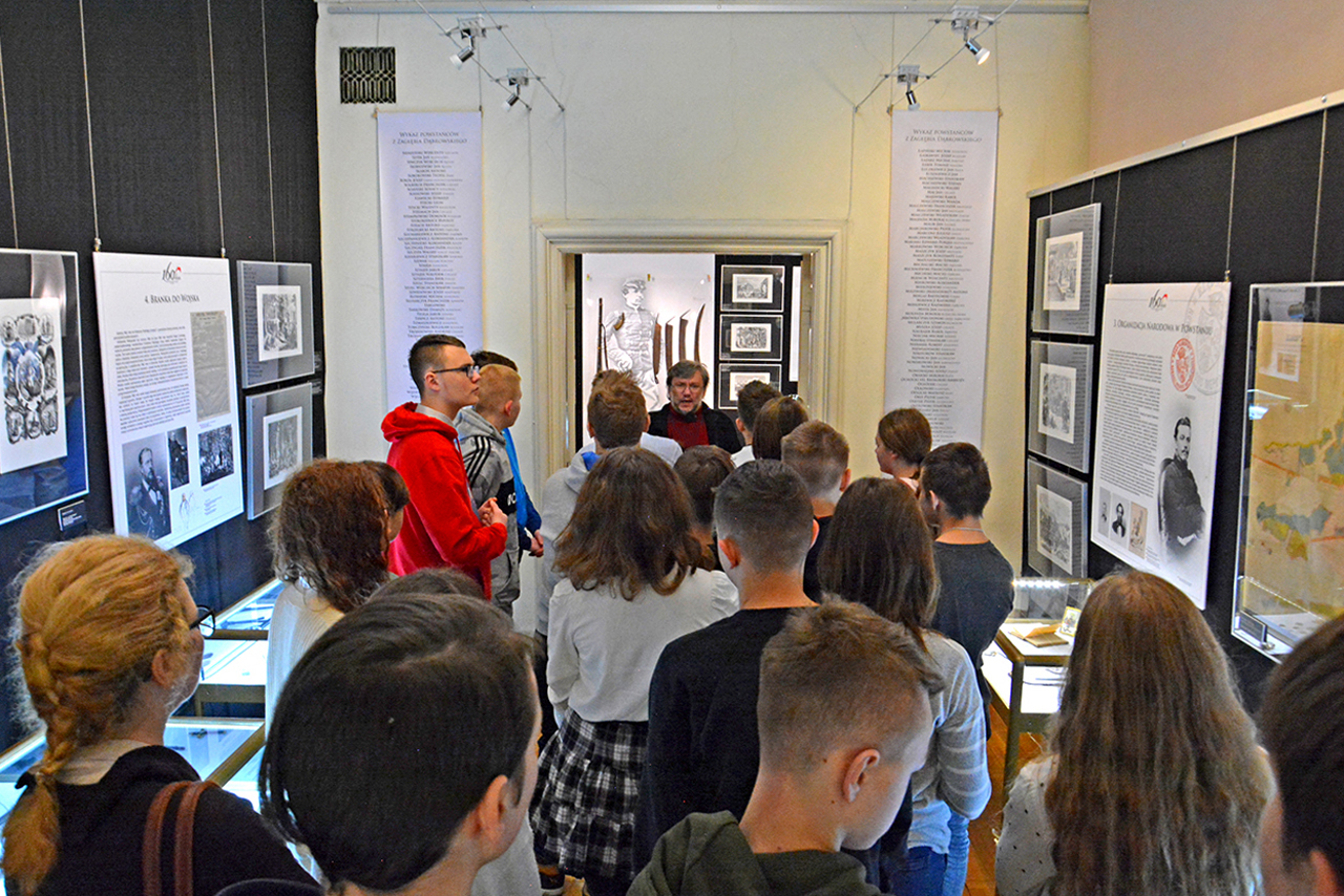 Dziękujemy młodzieży za liczne przybycie w środę i czwartek do Pałacu Mieroszewskich, gdzie kurator wystawy przybliżył historię wybuchu powstania styczniowego w Zagłębiu Dąbrowskim. Młodzież z zainteresowaniem wysłuchała opowieści o przyczynach i skutkach powstania oraz prelekcji na temat Nasze powstanie – dziedzictwo Powstania Styczniowego na terenie Będzina.