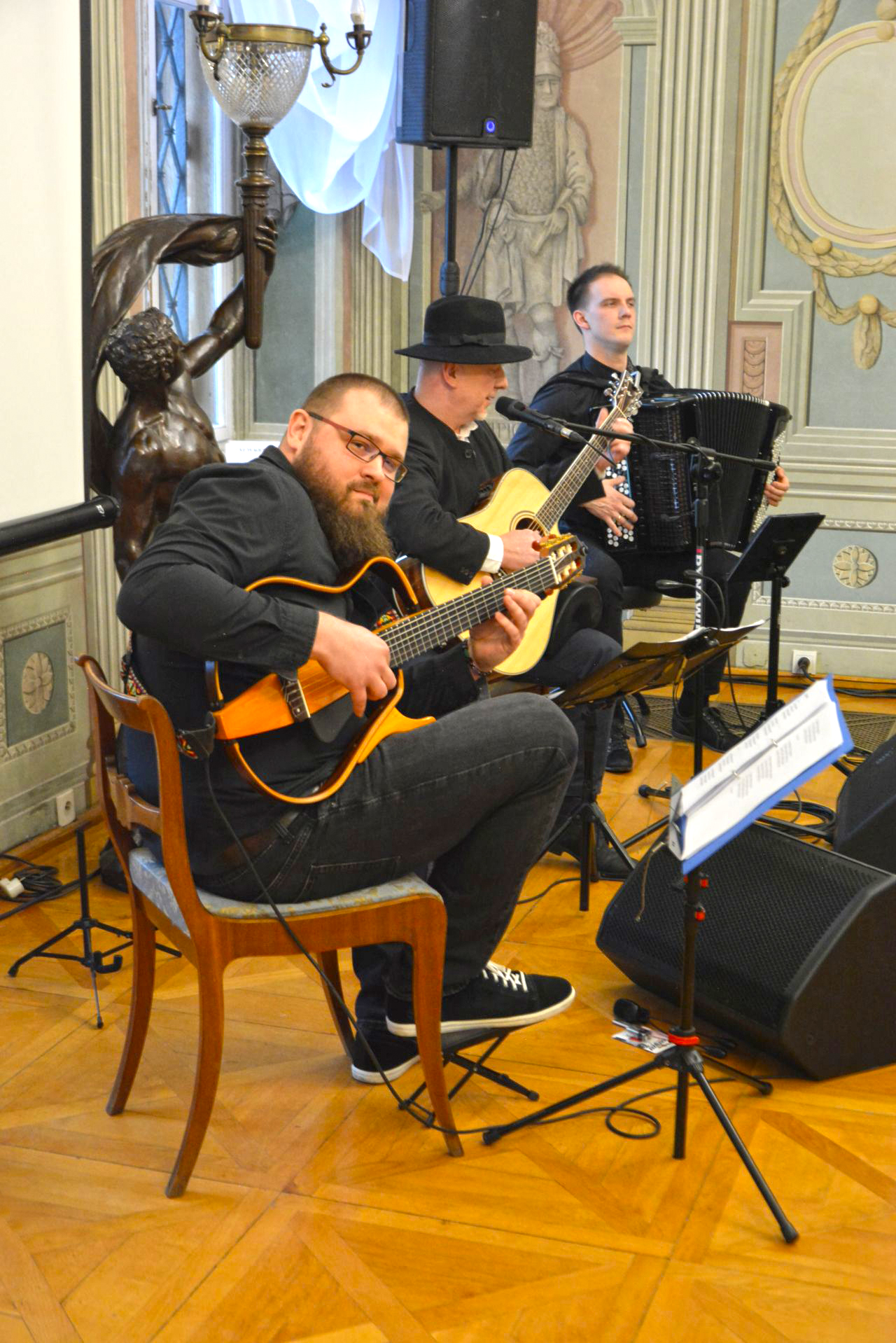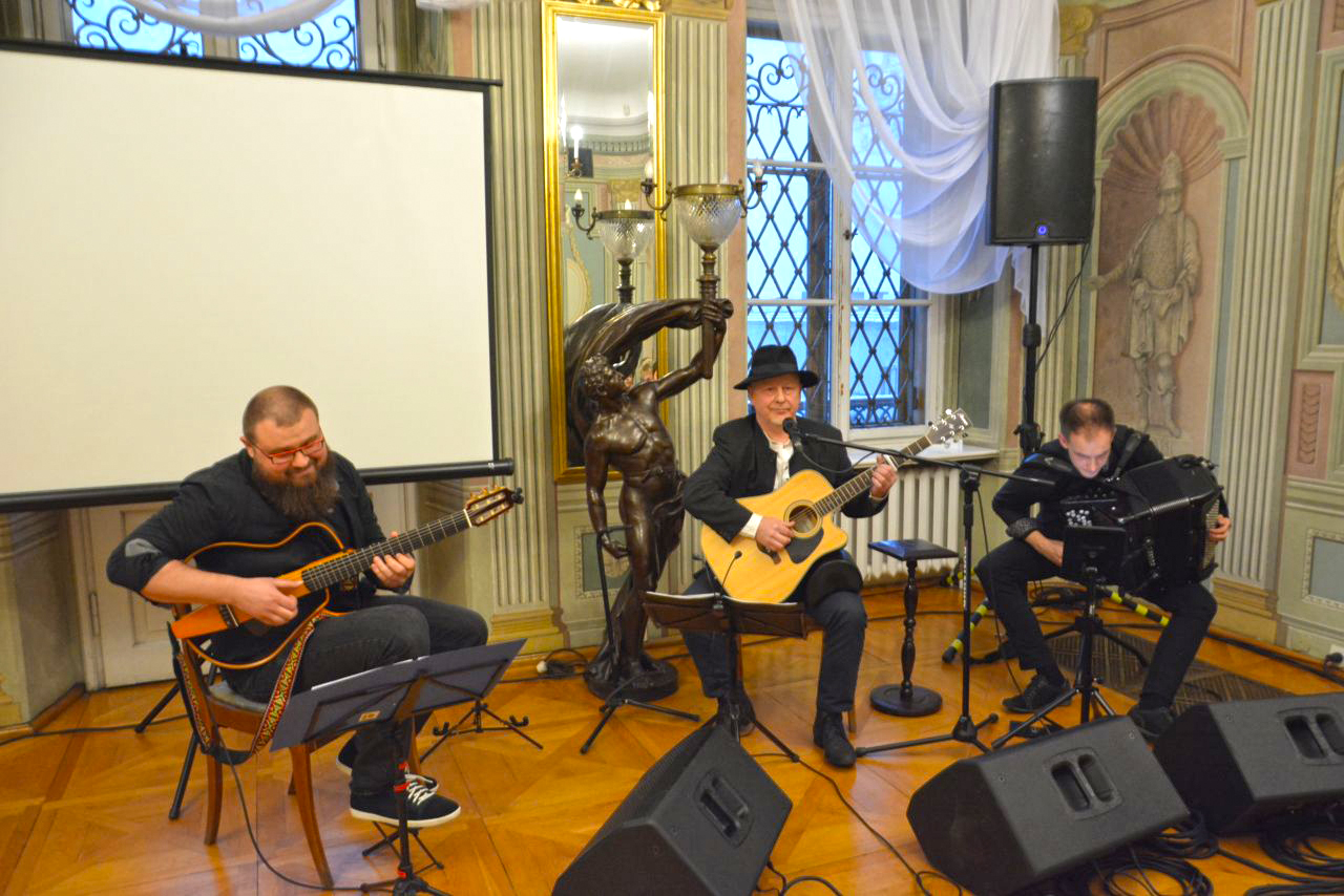 Od października ubiegłego roku w pałacu była prezentowana ekspozycja „BĘDZIN, którego już nie ma”, a jej przedłużeniem jest wydawnictwo pod tym samym tytułem, które przedstawiliśmy na finisażu wystawy. Bardzo dziękujemy za udział we wspólnym świętowaniu Prezydentowi Miasta – Łukaszowi Komoniewskiemu oraz Naczelnikowi Wydziału Promocji, Kultury, Sportu i Komunikacji Społecznej - Kamilowi Kowalowi. Całe wydarzenie uświetnił występ Zbigniewa Tepera z zespołem „Mizrachi”.