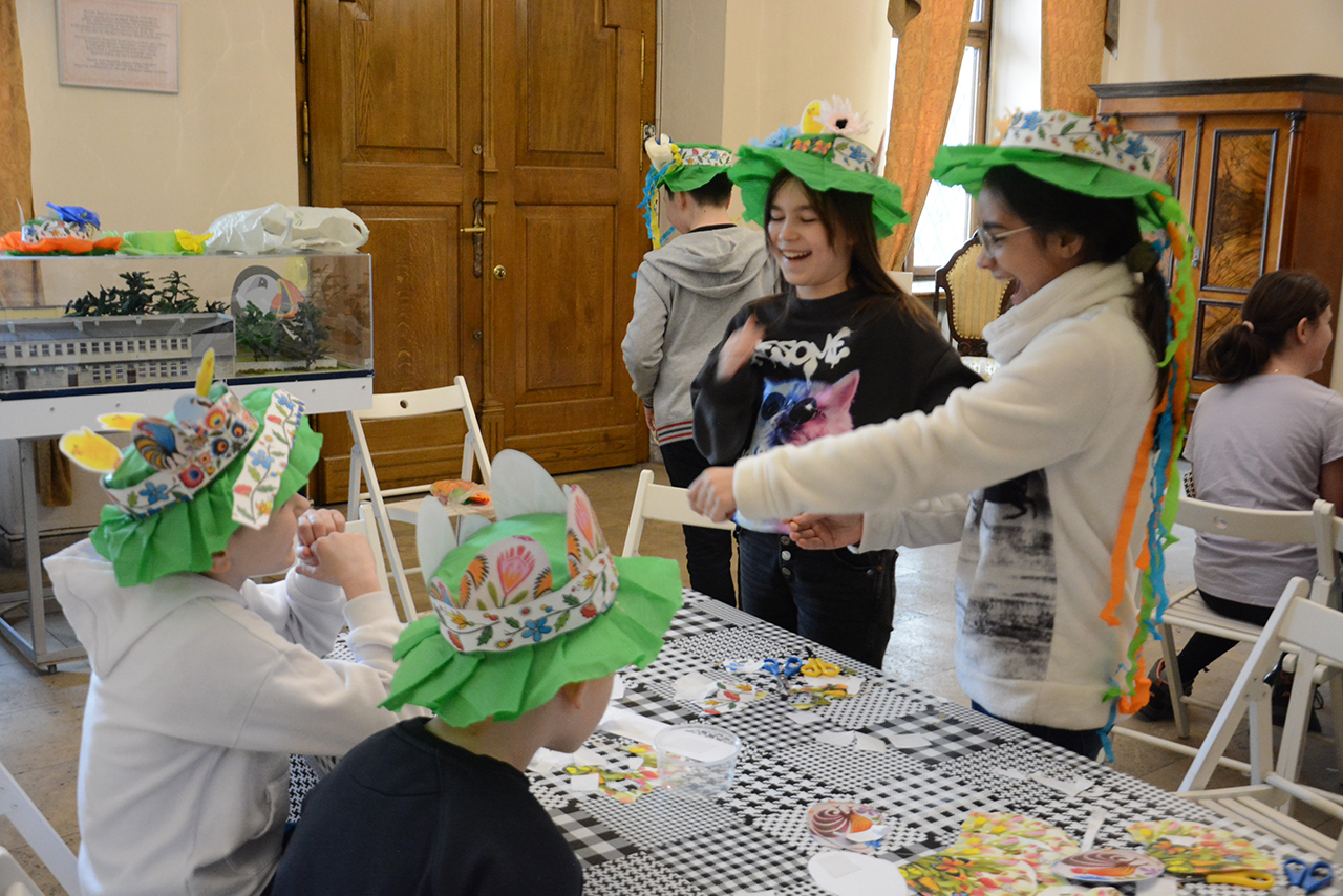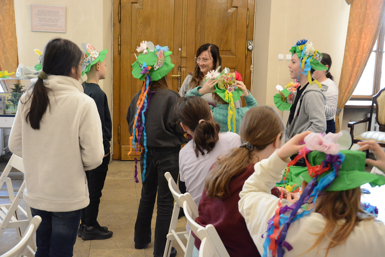 Wielkanoc to najważniejsze święto chrześcijańskie kojarzące się z wiosną i barwnymi pisankami. W tym tygodniu w pałacu również było kolorowo, ponieważ uczniowie będzińskiej szkoły podstawowej wykonali piękne kapelusze inspirowane świętami.