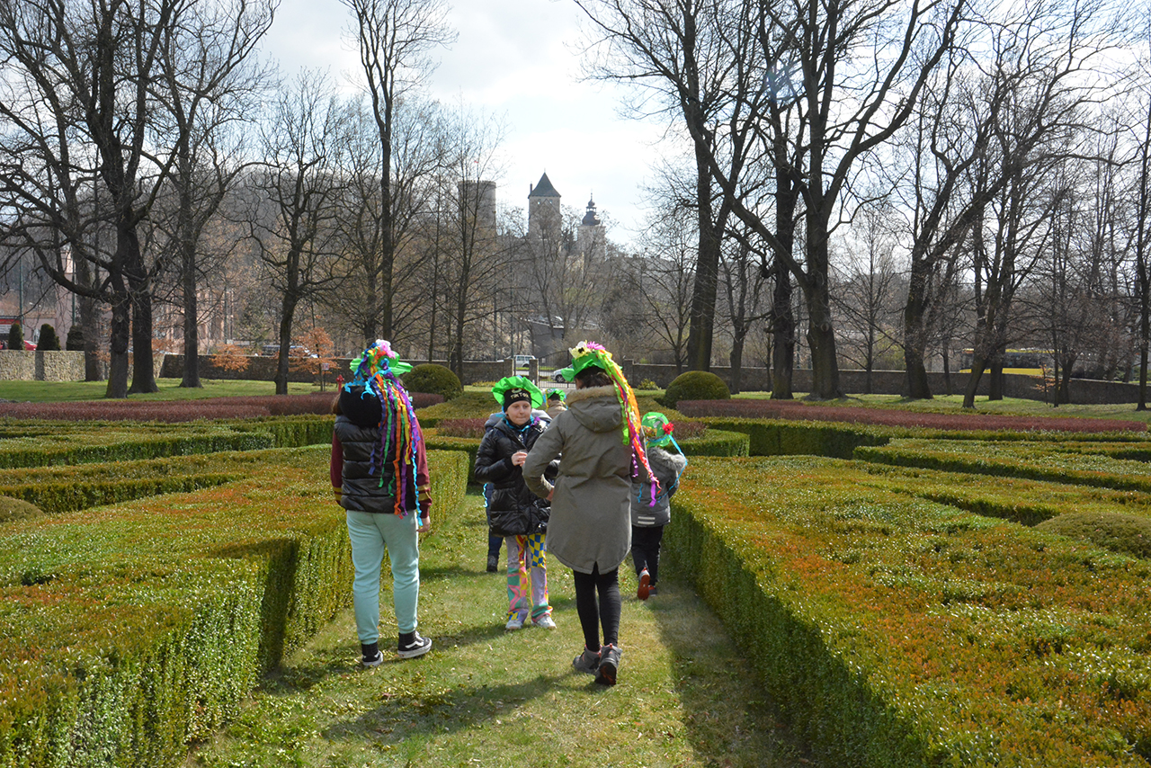 Zanim uczestnicy zajęć mogli się pochwalić efektami swojej pracy poznali tradycje wielkanocne kultywowane w różnych krajach świata. Na koniec warsztatów wspólnie szukaliśmy czekoladowych jajek w ogrodzie pałacowym.