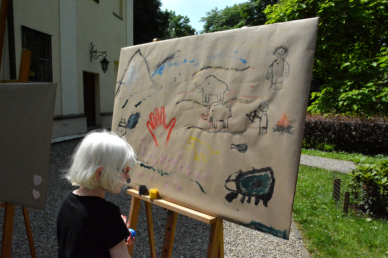 Podczas Wakacyjnych Warsztatów Muzealnych w Muzeum Zagłębia w Będzinie dzieci odbyły wycieczkę do czasów paleolitu. Poznały historię początków człowieka na Ziemi, a także zobaczyły na własne oczy ząb mamuta oraz narzędzia krzemienne sprzed tysięcy lat. Po zakończonej prelekcji wszyscy wykazali się niesamowitą inwencją twórczą i stworzyli własne malowidła naskalne. Zajęcia zakończyły się wspólnym zwiedzaniem Podziemi będzińskich.