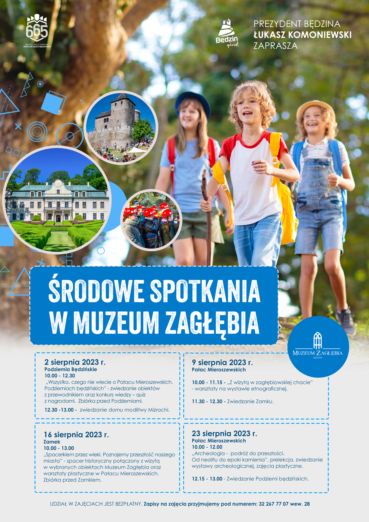 10:00 - 13.00 - „Spacerkiem przez wieki. Poznajemy przeszłość naszego miasta” - spacer historyczny połączony z wizytą w wybranych obiektach Muzeum Zagłębia oraz warsztaty plastyczne w Pałacu Mieroszewskich. Zbiórka przed Zamkiem.