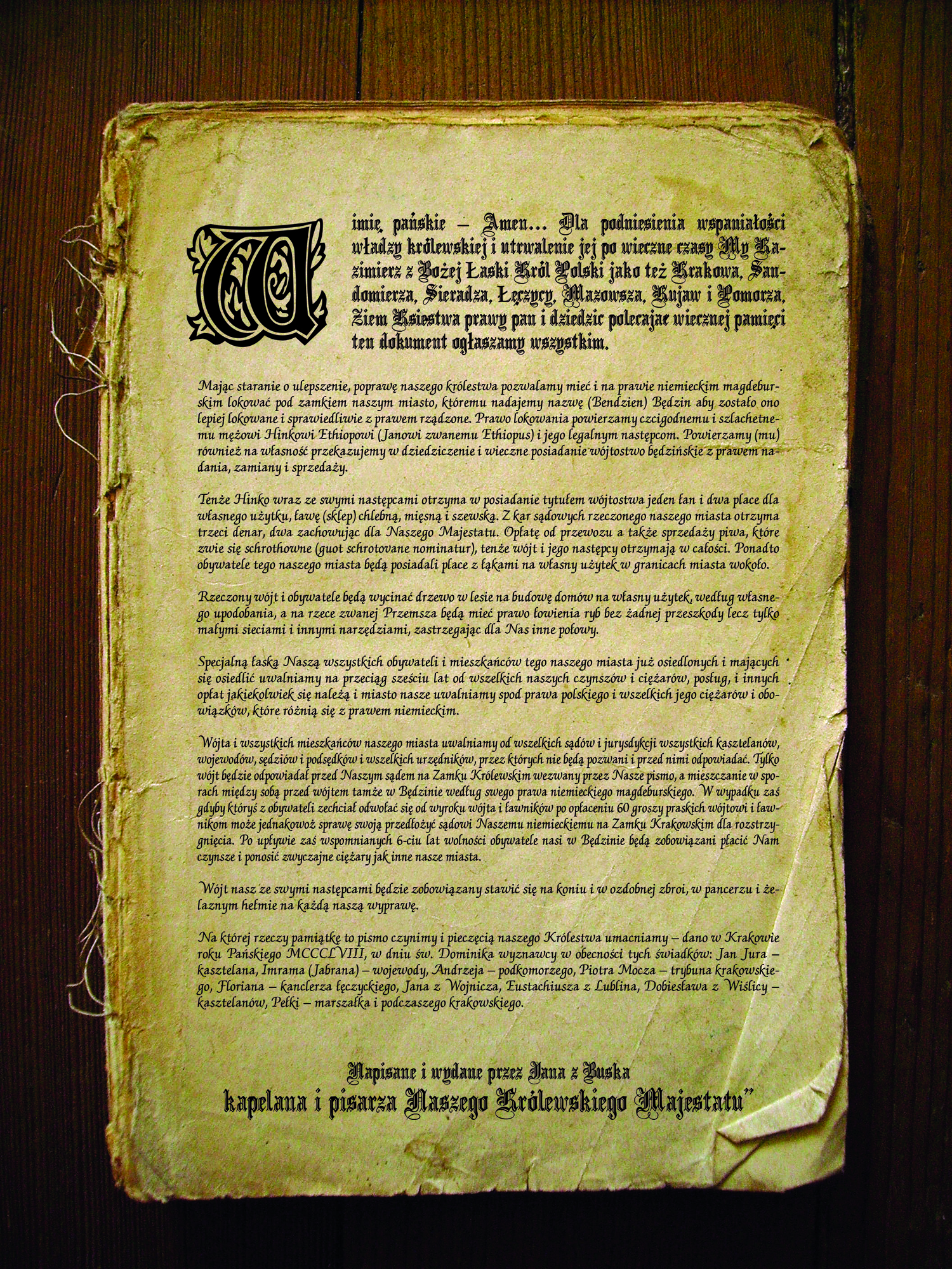 Stylizowane tłumaczenie aktu lokacji Będzina