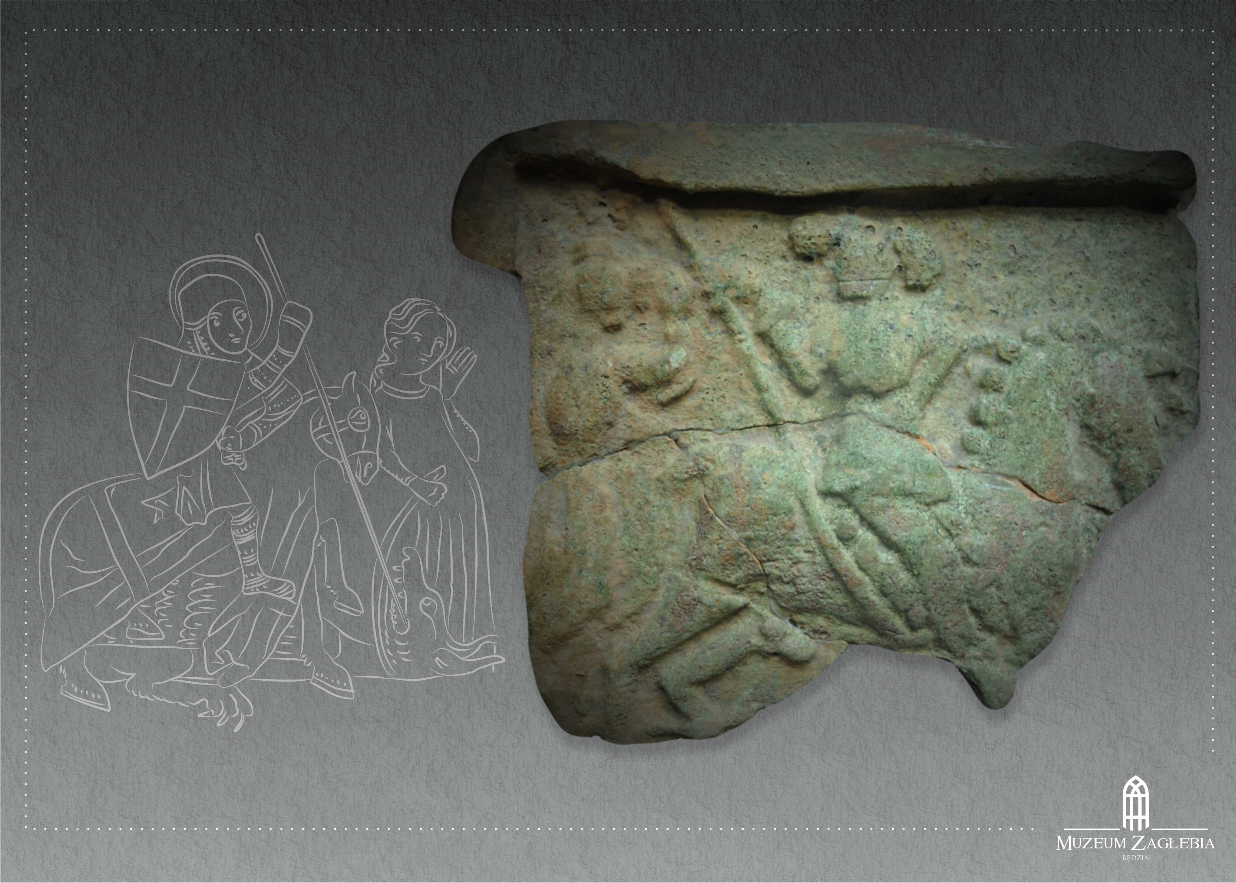 Na kaflu z Żarnowca, który zachował się w trzech dużych fragmentach, widoczny jest rycerz na koniu. W prawej dłoni trzyma włócznię skierowaną w dół. Z lewej strony sceny znajduje się księżniczka, o której wspomina legenda. W części niezachowanej u stóp rycerza zapewne leżał ugodzony smok. Kafel wykonano z gliny żelazistej oraz pokryty został cienką warstwą zielonego szkliwa. Swoją formą nawiązuje on do stylistyki XVI-wiecznych kafli śląskich oraz czeskich.