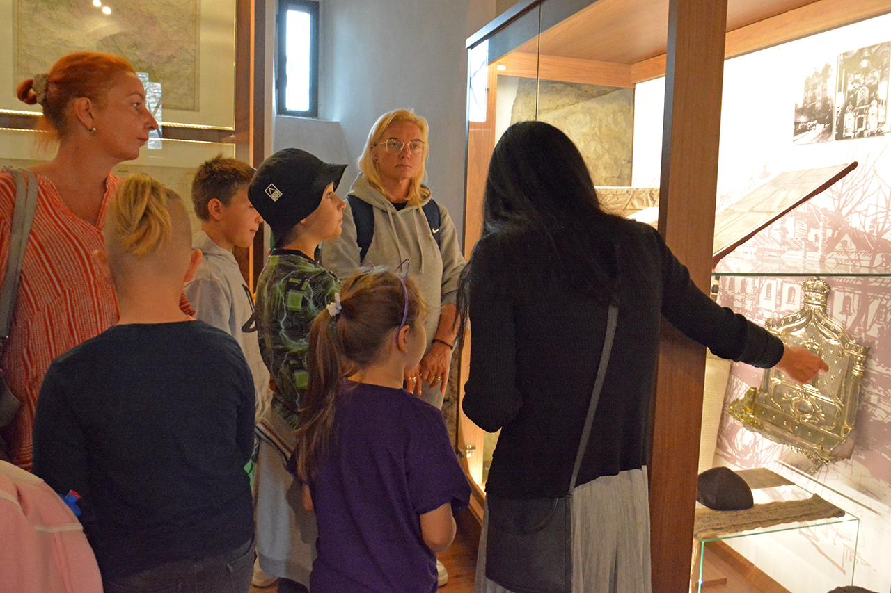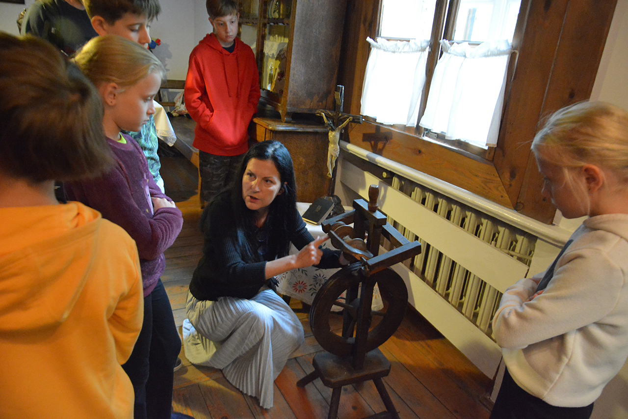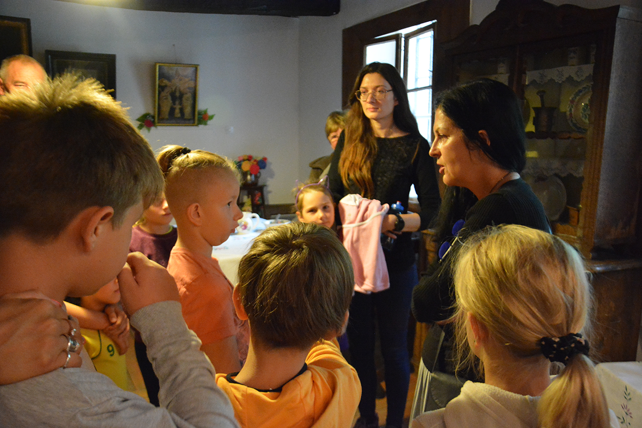 Duże wrażenie zrobił sam wystrój izby – malowana skrzynia wianna, kredens, obrazy na ścianach i piec zastawiony używanymi niegdyś rondlami i garnkami.