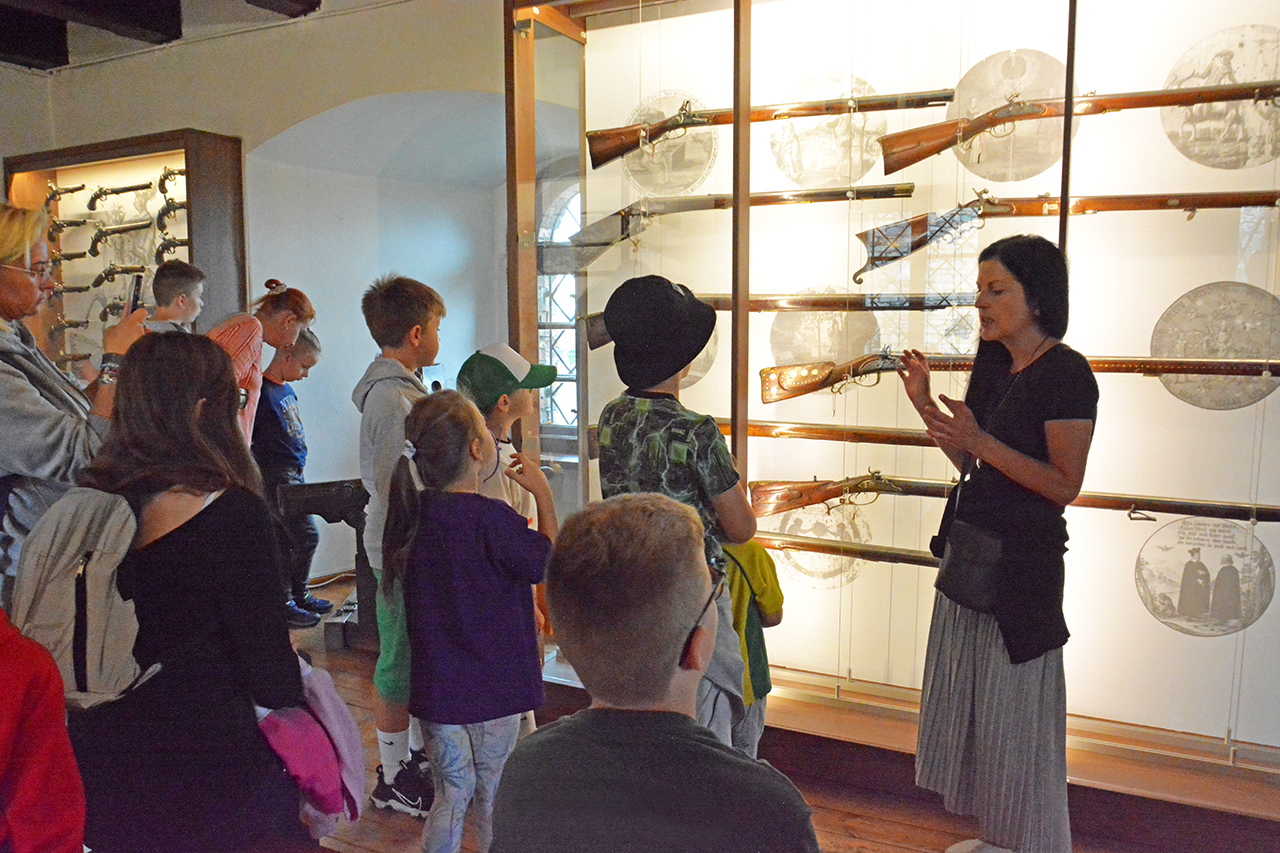 Odwiedziny w będzińskim zamku, zaplanowane w drugiej części zajęć, z pewnością również na długo zapadną w pamięć uczestników, żywo zainteresowanych danymi pistoletami, strzelbami, zbrojami rycerskimi i całym bojowym rynsztunkiem.