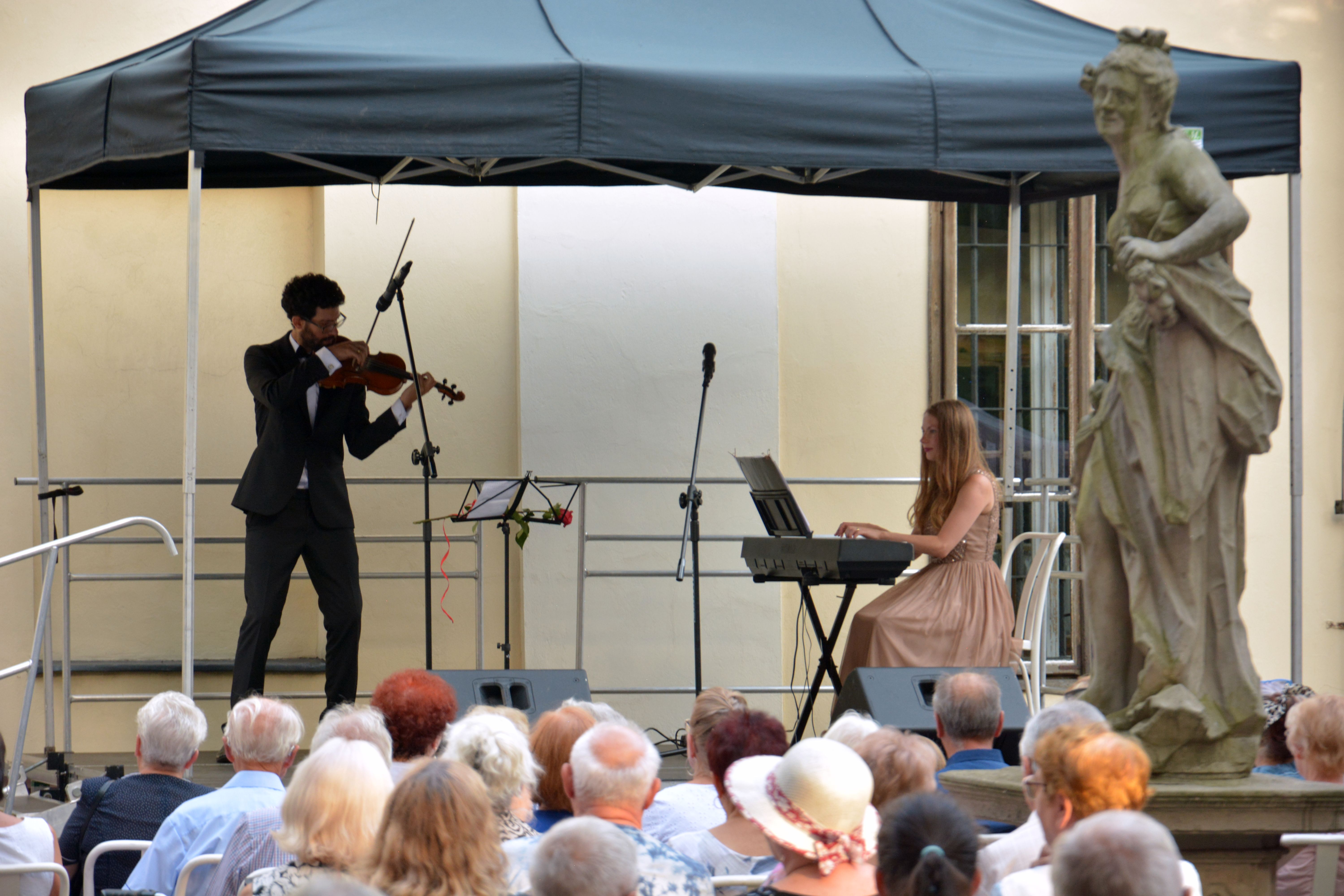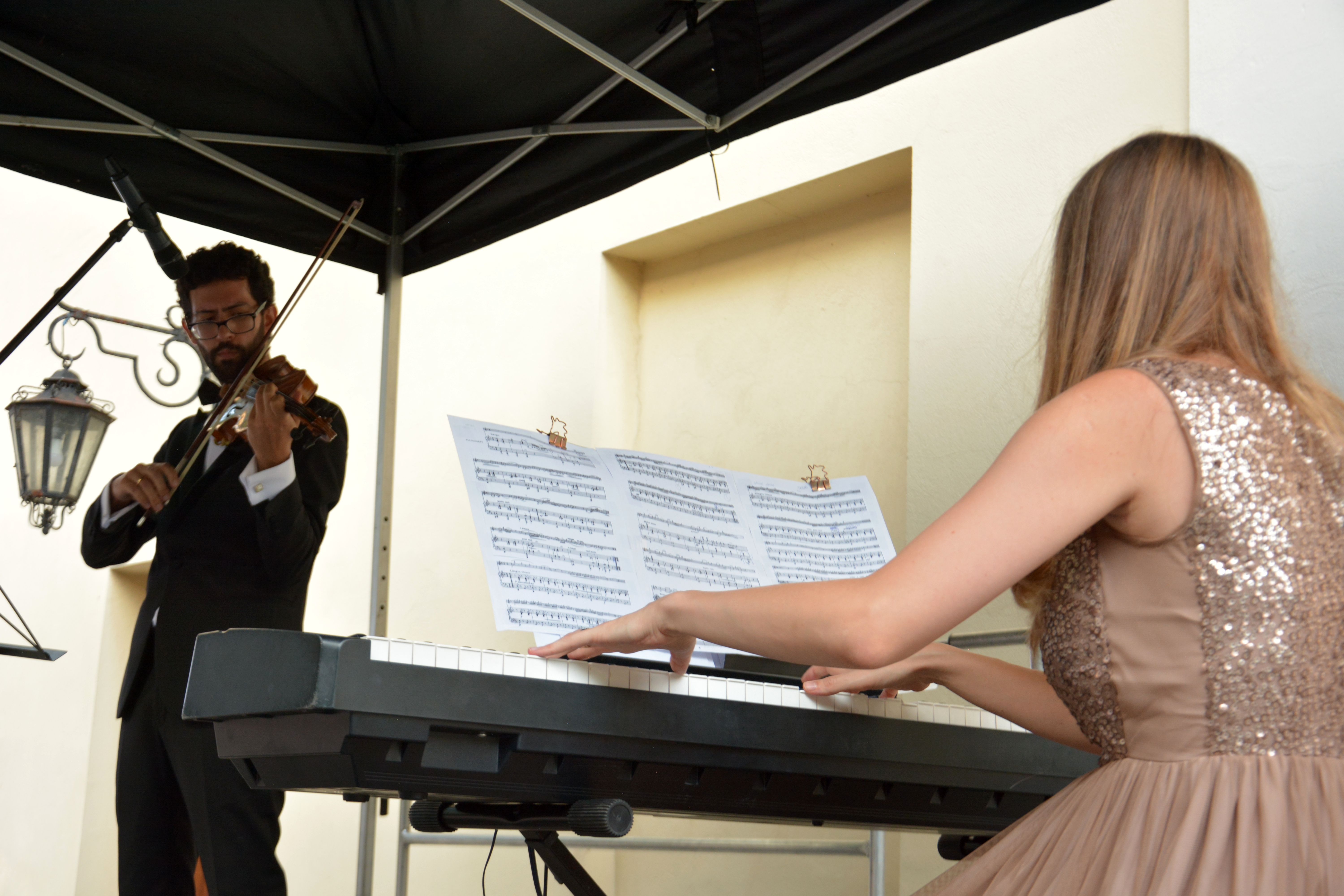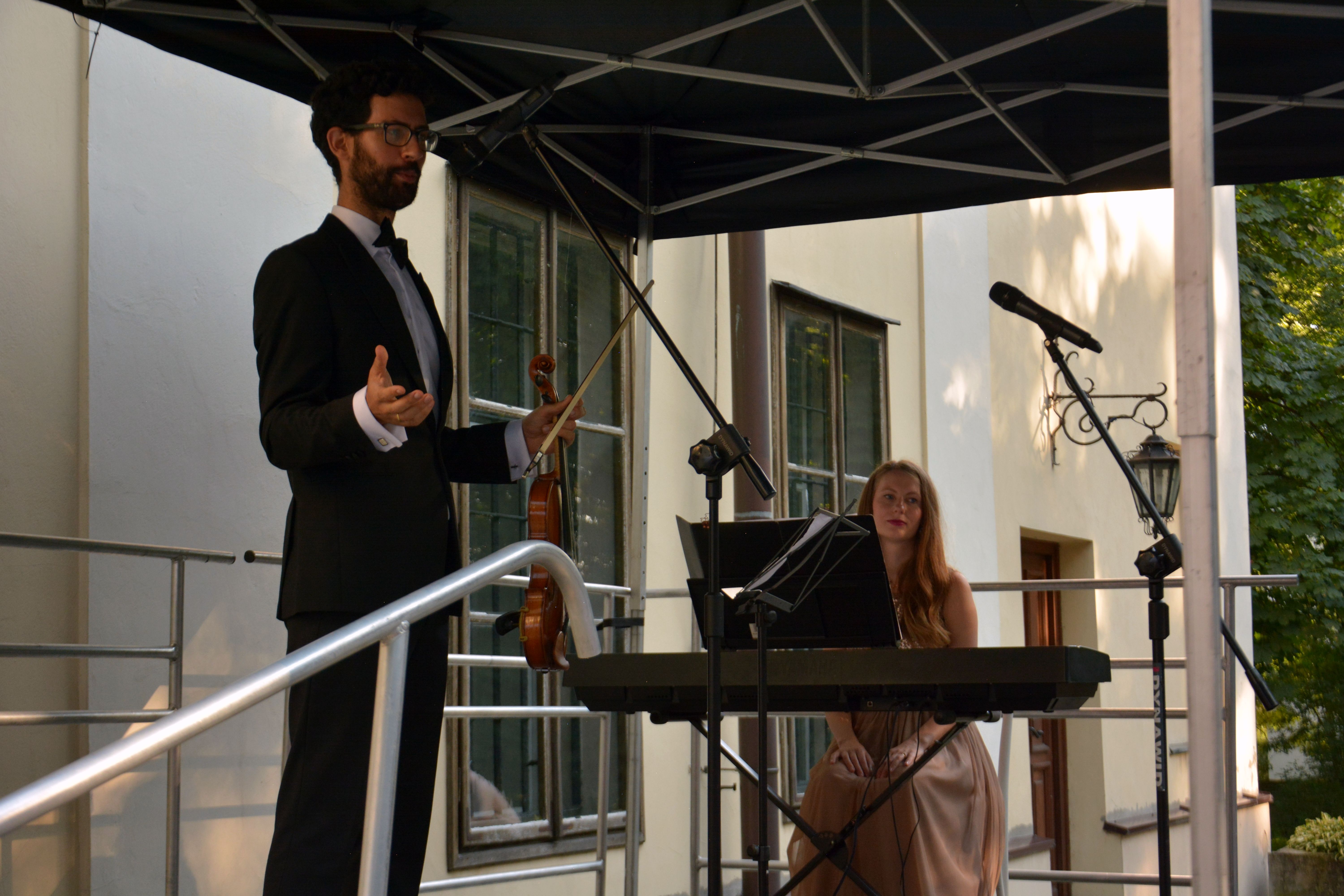 Duet tworzą: Alicja Gutowska-Martinez – pianistka i Daniel Martinez Gomez – skrzypek. Podczas koncertu z cyklu „Podwieczorek z muzyką poważną” usłyszeliśmy między innymi: Taniec Węgierski nr 2 J. Brahmsa, Czardasz V. Monti a także tematy muzyczne znane z klasyków kina – „Lista Schindlera”, „Ojciec Chrzestny” czy „Noce i dnie”. Dziękujemy za Państwa obecność. Do zobaczenia za tydzień!