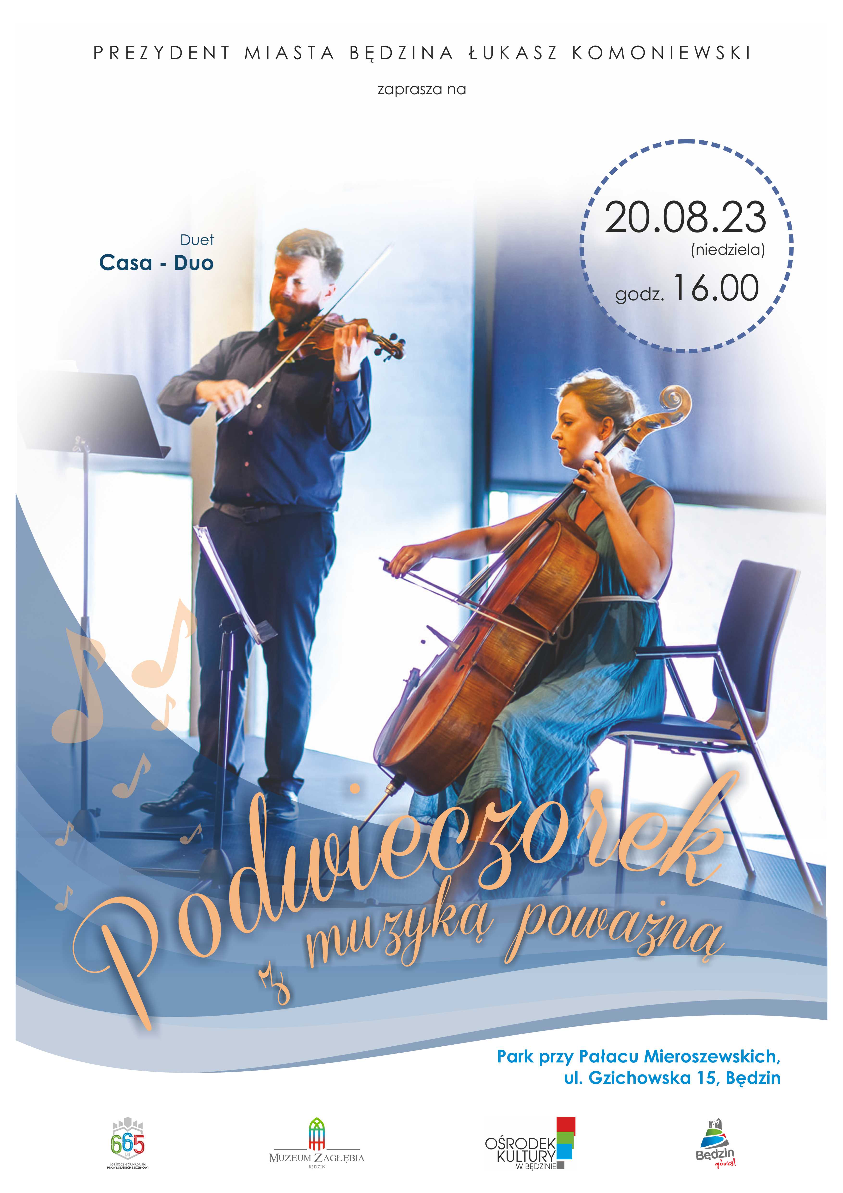 W niedzielne popołudnie wystąpi dla Państwa Casa-Duo, który tworzą wiolonczelistka Paulina Grondys oraz skrzypek Jakub Łysik – instrumentaliści Śląskiej Orkiestry Kameralnej, jednego z zespołów Filharmonii Śląskiej w Katowicach. Podczas koncertu usłyszymy muzykę klasyczną , a także autorskie opracowania muzyki popularnej i filmowej.