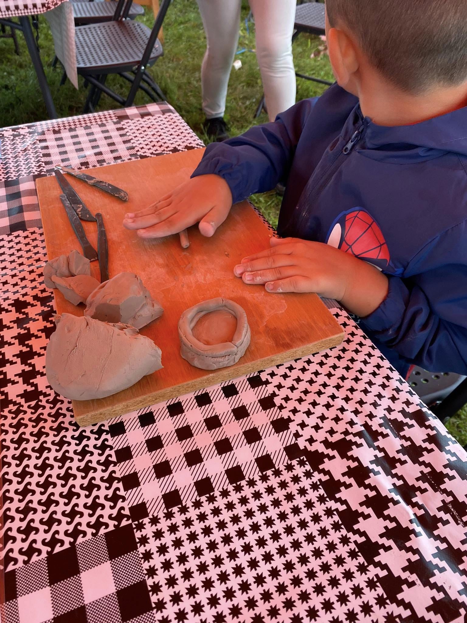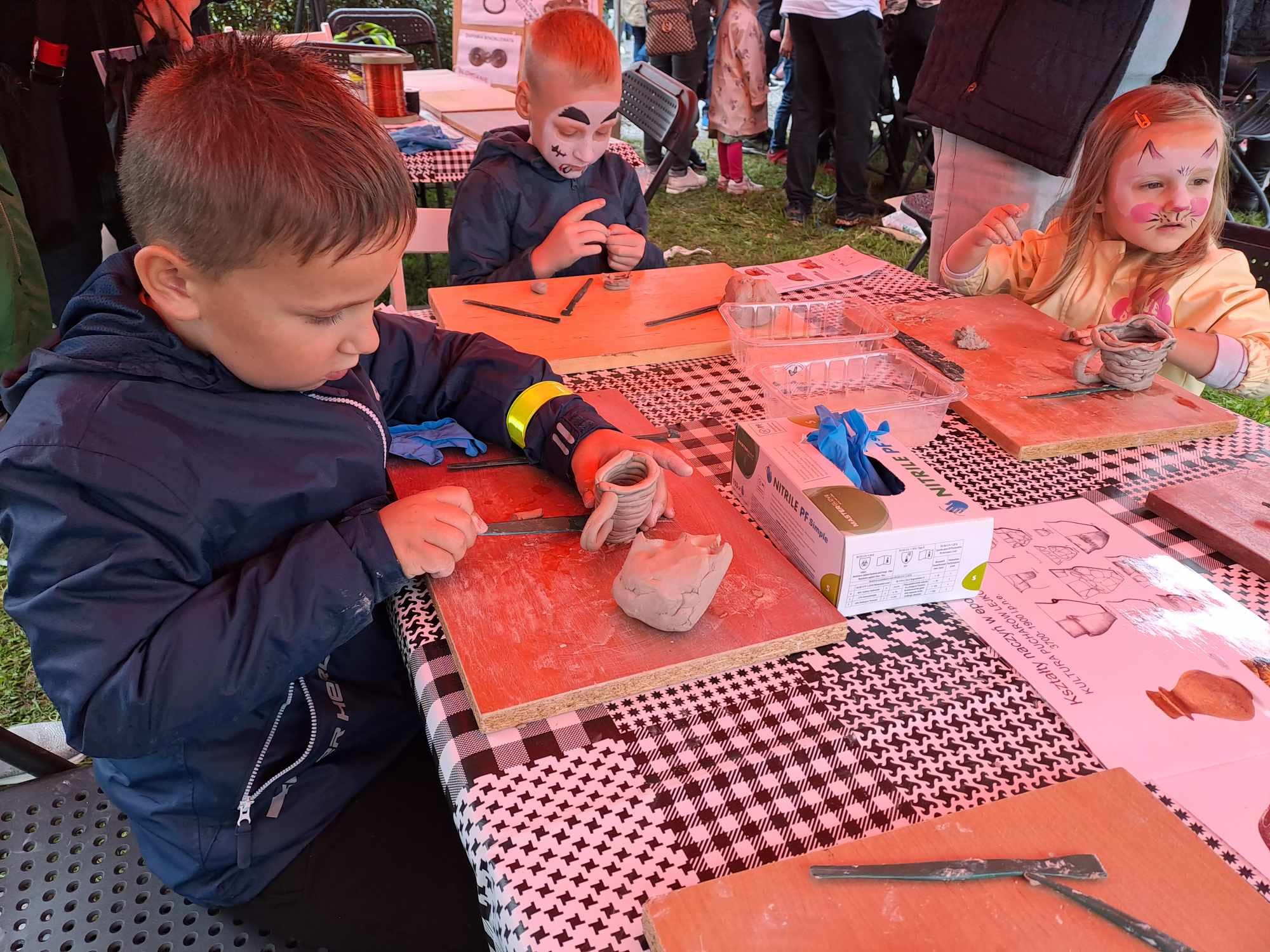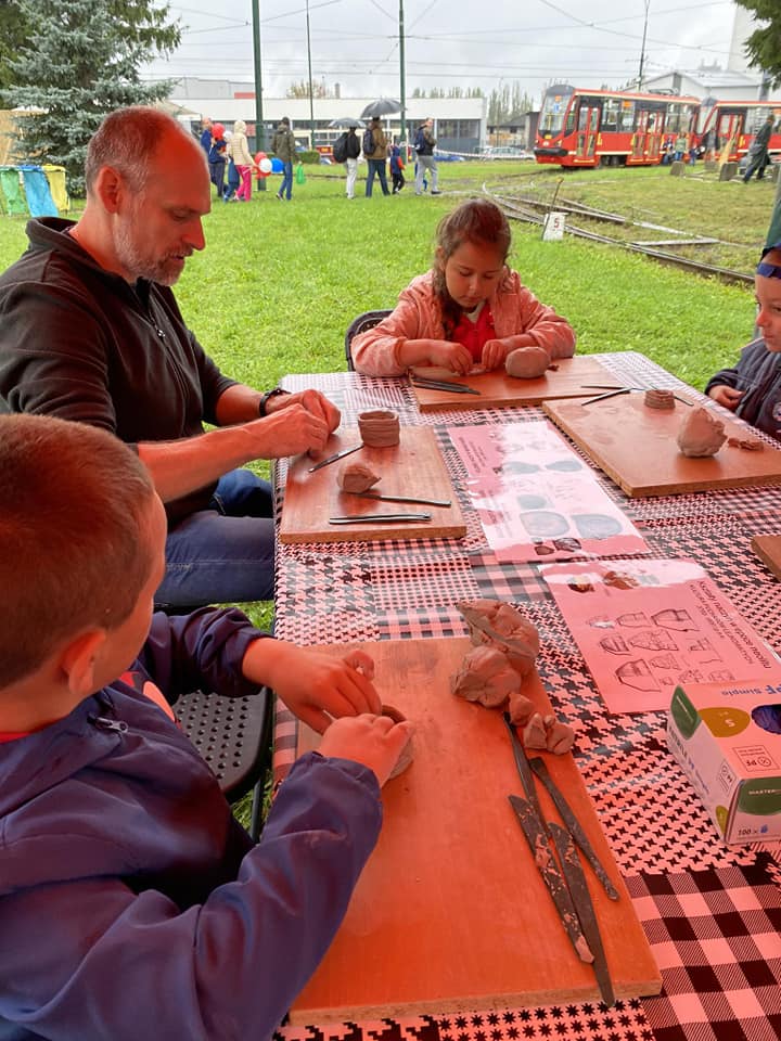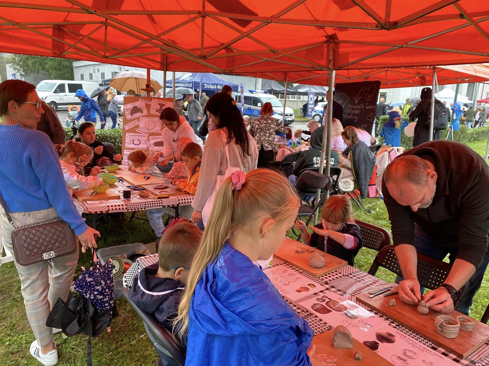 Podczas warsztatów #MuzeumZagłębiawBędzinie młodzi uczestnicy mogli dowiedzieć się jak ważną rolę w starożytnym świecie odgrywała biżuteria, która w ówczesnym świecie była niemalże obowiązkowa. Następnie każdy mógł wykonać ozdobę dla siebie. W drugiej części naszego stoiska królowało neolityczne garncarstwo, gdzie dzieci mogły puścić wodze wyobraźni przy ręcznym lepieniu naczyń. Tutaj forma była dowolna, co skutkowało powstawaniem wyjątkowych i niepowtarzalnych kształtów.