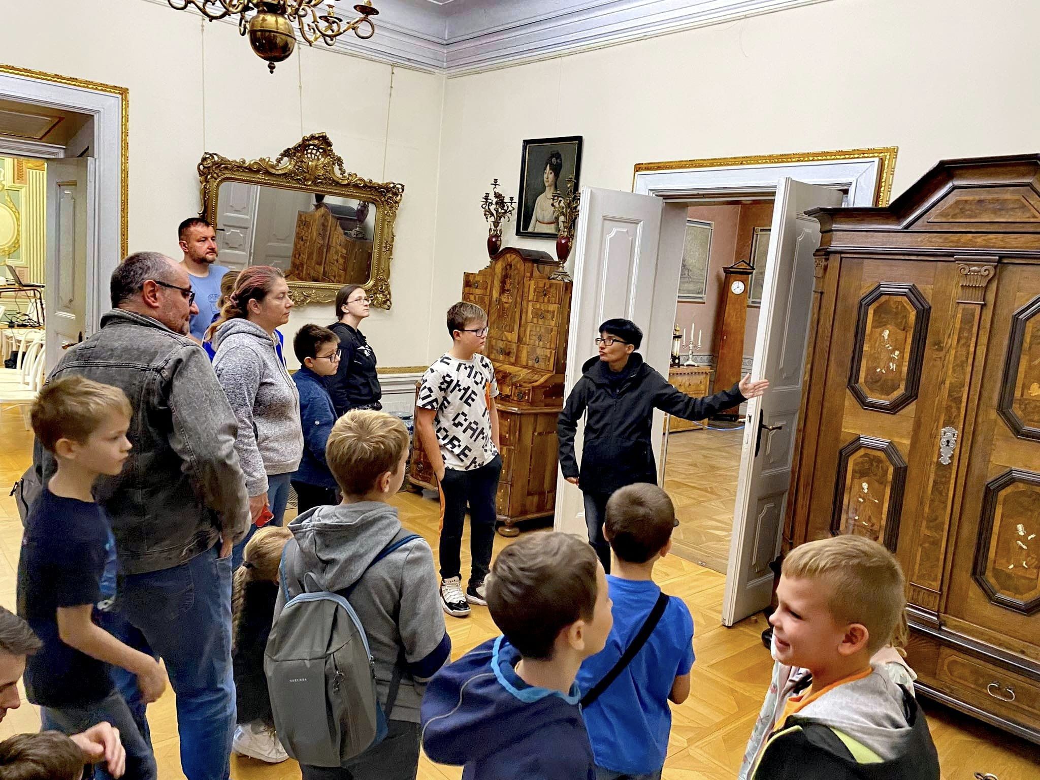 Młodzi poszukiwacze wiedzy wraz z rodzicami zwiedzili zamek, gdzie zapoznali się z historią rozwoju broni palnej oraz białej. Następnie udali się do Pałacu Mieroszewskich, gdzie poznali historię obiektu i rodziny Mieroszewskich. Na koniec studenci UŚD mieli okazję zetknąć się ze szlachetną dziedziną - archeologią, uczestnicząc w wykładzie na temat epoki kamienia. W ramach warsztatów archeologicznych wcielili się na moment w ludzi z epoki paleolitu, wykonując własnoręcznie malowidła naskalne.