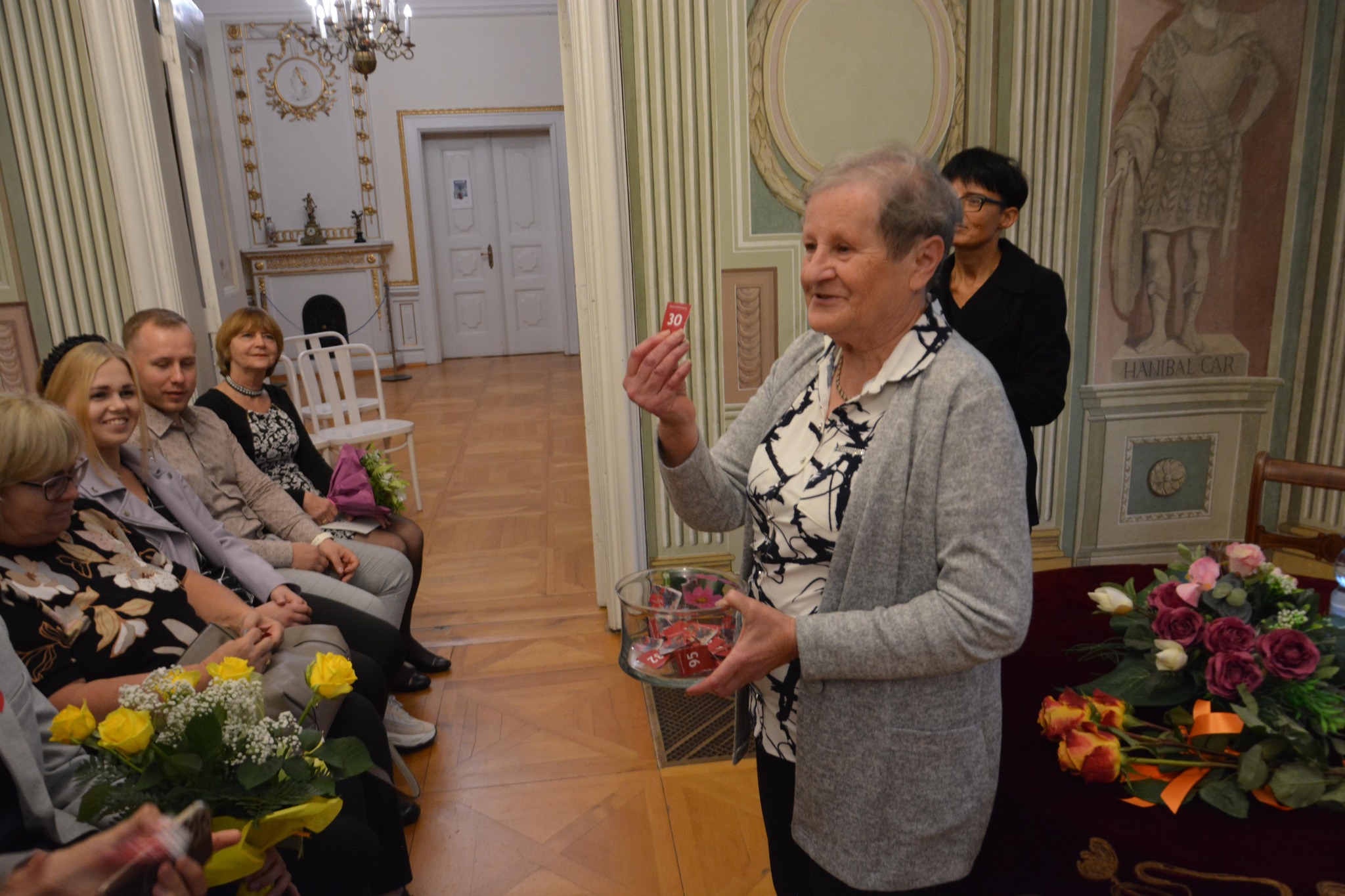 Spotkanie uświetnił akcent muzyczny a przybyli goście mogli liczyć że uśmiechnie się do nich szczęście w czasie loterii, gdzie nagrodą była jedna z prac pani Haliny. Słodki poczęstunek oraz wspólne zwiedzanie wystawy zakończyły to niezwykle miłe popołudnie.