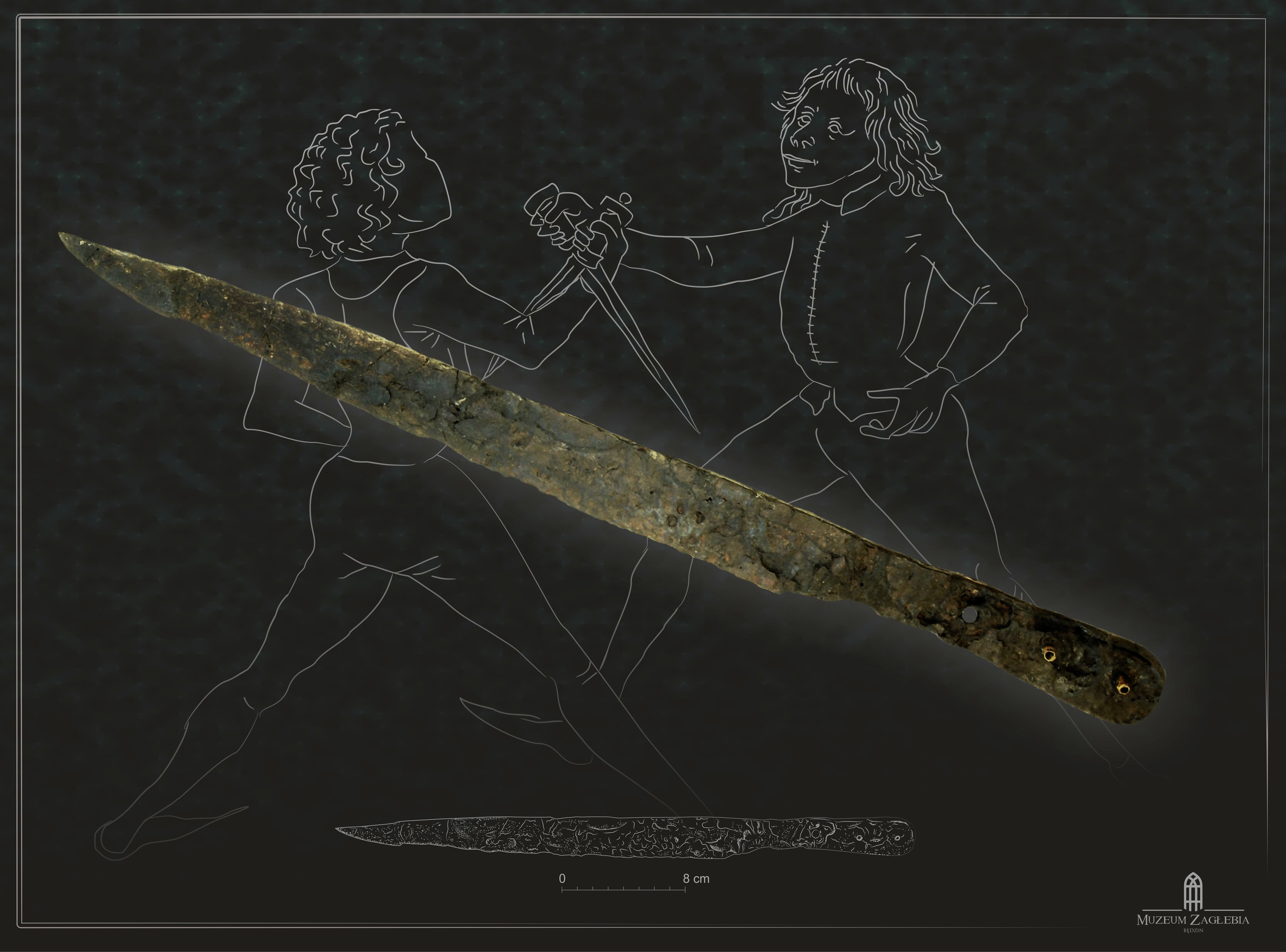Prezentowany obiekt to nóż bojowy odnaleziony w 2015 roku podczas prac remontowych na zamku w Będzinie. Zabytek o długości 38 cm został wykonany z jednego kawałka żelaza, z wyszczególnioną rękojeścią oraz głownią jednosieczną. W trzpieniu znajdują się trzy otwory z zachowanymi nitami, które scalały okładzinę rękojeści. Przedstawiony nóż jest formą o cechach puginału nożowego, który charakteryzuje się zwężającym sztychem, pełniąc w ten sposób również rolę broni kolnej. Nóż z zamku będzińskiego można datować na okres od XIV do pocz. XVI wieku W przypadku kordów oraz puginałów nożowych   posiadały one dodatkowo wyodrębnioną głowicę, jelec lub przymocowaną z jednej strony tarczkę chroniącą dłoń.