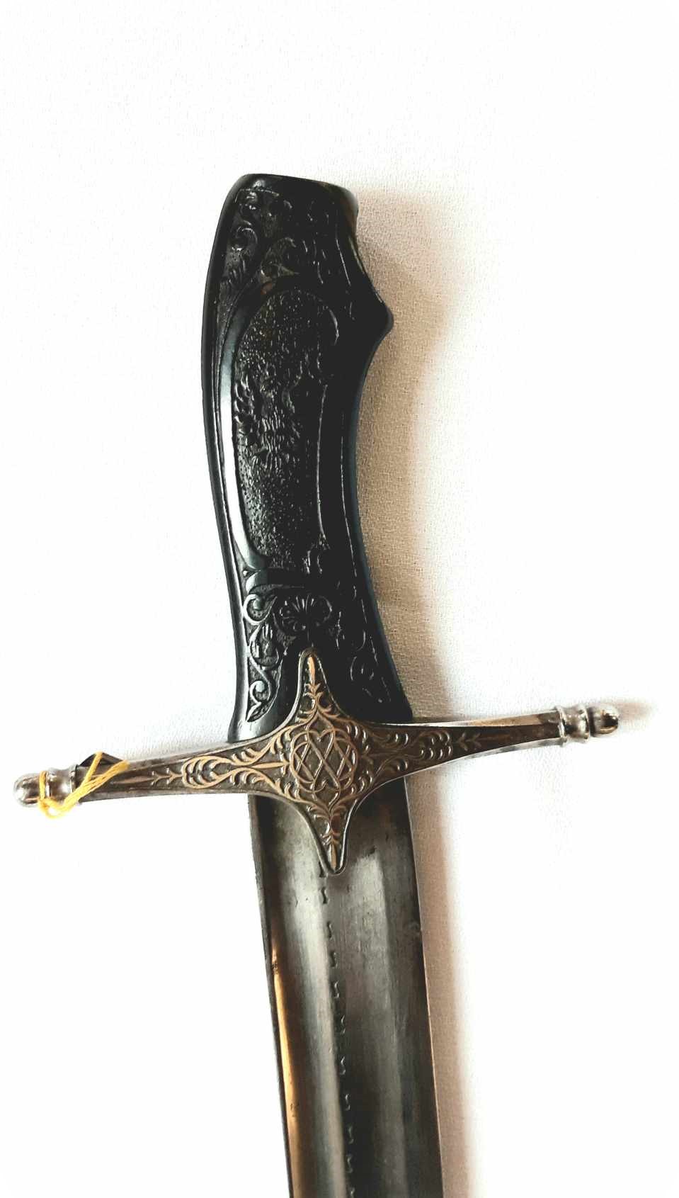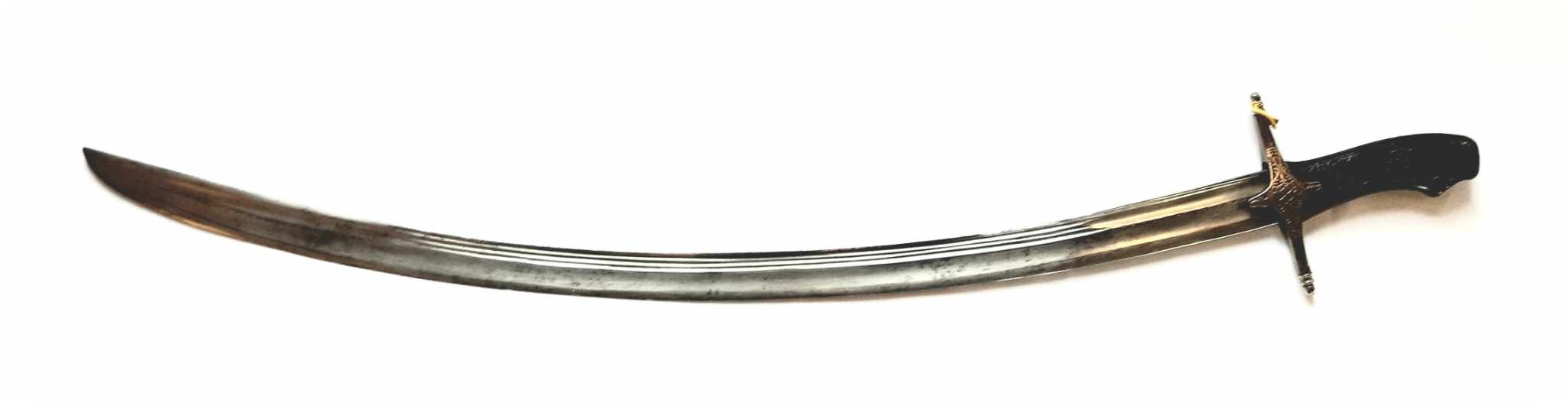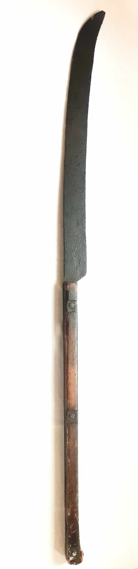 Fotografie: kosa bojowa, według tradycji użyta w walkach o Sosnowiec w 1863 r.; szabla polska z motywami patriotycznymi i hebanową rękojeścią, z okresu okołopowstańczego.