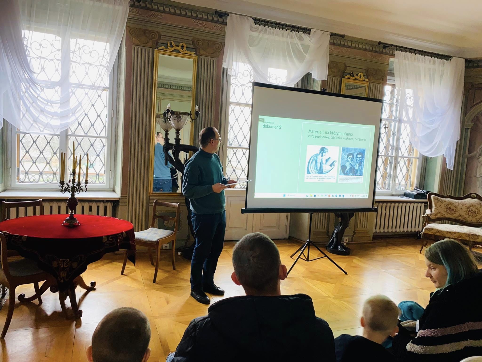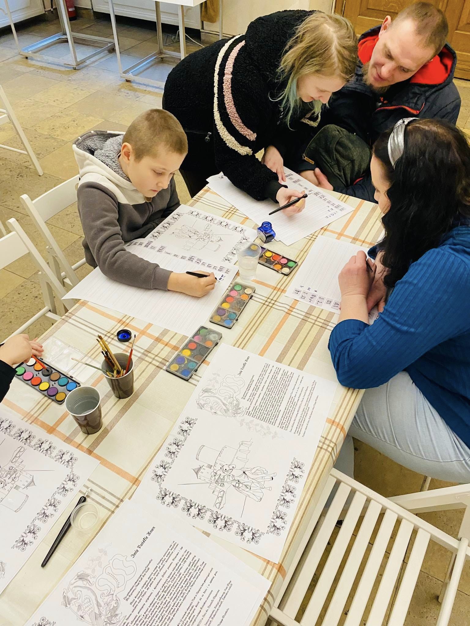 31 stycznia w Pałacu Mieroszewskich odbyły się zajęcia „Jak powstaje dokument?”. Po wysłuchaniu prelekcji na temat historii materiałów piśmienniczych i ciekawostek związanych z kaligrafią, uczestnicy warsztatów mogli poćwiczyć pisanie gotycką teksturą alfabetu.
