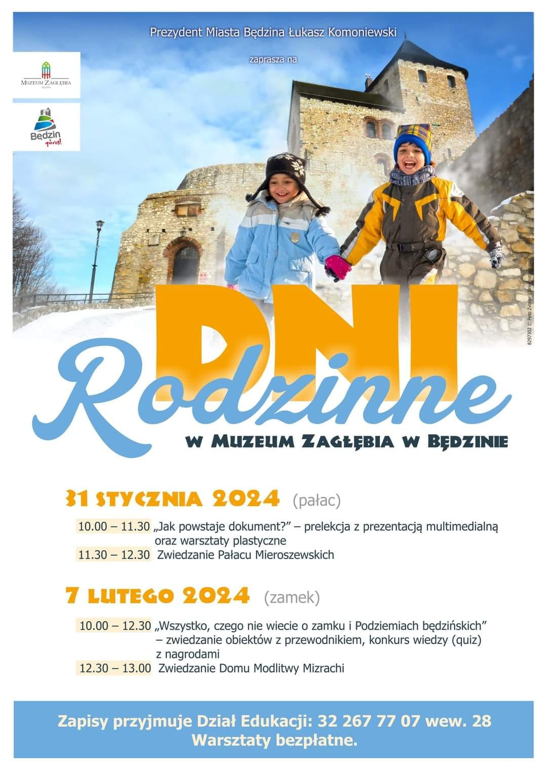 Serdecznie zapraszamy na kolejne zajęcia już w przyszłym tygodniu. Tym razem na Zamek i do Podziemi będzińskich, gdzie podczas zwiedzania obiektów odbędzie się konkurs wiedzy i quiz z nagrodami. Tego dnia będzie również możliwość zwiedzania Domu modlitwy Mizrachi. Zapisy przyjmuje Dział Edukacji pod nr tel. 32 267 77 07 wew. 28.