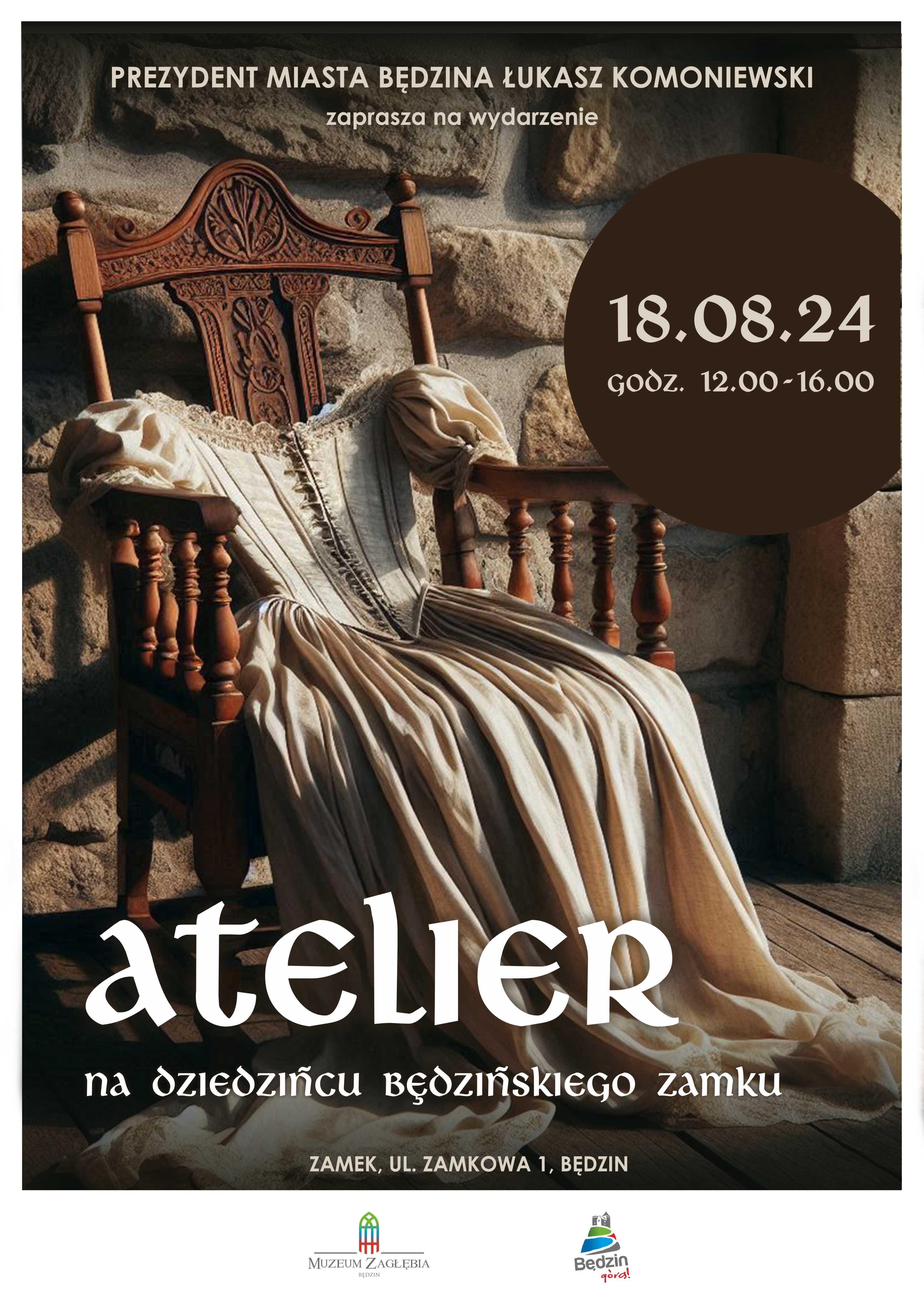 W najbliższą niedzielę 18 sierpnia zapraszamy do odwiedzenia atelier na dziedzińcu będzińskiego zamku. W godzinach 12.00-16.00 każdy z odwiedzających nas gości będzie miał niecodzienną okazję wcielić się w postaci z minionych epok. Możliwość założenia kostiumu i wykonania pamiątkowych zdjęć na dziedzińcu zamku daje ogromne możliwości i efekty fotograficzne.