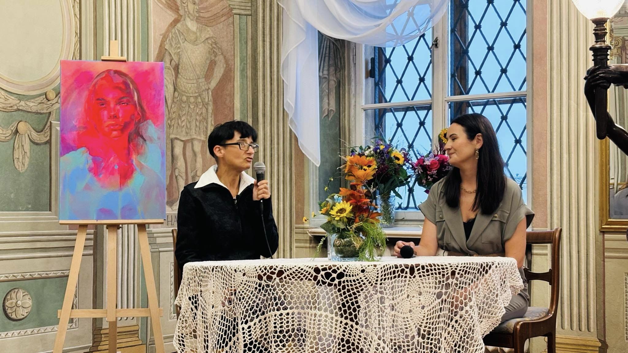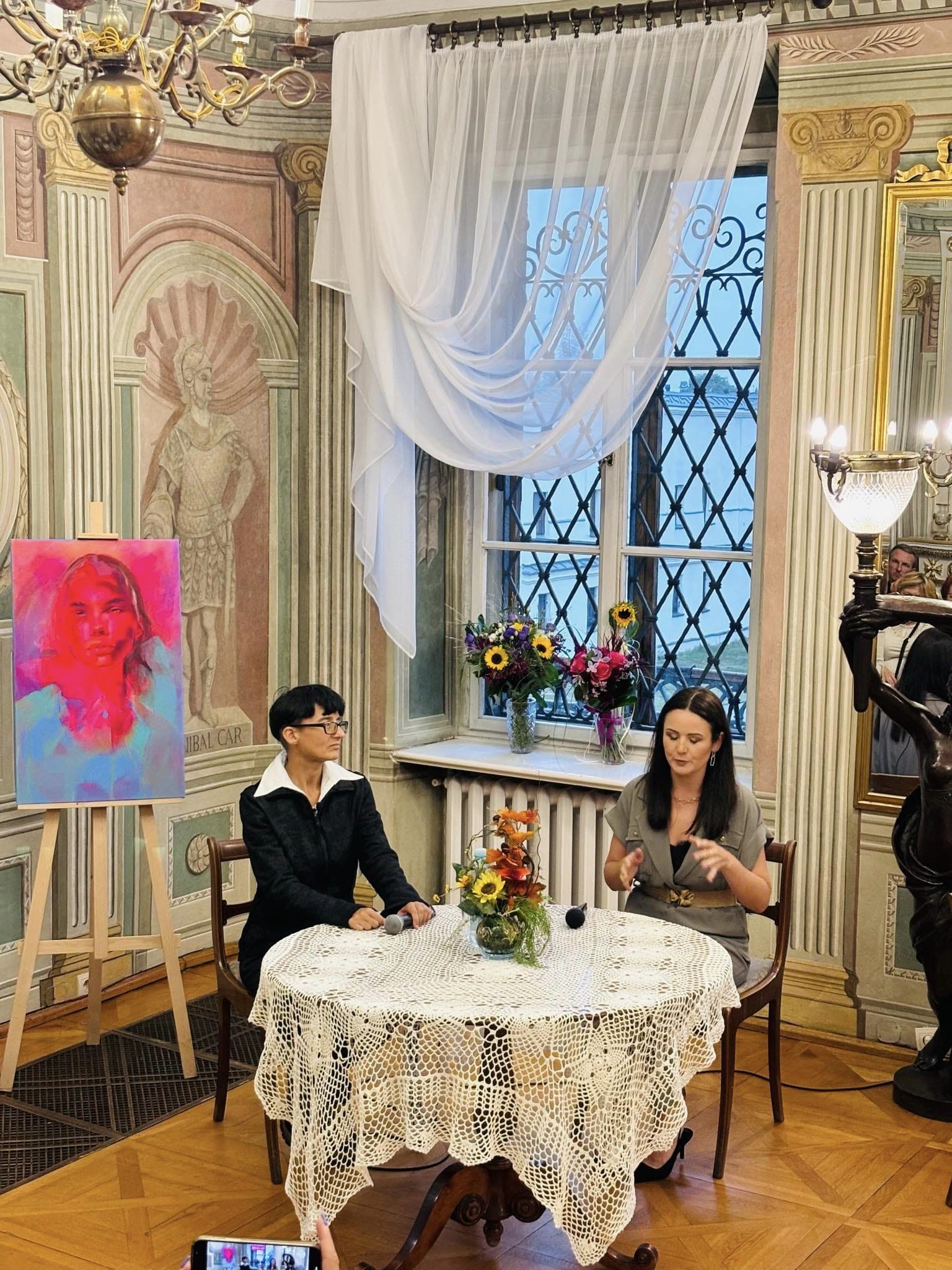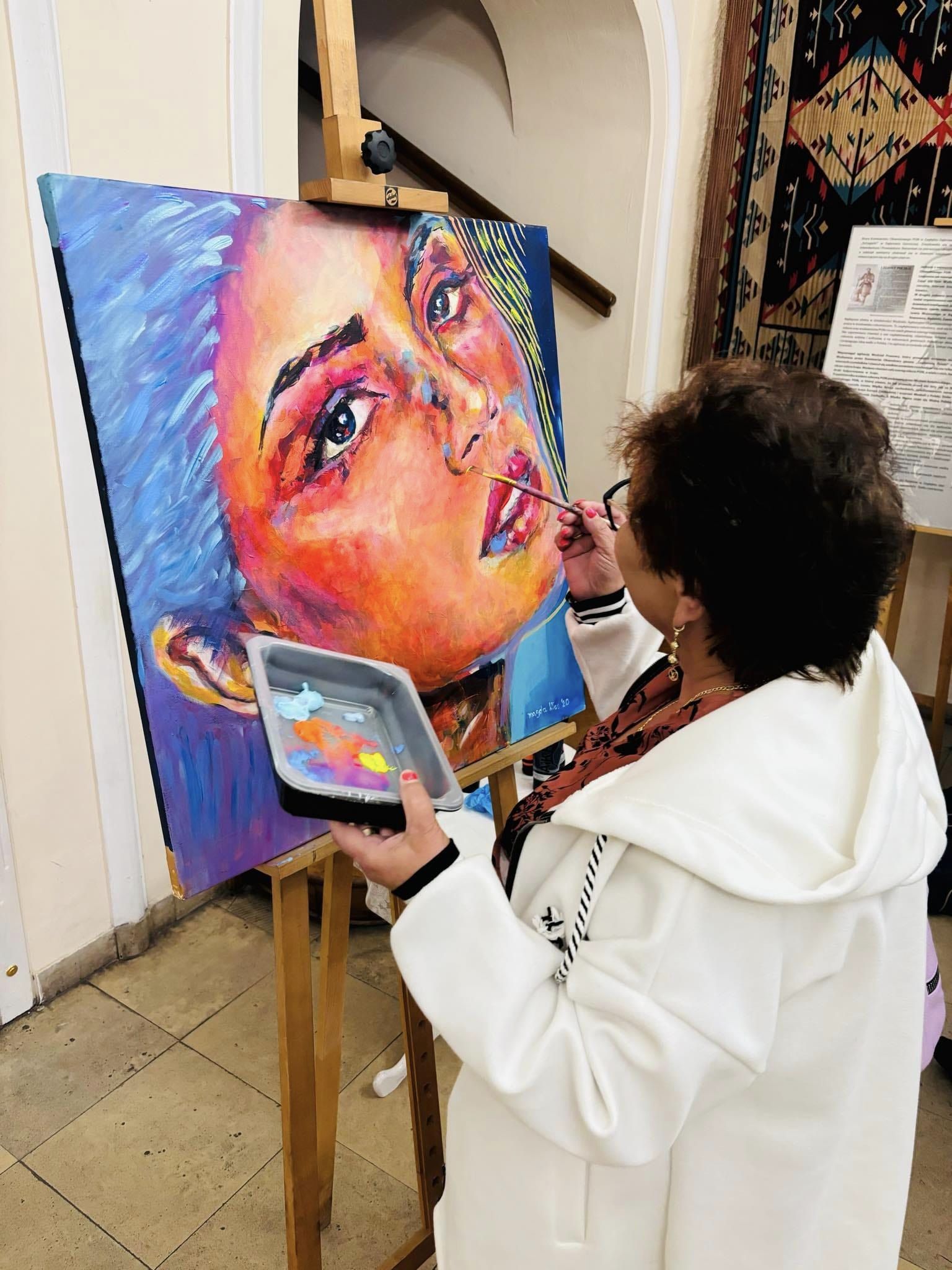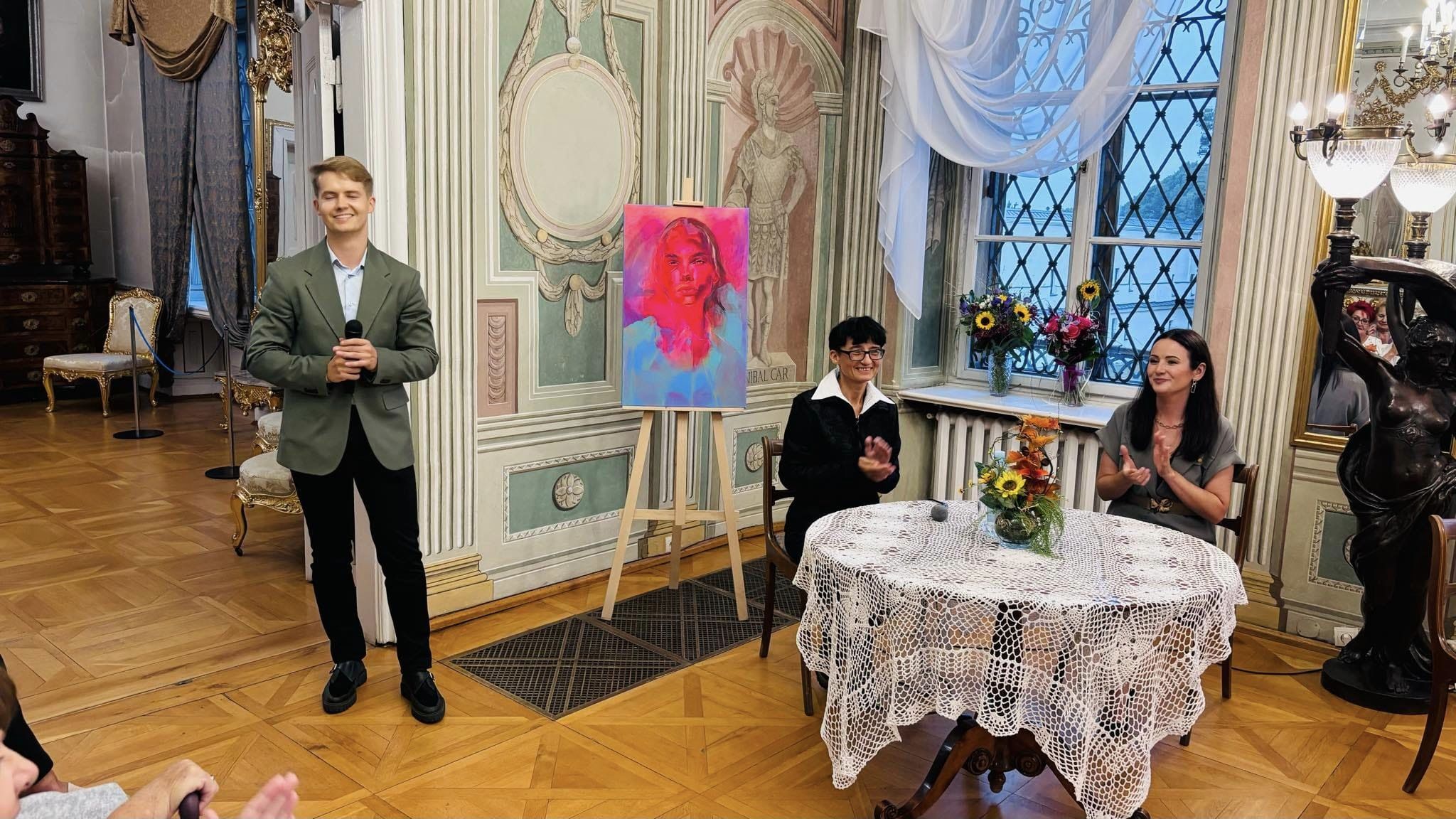 Dziś odbył się wernisaż wystawy prac Magdaleny Kłos „Jaj portret”. Przybyli do Pałacu Mieroszewskich goście mieli możliwość poznać twórczość Artystki, źródła inspiracji oraz drogę jaką przebyła by zajmować się sztuką.
