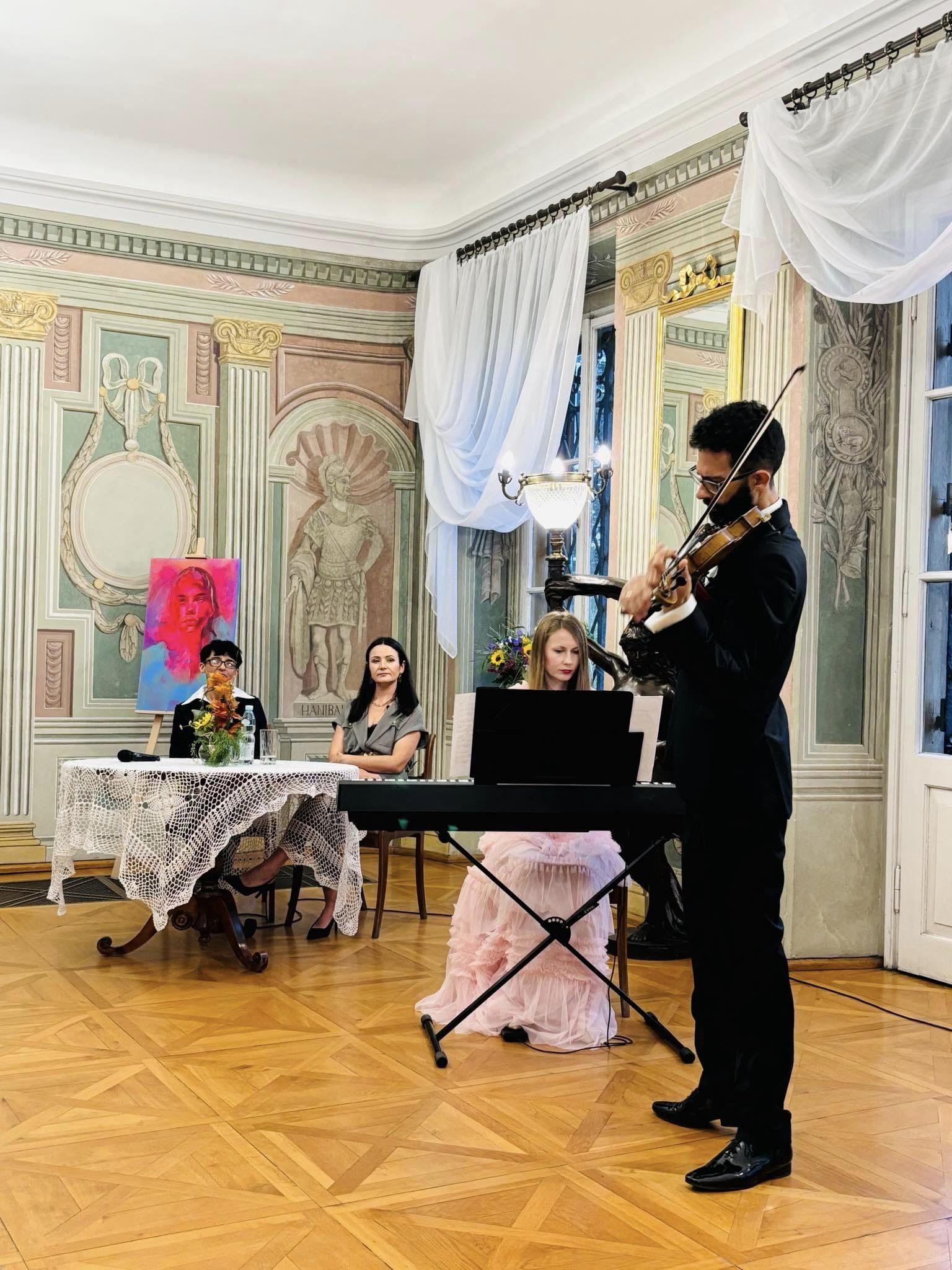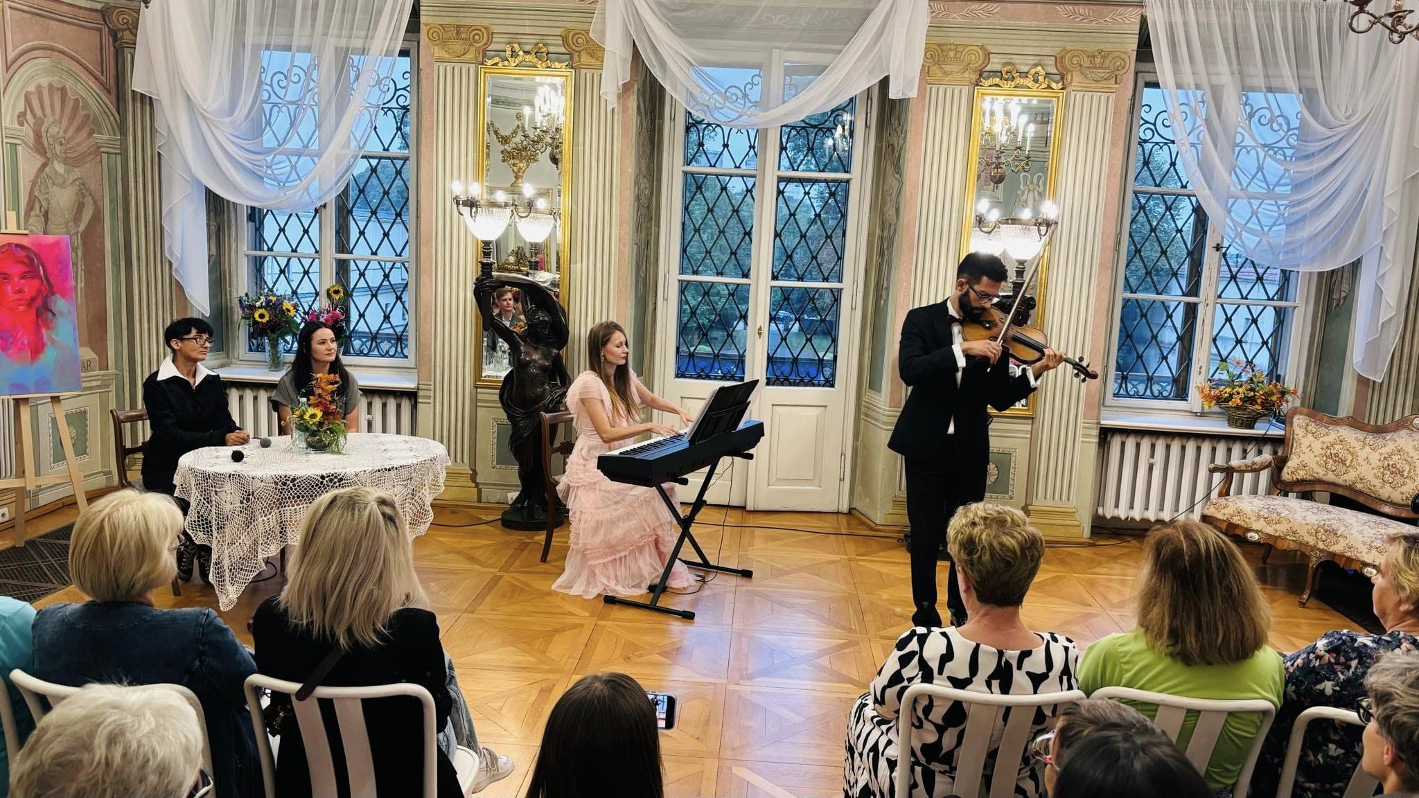 Wydarzenie uświetnił koncert w wykonaniu polsko – hiszpańskiego duetu Claro de Luna. Humor oraz kunszt muzyków są dobrze znane bywalcom Muzeum Zagłębia. Uczestnicy wernisażu mieli możliwość nie tylko zwiedzać wystawę w towarzystwie Autorki, ale także zobaczyć jak powstają jej dzieła.