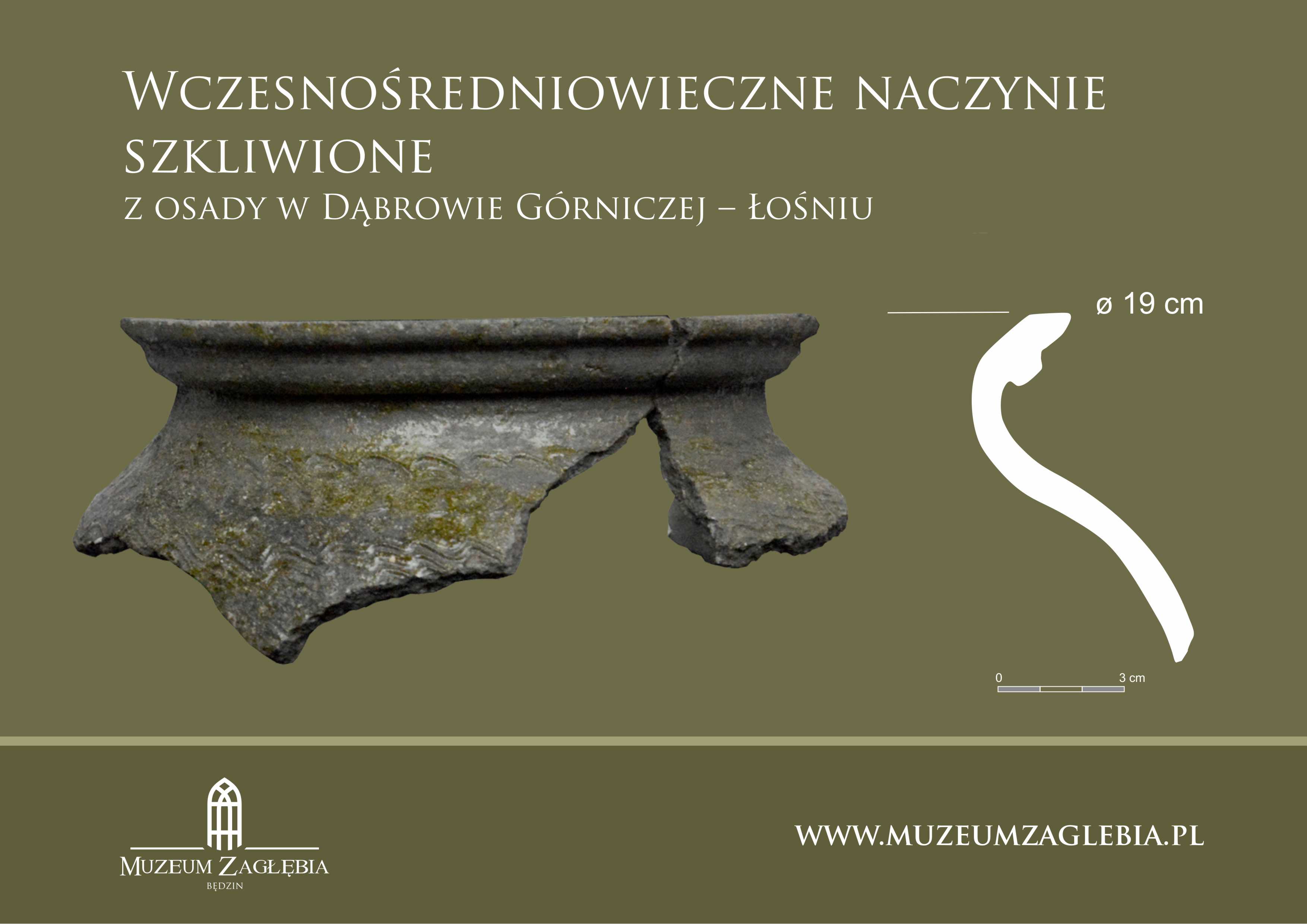 Prezentowane naczynie pochodzi z badań na stanowisku archeologicznym, zlokalizowanym w Łośniu, dzielnicy Dąbrowy Górniczej. Zostało ono wylepione z gliny żelazistej, zawierającej średnią ilość składników nieplastycznych – piasku, dodanego do masy garncarskiej. Wypał przebiegał w niekontrolowanej atmosferze utleniającej, czego efektem jest brunatny kolor czerepu. Naczynie wykonano w technice obtaczania silnie formułującego. Technika ta jest rozumiana tu jako szereg czynności, którym towarzyszył ruch wirowy koła, na tyle szybki, iż powodował zmiany uporządkowań teksturalnych w ściankach naczyń. Był zatem wykorzystywany do wykonywania profilowania oraz budowy ścianek. Należy jednak zaznaczyć, że wyroby poddawane silnemu obtaczaniu były uprzednio wykonywane z wałków łączonych techniką ugniatania, a dopiero potem poddawane obtaczaniu na kole jednotarczowym.