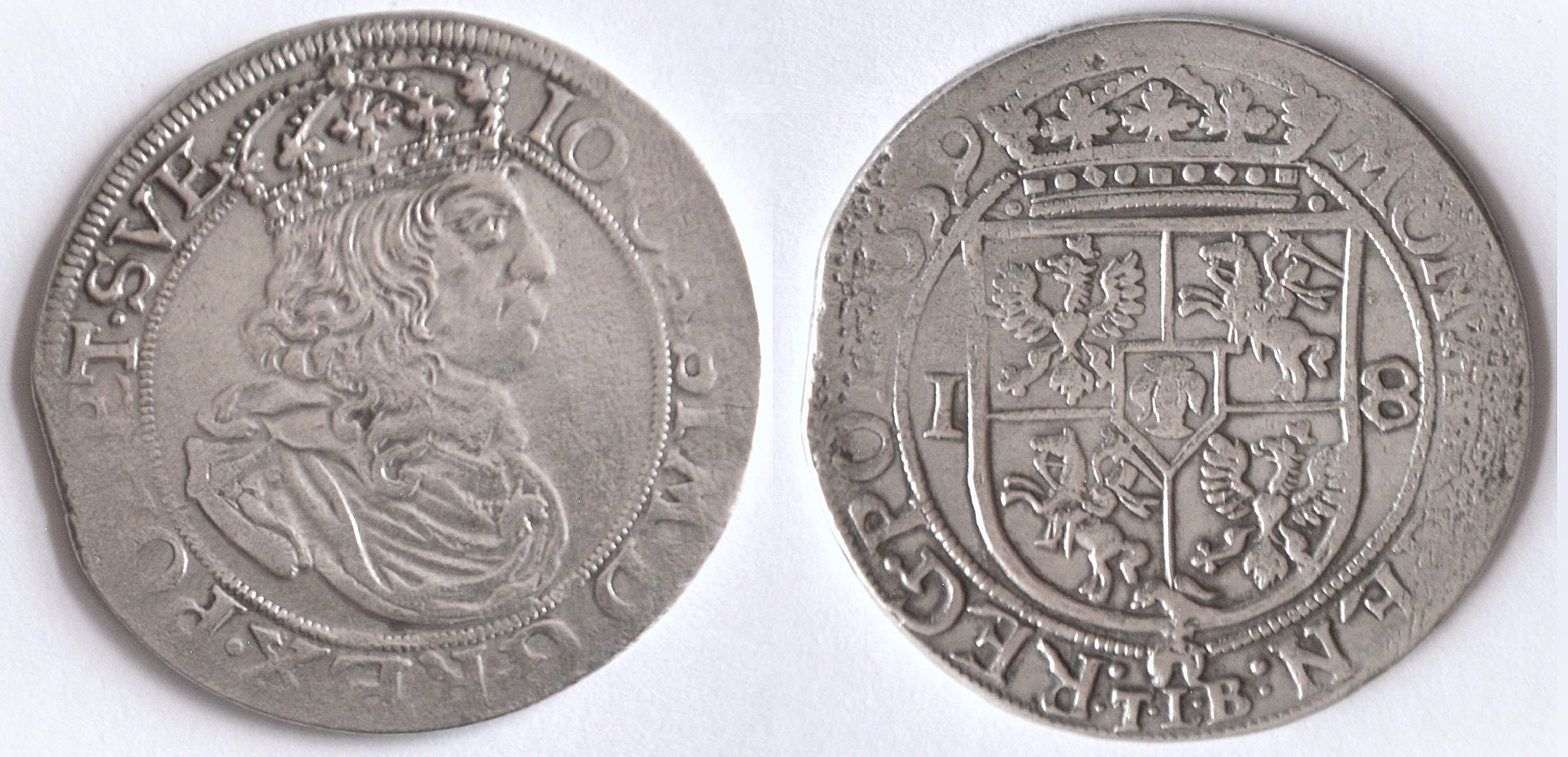 Ort Jana II Kazimierza Wazy, srebro, mennica krakowska (?), 1659. Zbiory Muzeum Zagłębia w Będzinie.